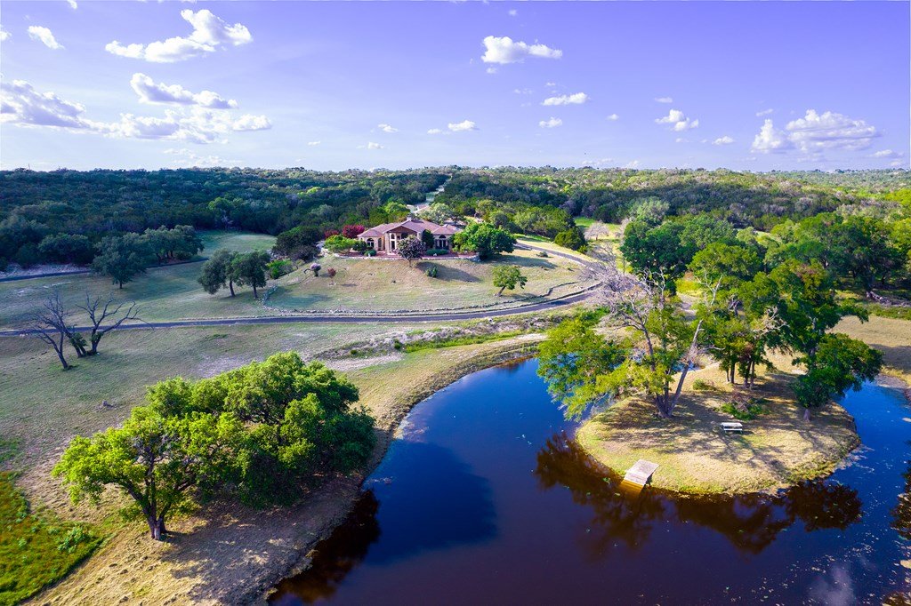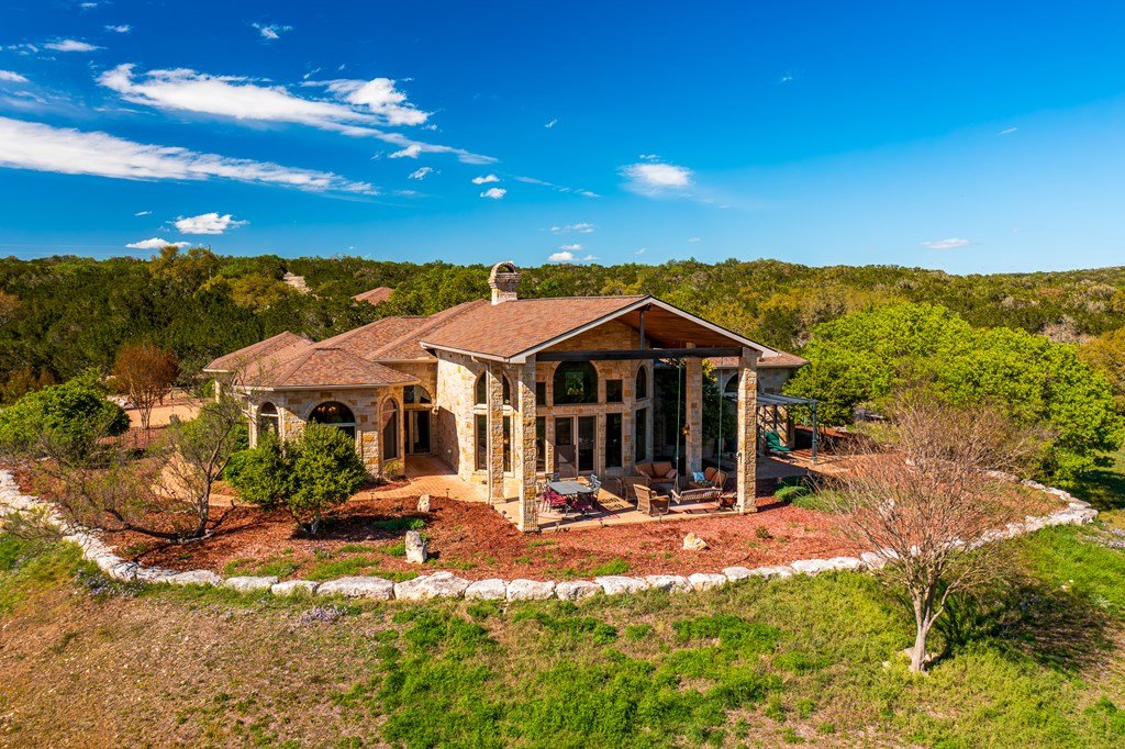 AG Exempt! Rambling Creek Ranch is a picturesque 203.21 acre property nestled in the captivating Hill Country landscape, just 20 minutes northeast of Downtown Kerrville. Abundant wildlife, stocked pond, and a stunning native stone home with cedar ceilings, gas fireplace, and floor-ceiling windows. Double master suites, two guest suites, and additional features like an office, gourmet kitchen, utility room, and garages. Partly wooded with oak and elm trees, high-fenced on 2 sides, and offers breathtaking views and building opportunities. The ranch's prime location and unparalleled features makes it an ideal place to gather with family and friends for endless outdoor adventures with excellent hunting away from the city. Rambling Creek Ranch is a rare opportunity to own a piece of the Texas Hill Country's natural beauty.