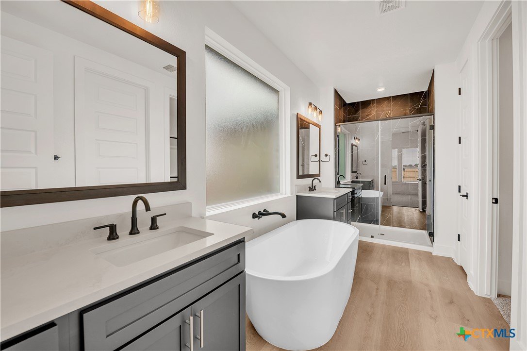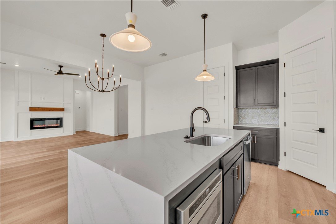 **Don't miss out on rates as low as 3.99%* plus ALL closing costs paid when using Spark Mortgage** Step into this charming 4-bedroom, 2-bathroom home crafted by Flintrock Builders, offering 1,944 square feet of thoughtfully designed living space. Nestled on a spacious lot in the gated community of Bella Charca, this home provides ample room for both relaxation and entertainment. Inside, the luxury vinyl plank flooring flows seamlessly through the main living areas, combining style with durability. The gourmet kitchen is a true showpiece, featuring gorgeous quartz countertops with a waterfall edge, adding a modern touch of elegance. A stainless-steel refrigerator is included, ensuring a move-in-ready experience. This home comes with thoughtful upgrades, including faux wood blinds on all operable windows, offering privacy and light control. The three-car garage provides ample parking and storage space, perfect for accommodating multiple vehicles or additional storage needs. With its premium finishes and modern upgrades, this Flintrock Builders home is a perfect blend of style, comfort, and functionality—ready to welcome you home!