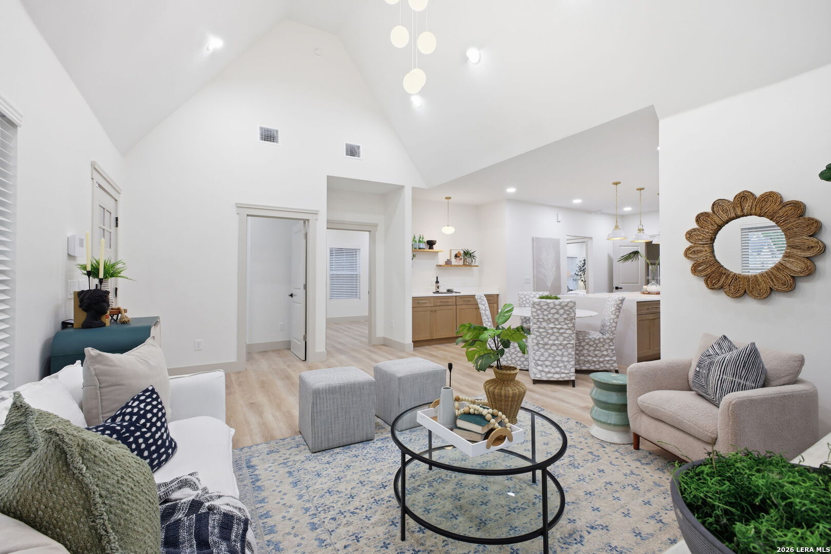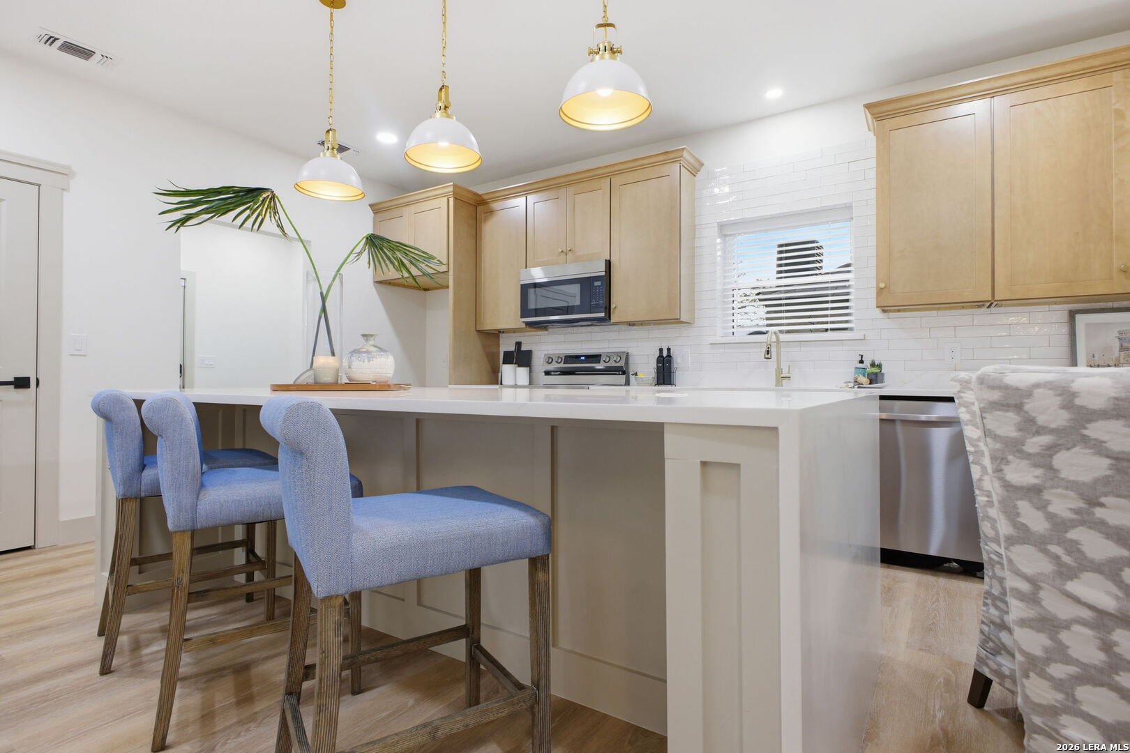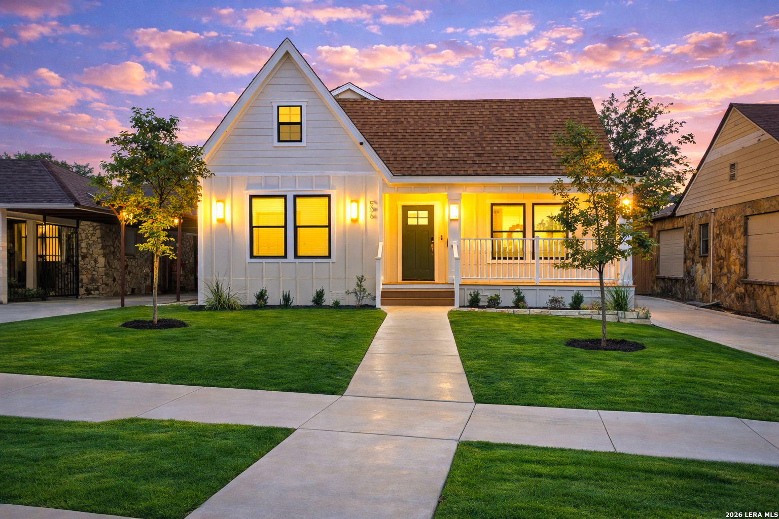 Step into the charm of this beautifully restored 1940s cottage-style home, thoughtfully renovated from top to bottom and classified as new construction by the City of San Antonio while preserving its original character. Located in the rapidly improving Highland Park area and surrounded by revitalized homes, this property blends timeless appeal with modern updates. A huge covered front porch, fresh landscaping with flower beds and sod, and a brand-new driveway and sidewalk create inviting curb appeal. Inside, the open floor plan is filled with natural light from tons of windows, complemented by white oak vinyl flooring and a neutral color palette throughout. The kitchen features smooth countertops, recessed lighting, custom cabinetry, and a central island perfect for gathering. The primary bedroom offers a ceiling fan, walk-in closet, and a full bath with a barn door, shower, and double vanity. Additional highlights include side access to a detached garage and a backyard with a privacy fence for added seclusion. Just a few blocks from Fair Avenue, nearby home improvement stores, and with easy access to I-37, this home presents a rare opportunity to own what feels like new construction while enjoying the preserved charm of a classic cottage in one of San Antonio's most promising neighborhoods.