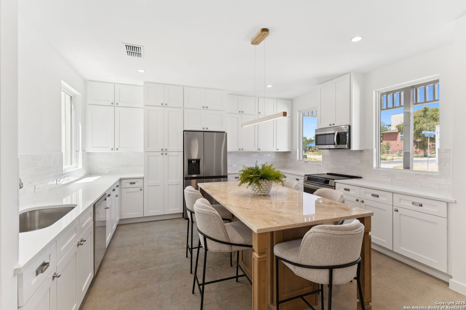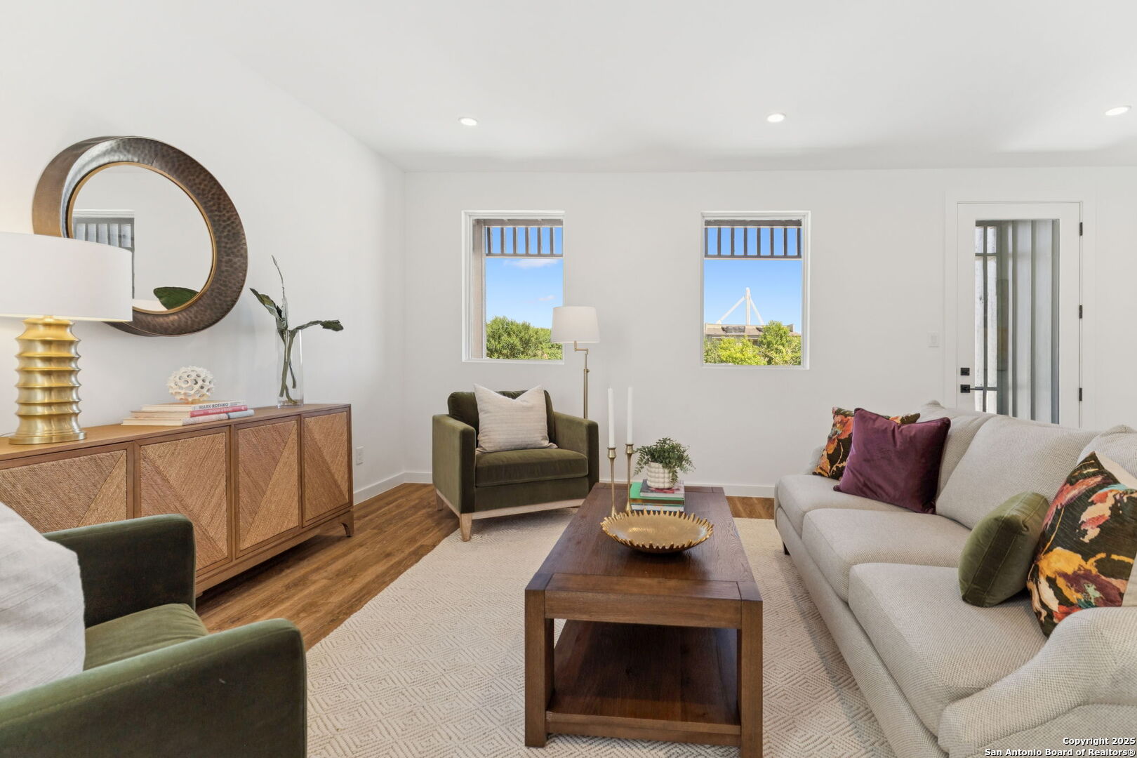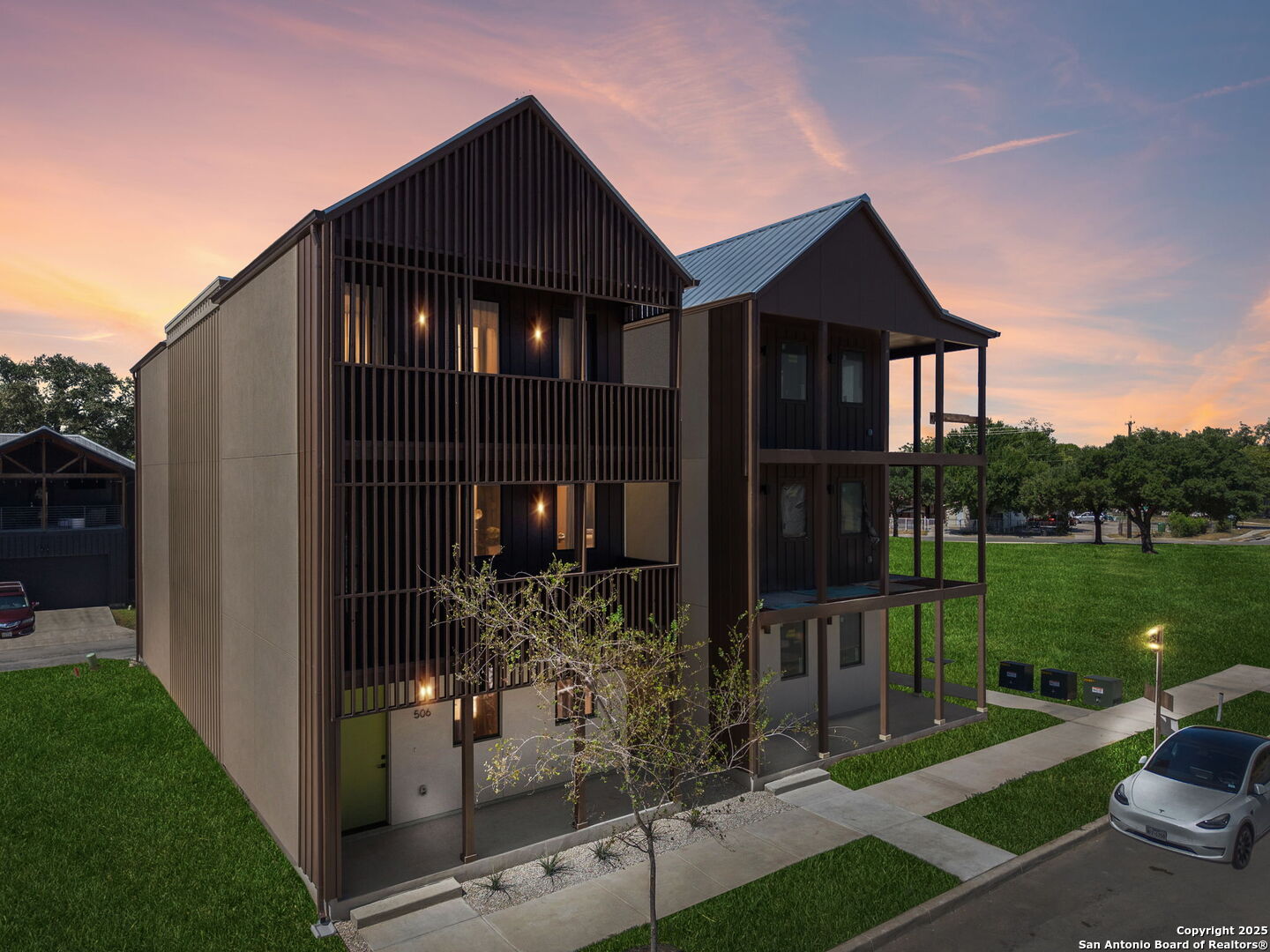 Experience modern living in the heart of San Antonio's vibrant and historic Southtown / Lavaca district. This beautifully crafted 3-story garden homes by award-winning CVF Homes place you at the center of San Antonio's best dining, entertainment, and cultural attractions. Ideally situated just minutes from downtown and the Pearl, you're also in close proximity to the proposed Spurs arena/Project Marvel, Hemisfair Park, the Alamodome, the Southtown Strip, and the upcoming mixed-use development by Oxbow (Pearl). Labor Street Park & Dog Park is also just across the street. 506 McMonigal is complemented by a cozy and private low-maintenance courtyard, offering a peaceful retreat for casual outdoor dining and entertaining. Inside, you'll find a fully equipped kitchen with sleek finishes, stainless steel appliances, and ample storage. The spacious primary suites are designed for ultimate comfort, featuring walk-in closets, en-suite bathrooms, and a private balcony with stunning views of the Tower of the Americas-perfect for relaxing and enjoying your morning coffee. For added convenience and accessibility, an elevator option is available, providing effortless movement between floors. This garden home will also be Solar Ready and Certified Zero Energy Ready, Energy Star, and Indoor AirPlus by the U.S. Department of Energy and Build San Antonio Green. Built with durable energy-efficient construction, water-efficient features, indoor air quality features, and smart home technology, these homes are designed to reduce utility costs while promoting comfort, efficiency, and sustainability. An attached 2-car garage provides plenty of storage space. A 13.5 KWh Tesla Powerwall energy backup system is optional, and all appliances-including washer and dryer by LG-will be included.