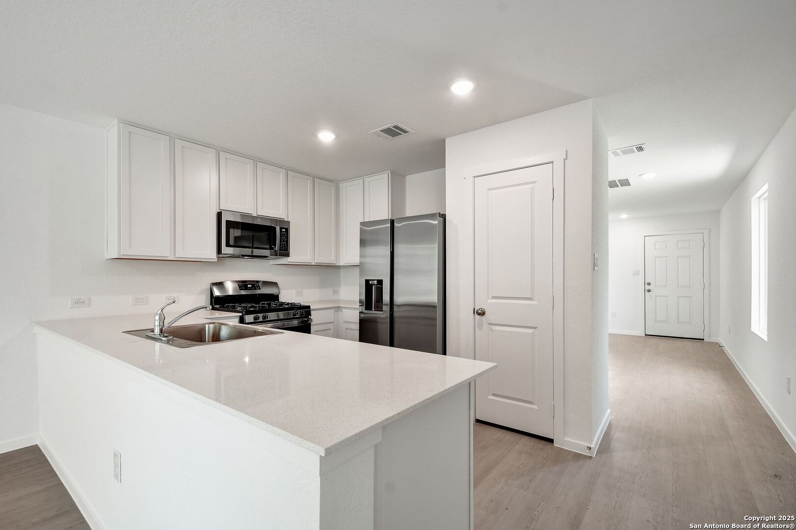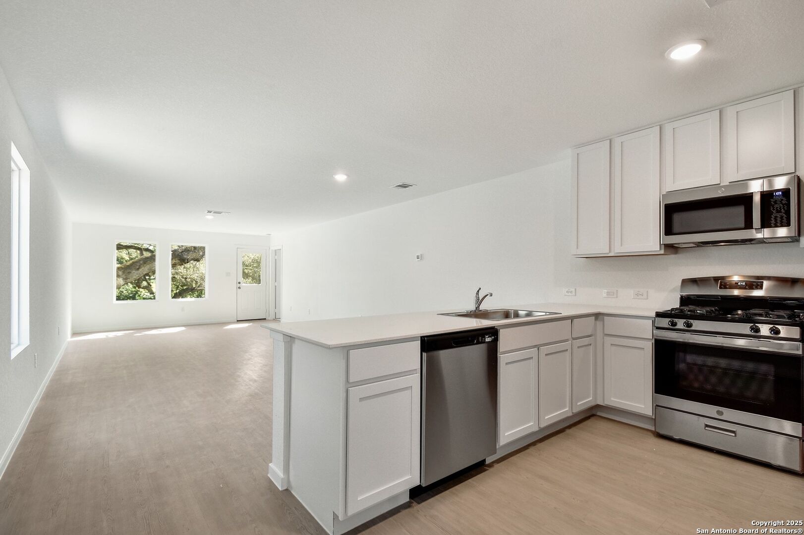Brand-new home in a peaceful west San Antonio community. This modern property offers an open, light-filled floor plan paired with a private backyard. Bright open-concept living and dining space with large windows and natural light. Modern kitchen with stainless steel appliances, gas range, and ample cabinet storage. Spacious primary suite with walk-in closet and private bath. Secondary bedrooms with fresh carpet and generous closet space. Bathrooms featuring clean finishes and modern fixtures. Dedicated laundry room with full-size washer and dryer connections. Attached two-car garage plus extended driveway parking. Fenced backyard with newly built deck-style stairs for easy outdoor access. Close to Alamo Ranch Sopping, SeaWorld San Antonio and Lackland AFB, with easy access to Loop 1604, Highway 90, and Highway 151.