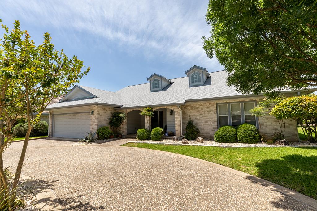 Open and light single-level home in desirable Riverhill. Enter through a lovely front porch into an open concept home. Home features two living areas -- living room and formal dining area with windows that look out onto a covered patio plus a family room (complete with fireplace) and breakfast area. The island kitchen has beautiful counters, a newer oven and microwave, and walk-in pantry. Split floorpan -- Master bedroom with en-suite has a Jacuzzi tub, separate walk-in shower, two vanities, and walk-in closet with built-ins. Two guest bedroom -- plus a den that can be used as a 4th bedroom. Centrally located laundry room with built-in desk/sewing center. Hardwood floors in kitchen, living/dining & den. Beautifully landscaped yard has sprinkler system and circular drive. Two-car garage.