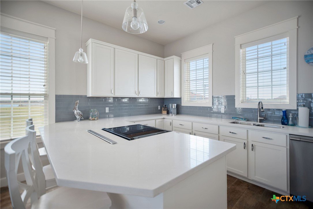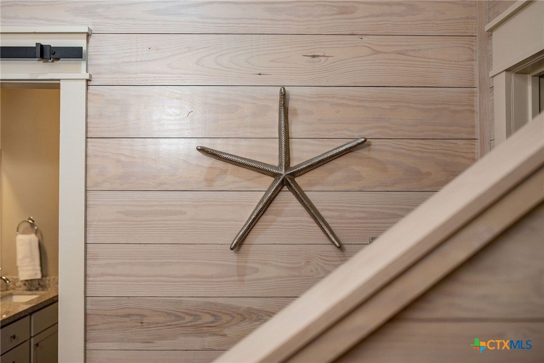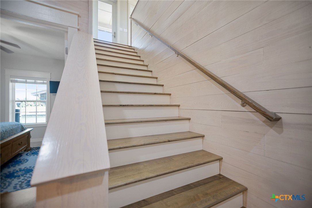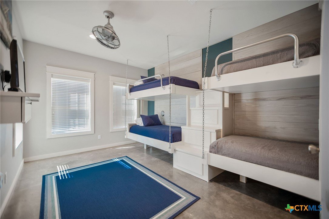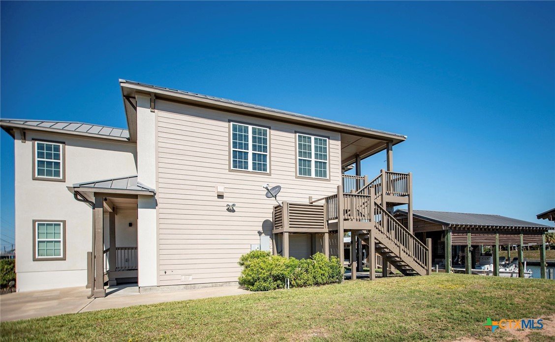 Masterfully designed 4 Bedroom, 3 Bath waterfront home in Caracol with two Boat Slings! (2017) Room for all, so the whole crew, is welcome! Large entry foyer is inviting and adjoins attached garage, convenient for loading and unloading. This summer fun home has four bedrooms and three full baths. Two bedroom guest quarters downstairs is complete w/Dbl. bunkbed room and a stately king bedroom w/built-in bunk bed, even a view of boat house! These two rooms and a full bath w/dbl vanity and walk in shower set your guests up for a comfortable stay. They even have their own private exit to back patio and boat house. Great for navigating those early am fishing trips! Wide, main floor staircase opens up to a bright, white living room with ship-lap walls and "cook's kitchen" complete w/massive bar, tons of cabinet space, pantry and SS, built-in appliances! Utility/Laundry space upstairs, off kitchen, is convenient extra storage space. The airy living room has ship-lap accent walls, stacked shelves in staircase. These accents in the Living - kitchen spaces create an East Coast/Cape Cod fishing/beaching vibe with nautical kitchen - storage accents throughout house. East facing covered deck, off living room, overlooks your own, private two-sling boat house! Locker for fishing gear and cleaning table ready to roll, in boathouse. There is a second staircase which runs from upper back deck down to patio area, in back yard. The patio area works as a bridge between boat house and garage. Roll-up doors on front and back of garage smooths the way for summer breezes! East facing back patio area has room for BBQ Pits, dining area and a staircase to gain access to the downstairs king bedroom, our third staircase! Custom 4/3 home on water with Caracol amenities, including in-ground pool, patio area and volleyball court! All you need in POC! Call for a showing today and let agent if you are looking for turn key purchase.