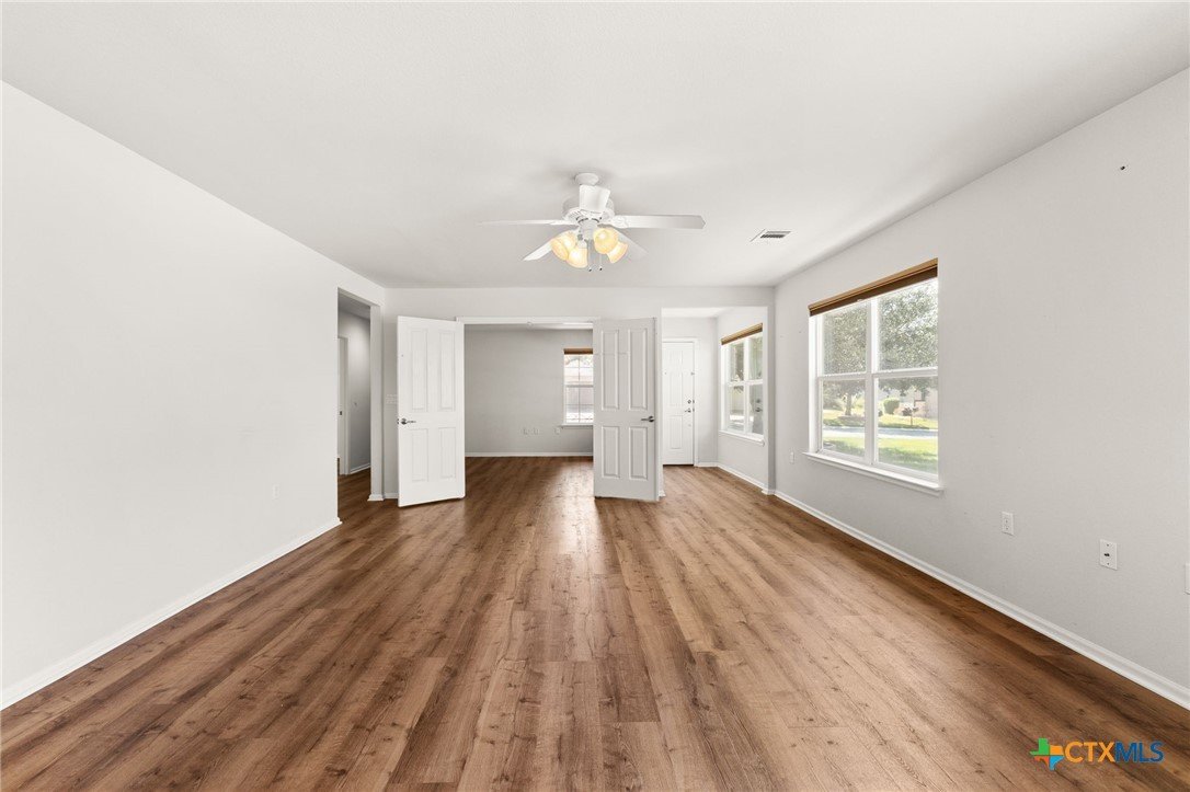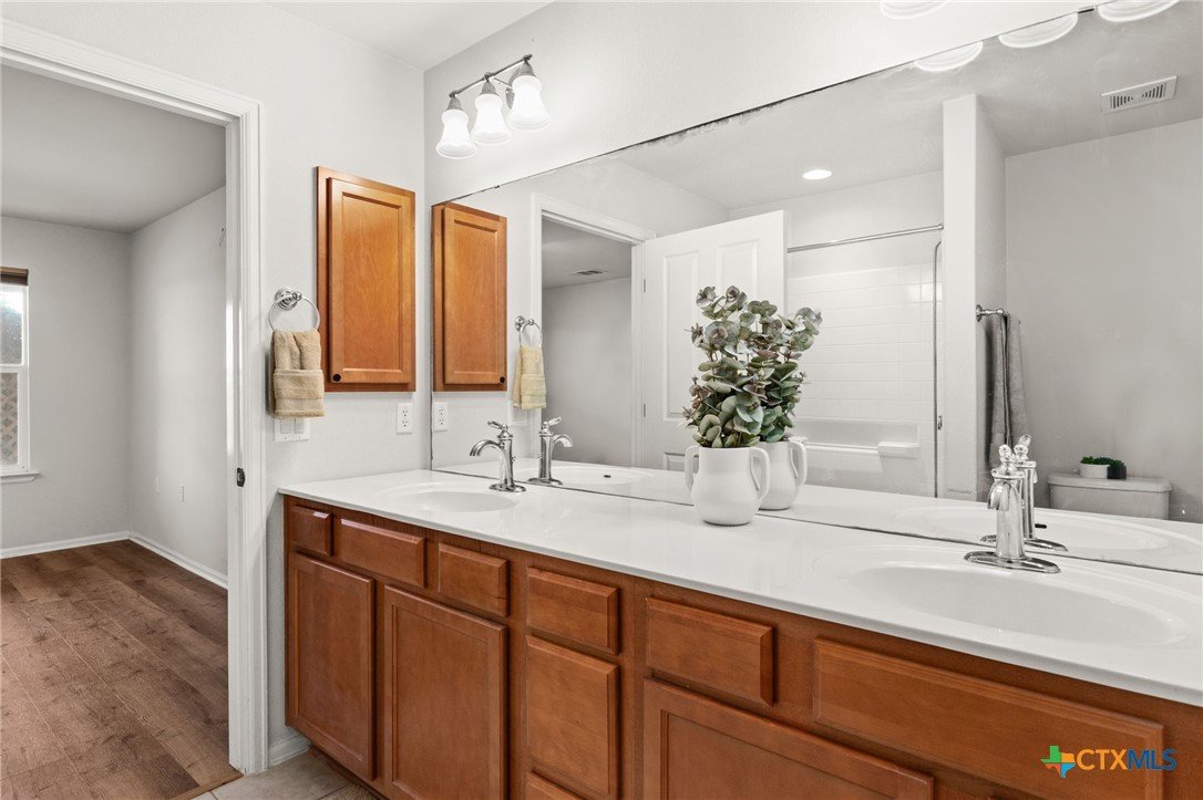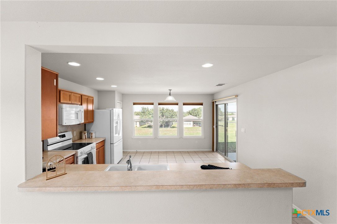Welcome to this beautifully updated 2-bedroom, 2-bathroom home, perfectly situated to offer stunning elevated views in Georgetown’s sought-after 55+ Sun City community. With 1,467 square feet of open-concept living, this home blends modern style, comfort, and convenience. Step inside to natural light, gorgeous laminate wood floors, and a layout perfect for relaxing or entertaining. The chef-inspired kitchen offers ample storage, expansive countertops, and seamless flow into the dining and living areas—ideal for gatherings or quiet evenings. The spacious primary suite is a private retreat with dual vanities, a walk-in shower, and an oversized walk-in closet. A second bedroom welcomes guests, while the office/flex room with built-in shelves can serve as a reading nook, craft room, or personal sanctuary. Outside, the backyard provides a peaceful space to grill, dine al fresco, or enjoy the Texas sunshine, with serene greenbelt views from your elevated position. The epoxy-finished garage with built-in shelves adds functionality and storage, while the home’s location offers quick access to shopping, dining, and major highways. As part of Sun City, enjoy world-class amenities like championship golf, fitness centers, tennis, pickleball, and a vibrant social calendar with over 145 clubs. This is more than a home—it’s a lifestyle. Don’t miss this rare opportunity to own a low-maintenance retreat in one of the area’s most desirable active-adult communities.