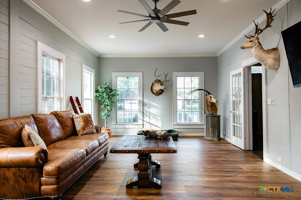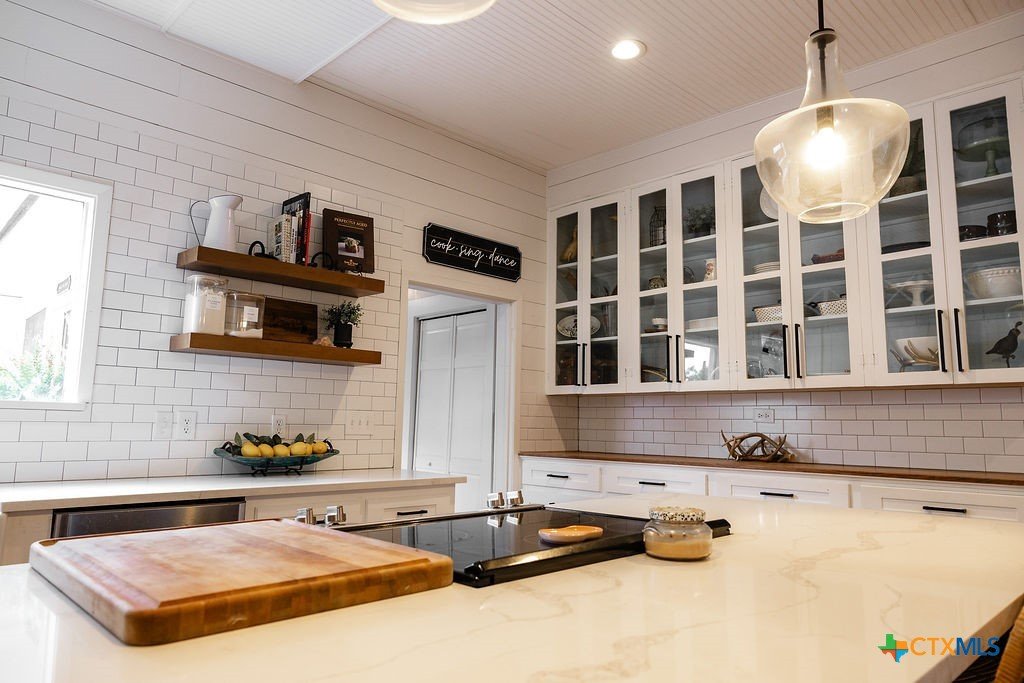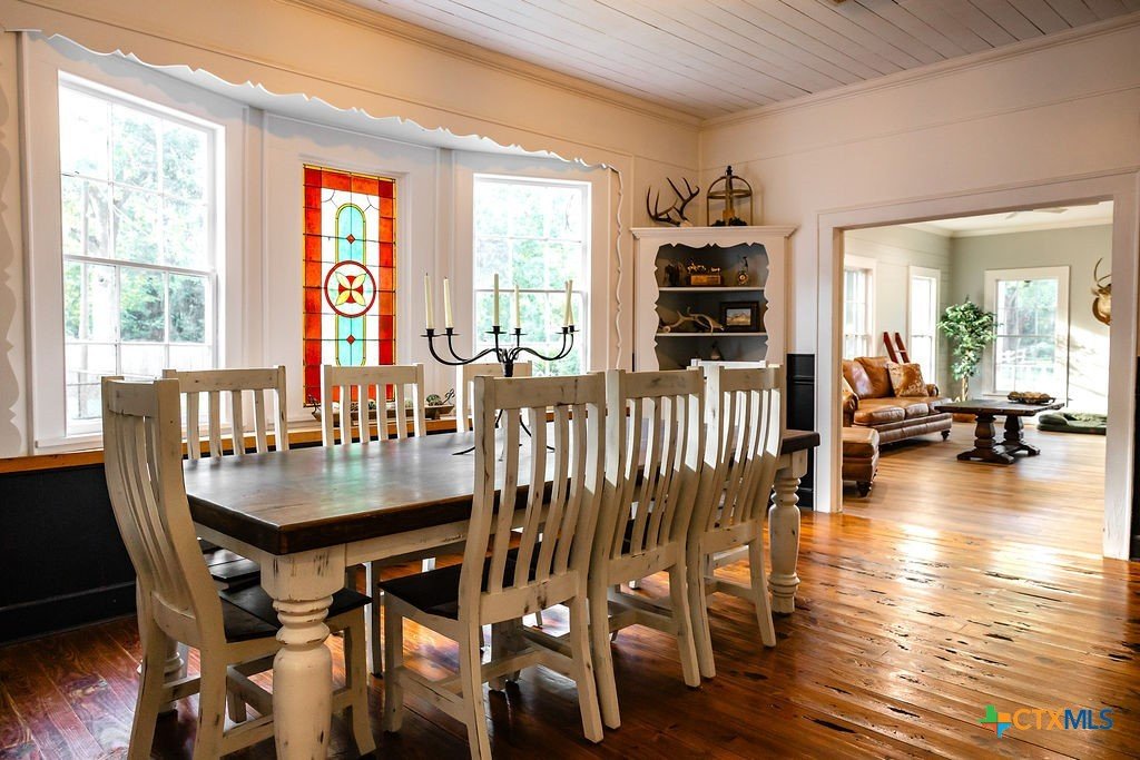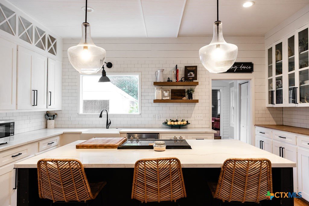 This is the kind of home you see in a magazine. With timeless Southern charm and classic curb appeal, this beauty welcomes you with a wide front porch perfect for morning coffee and evening conversations. Featuring symmetrical dormer windows, and an American flag proudly waving, it radiates warmth and character before you even step inside. The kitchen strikes the perfect balance between farmhouse charm and modern style. With crisp white cabinetry, open shelving, subway tile backsplash, and striking black accents, this space is designed for both everyday living and entertaining. Stainless steel appliances, warm hardwood floors, and thoughtful finishes complete the look, while original wood walls add character and continuity throughout. 3,200+ square feet of living space, the seamless flow between rooms and bright, airy feel create a space that’s both cozy and elegant. A private backyard oasis awaits with a sparkling swimming pool, just what you need on those hot summer days! There's also a fully fenced dog run for your four-legged family members, and a detached garage with plenty of room for storage, a workshop, or even future guest quarters. Southern charm is calling you home!
