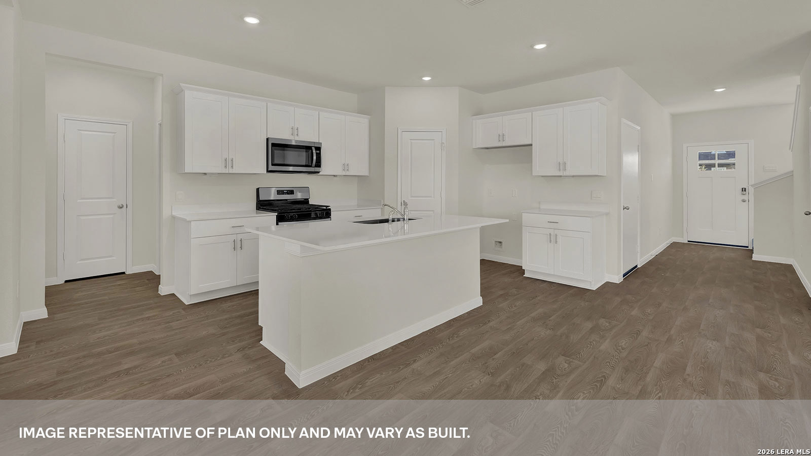 SUMMER ESTIMATED COMPLETION. EASY ACCESS TO I-35! OVERSIZED GARAGE. The Madison is our largest floorplan available at Paramount in Kyle, Texas. This beautiful two-story home features 5 bedrooms, 3 bathrooms, a gameroom, and 2 car garage across 2,492 square feet of modern living space. Our homes in Paramount feature our modern farmhouse exterior and the Madison plan is available in 2 exterior options. Entering the home from the covered front porch, you'll cross the foyer to the open concept living space. The kitchen faces out to the dining room and family room, allowing for conversations to flow easily across the room as you make dinner and unwind from your day. Enjoy the 9' ceilings and natural light from the three rear windows. The kitchen features an island with undermount sink, quartz countertops, a pantry closet, 36" upper cabinets, and stainless-steel appliances. A secondary bedroom and full bathroom are located off the kitchen, perfect for your guests or any family member that need their own space. The oversized utility room is also located off the kitchen and includes a closet for extra storage. Ascend the stairs to the second floor and you'll enter the gameroom. This room can easily be set up as another living space or play area for the kids. The primary bedroom is located at the front of the home. This oversized private ensuite includes an extra sitting area as well as an attached bathroom. Enjoy the walk-in shower, marble countertops with dual vanity, separate toilet area with a door, and an enormous walk-in closet. Three additional bedrooms and a full bathroom complete the upstairs space. Each bedroom has a closet with wood shelving and both secondary bathrooms have a shower/tub combination. The Madison includes vinyl flooring throughout the common areas of the home and carpet in the bedrooms. All our new homes at Paramount feature extra storage space in the garage, a covered back patio, full sod, and an irrigation system in the front and back yard. This home comes with our America's Smart Home base package, which includes Video Front Door Bell, Front Door Deadbolt Lock, Home Hub, Thermostat, and a Smart Switch.