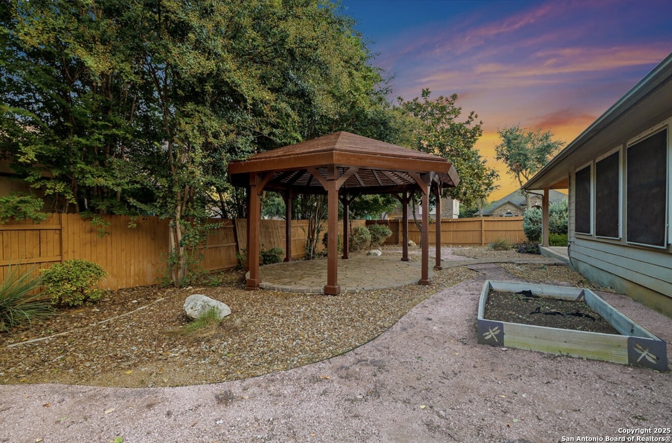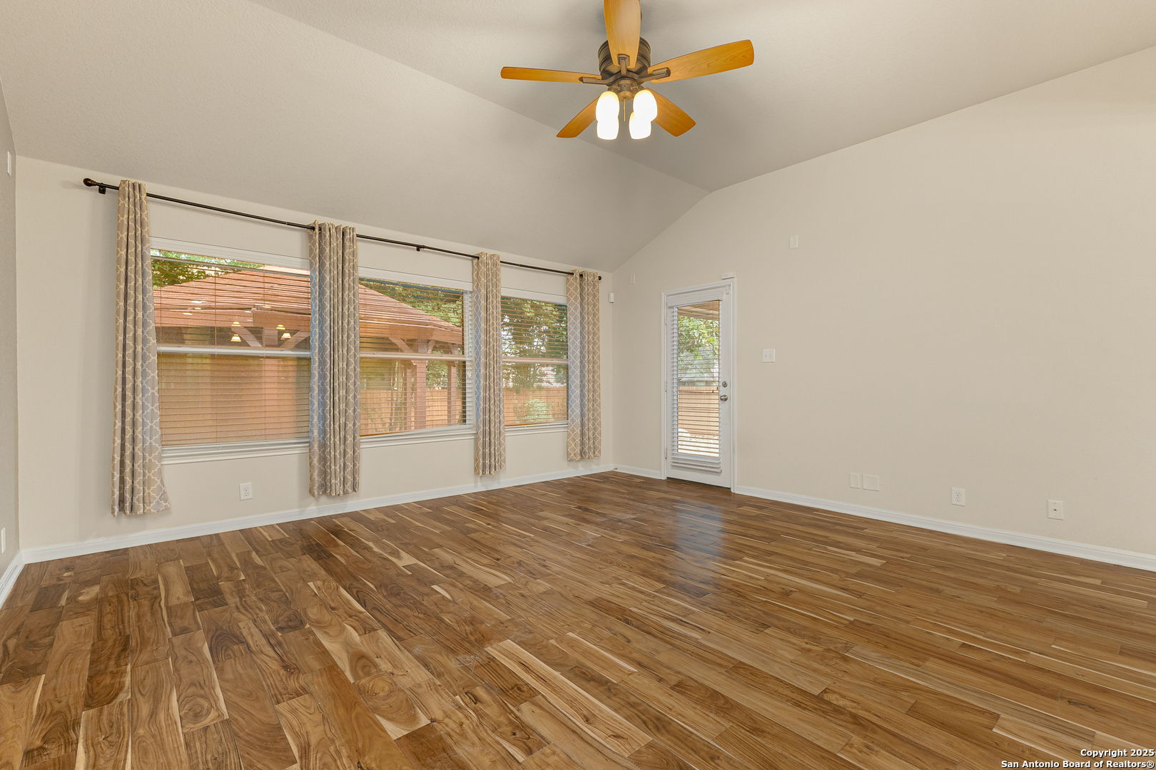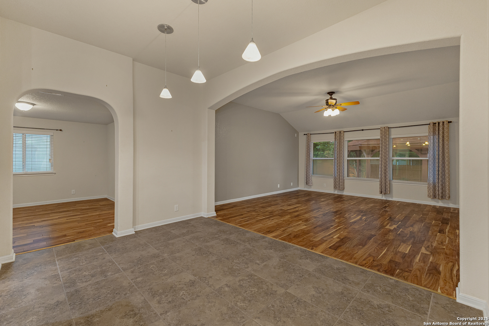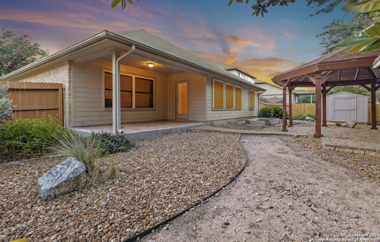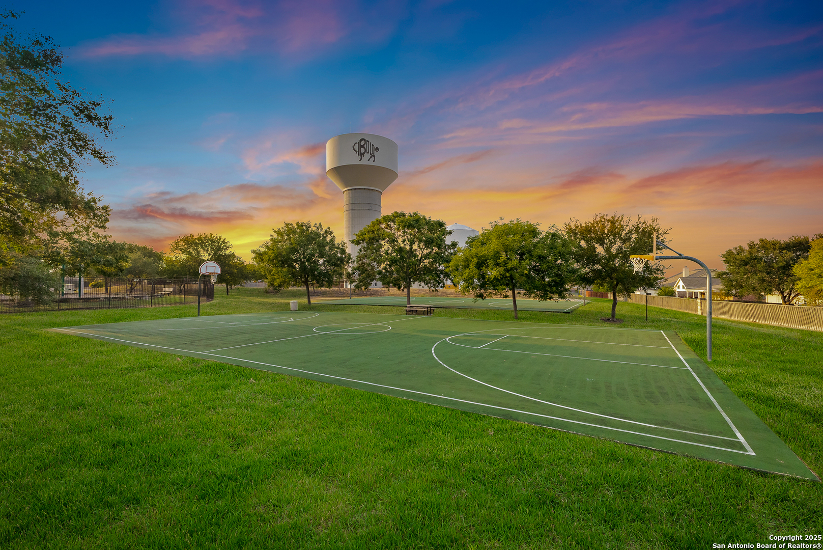 ** NEW ROOF coming soon - ready for new buyer to choose the color!! ** Welcome to this spacious and thoughtfully designed 3-bedroom, 2-bath home with a 3-car garage in the heart of Cibolo! Offering 2,229 sq. ft. of comfort, this 2008 build combines functionality with style-and includes the added benefit of paid-off solar panels for energy efficiency and savings. At the front of the home, a dedicated office makes working from home a breeze-perfect for client visits or simply enjoying the peaceful views of nature. Just off the entry, the formal dining space flows seamlessly into the oversized kitchen with abundant cabinetry, stainless steel appliances, and generous counter space. Designed for entertaining, the open concept offers clear sight lines from kitchen to dining to the expansive living room. The split-bedroom layout ensures privacy and comfort, with only the office and two secondary bedrooms featuring carpet. The rest of the home is finished in attractive laminate wood flooring for style and easy maintenance. Step outside to a xeriscaped backyard (with the option to add sod pathways, as shown in photos) featuring a stunning magnolia tree, covered patio, charming gazebo, and additional landscaping for year-round enjoyment. This corner-lot property sits at the curve of a quiet cul-de-sac, providing both privacy and curb appeal. Located in top-rated SCUCISD and just minutes from Randolph Air Force Base, the community also offers amenities including a pool, park, tennis courts, and walking trails. Schedule your showing today! With mature trees, low-maintenance landscaping, paid-off solar panels, and a flexible floorplan, this home is ideal for families, multi-generational living, or anyone who loves to entertain.