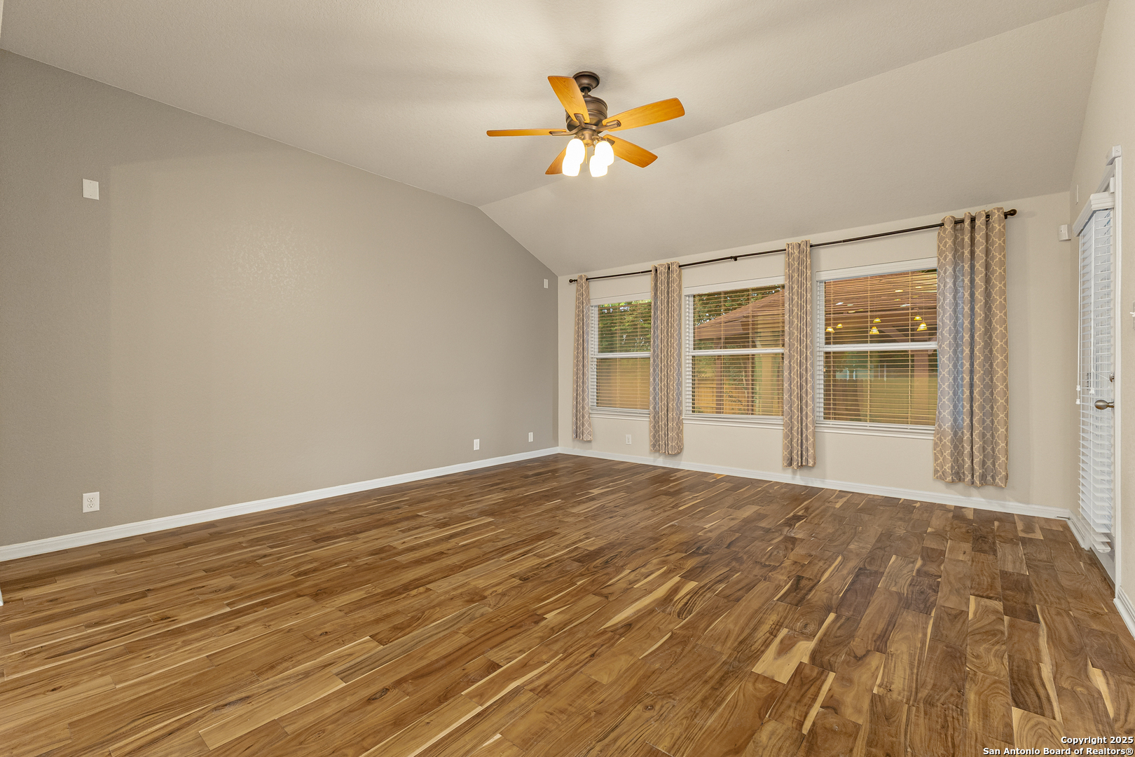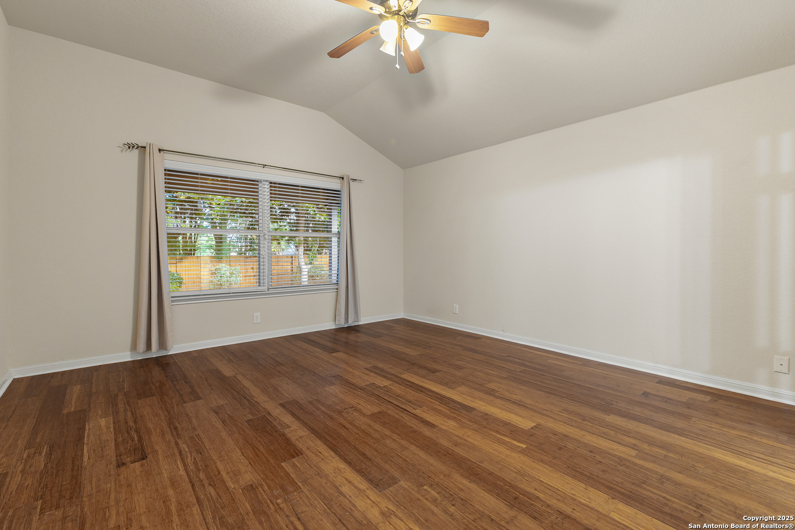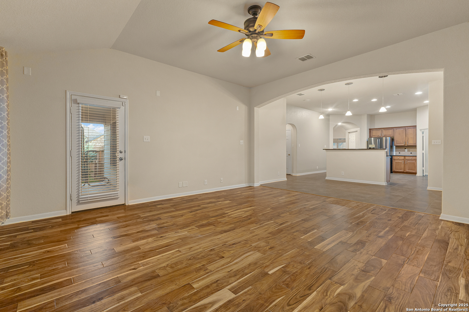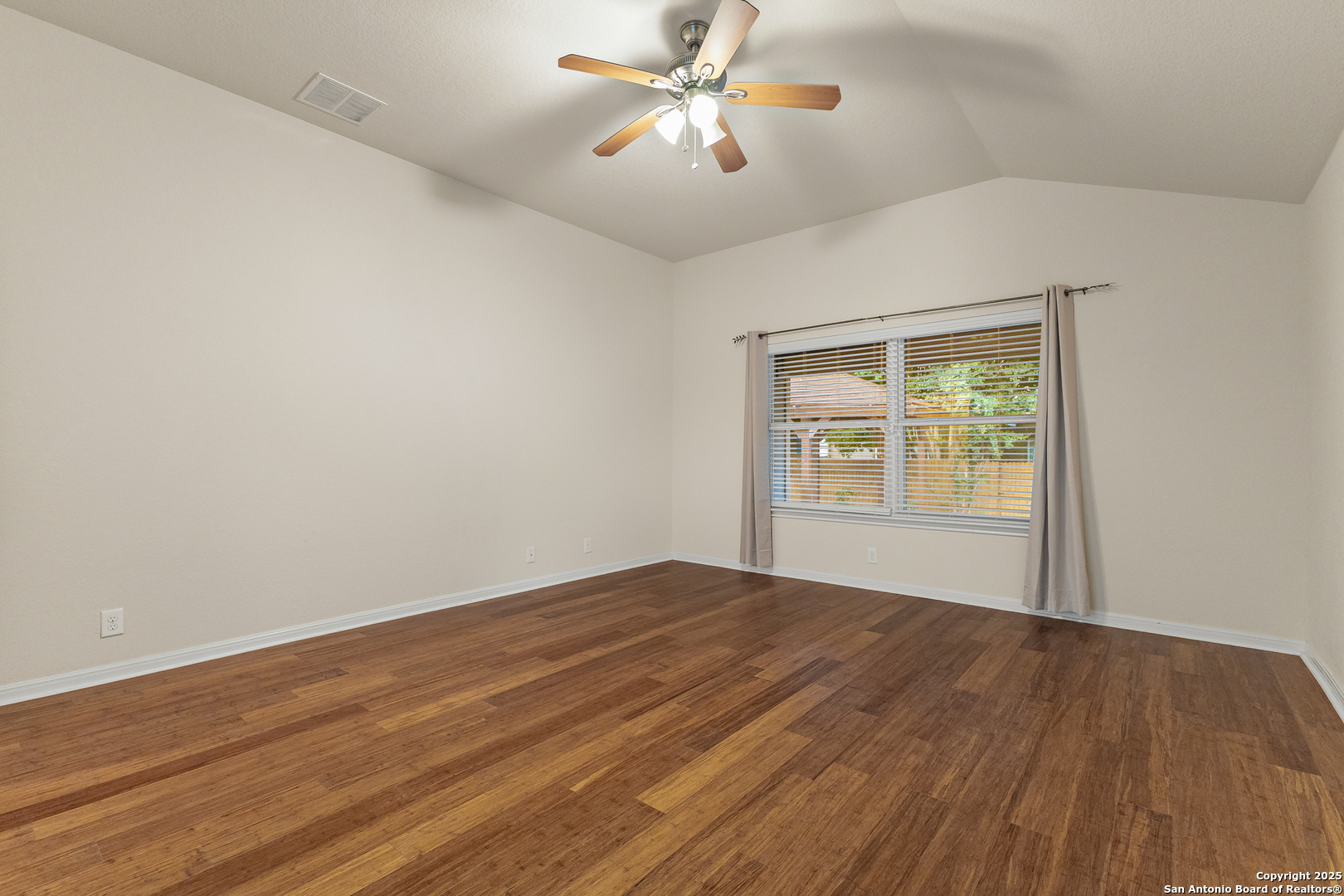 ** NEW ROOF coming soon - ready for new buyer to choose the color!! ** Welcome to this spacious and thoughtfully designed 3-bedroom, 2-bath home with a 3-car garage in the heart of Cibolo! Offering 2,229 sq. ft. of comfort, this 2008 build combines functionality with style-and includes the added benefit of paid-off solar panels for energy efficiency and savings. At the front of the home, a dedicated office makes working from home a breeze-perfect for client visits or simply enjoying the peaceful views of nature. Just off the entry, the formal dining space flows seamlessly into the oversized kitchen with abundant cabinetry, stainless steel appliances, and generous counter space. Designed for entertaining, the open concept offers clear sight lines from kitchen to dining to the expansive living room. The split-bedroom layout ensures privacy and comfort, with only the office and two secondary bedrooms featuring carpet. The rest of the home is finished in attractive laminate wood flooring for style and easy maintenance. Step outside to a xeriscaped backyard (with the option to add sod pathways, as shown in photos) featuring a stunning magnolia tree, covered patio, charming gazebo, and additional landscaping for year-round enjoyment. This corner-lot property sits at the curve of a quiet cul-de-sac, providing both privacy and curb appeal. Located in top-rated SCUCISD and just minutes from Randolph Air Force Base, the community also offers amenities including a pool, park, tennis courts, and walking trails. Schedule your showing today! With mature trees, low-maintenance landscaping, paid-off solar panels, and a flexible floorplan, this home is ideal for families, multi-generational living, or anyone who loves to entertain.