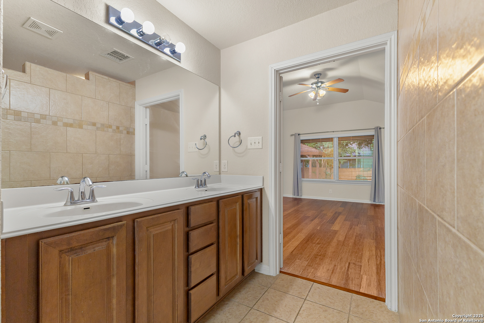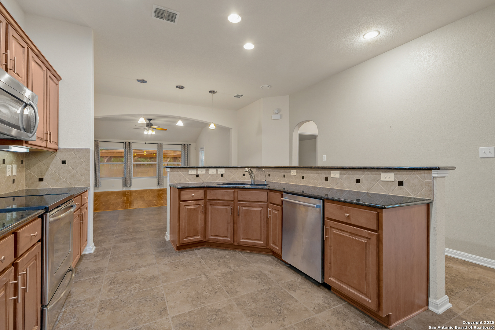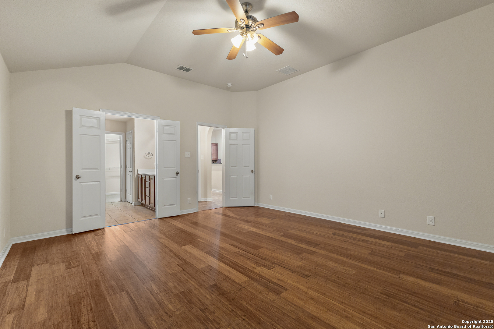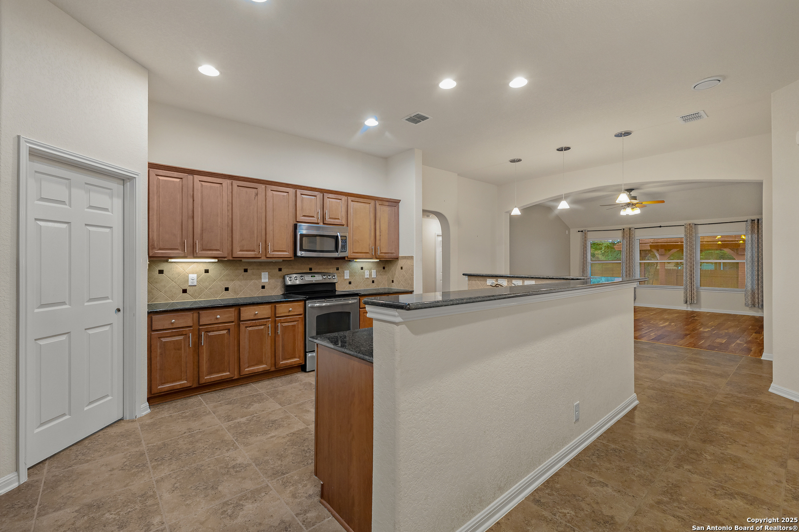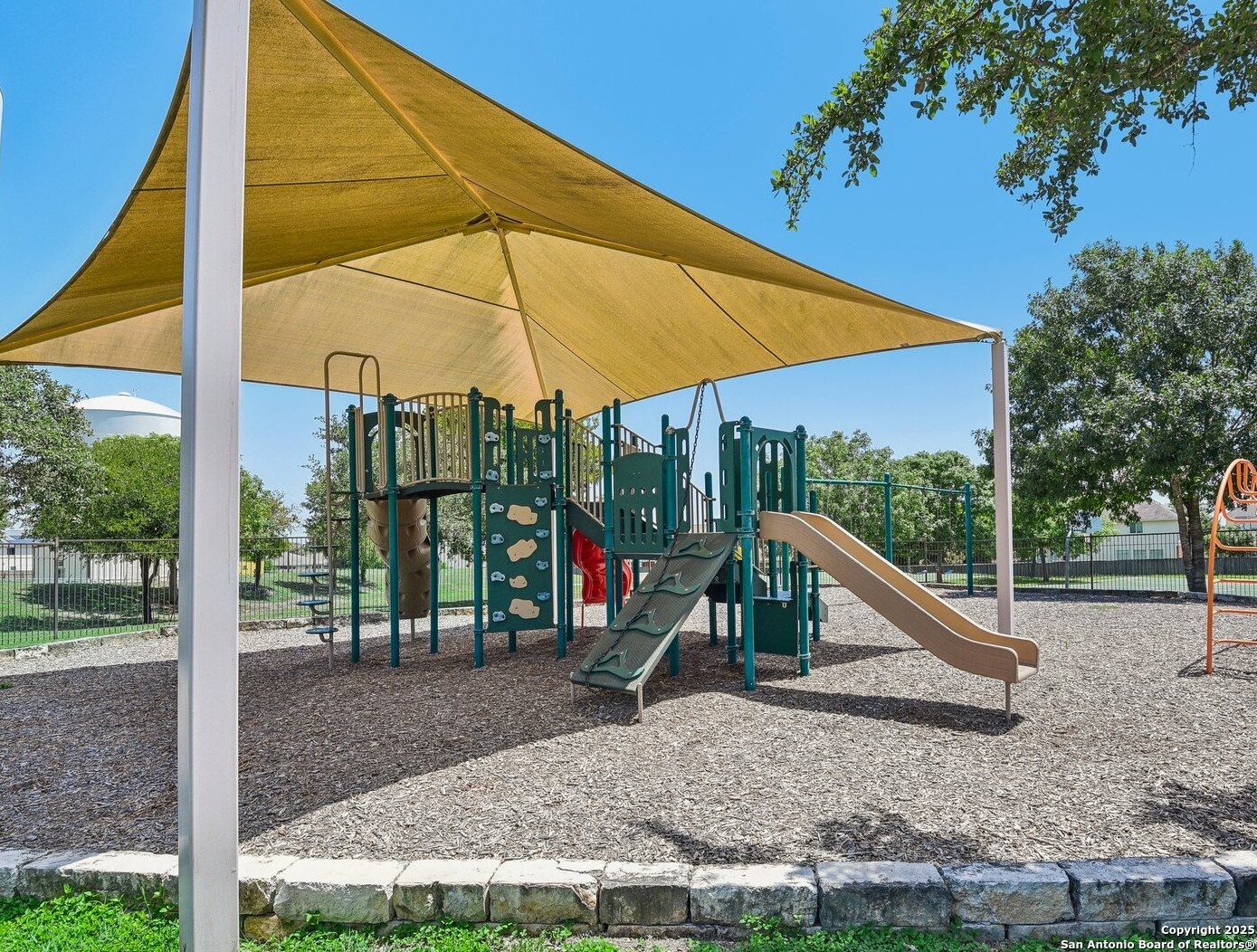 ** NEW ROOF coming soon - ready for new buyer to choose the color!! ** Welcome to this spacious and thoughtfully designed 3-bedroom, 2-bath home with a 3-car garage in the heart of Cibolo! Offering 2,229 sq. ft. of comfort, this 2008 build combines functionality with style-and includes the added benefit of paid-off solar panels for energy efficiency and savings. At the front of the home, a dedicated office makes working from home a breeze-perfect for client visits or simply enjoying the peaceful views of nature. Just off the entry, the formal dining space flows seamlessly into the oversized kitchen with abundant cabinetry, stainless steel appliances, and generous counter space. Designed for entertaining, the open concept offers clear sight lines from kitchen to dining to the expansive living room. The split-bedroom layout ensures privacy and comfort, with only the office and two secondary bedrooms featuring carpet. The rest of the home is finished in attractive laminate wood flooring for style and easy maintenance. Step outside to a xeriscaped backyard (with the option to add sod pathways, as shown in photos) featuring a stunning magnolia tree, covered patio, charming gazebo, and additional landscaping for year-round enjoyment. This corner-lot property sits at the curve of a quiet cul-de-sac, providing both privacy and curb appeal. Located in top-rated SCUCISD and just minutes from Randolph Air Force Base, the community also offers amenities including a pool, park, tennis courts, and walking trails. Schedule your showing today! With mature trees, low-maintenance landscaping, paid-off solar panels, and a flexible floorplan, this home is ideal for families, multi-generational living, or anyone who loves to entertain.