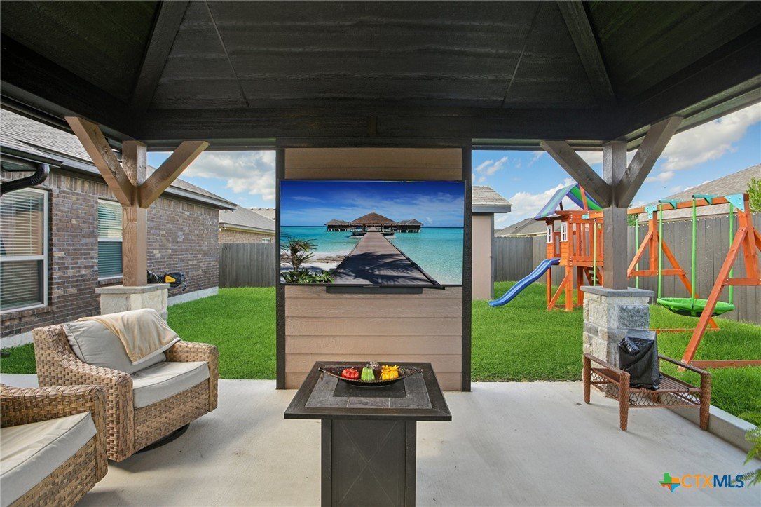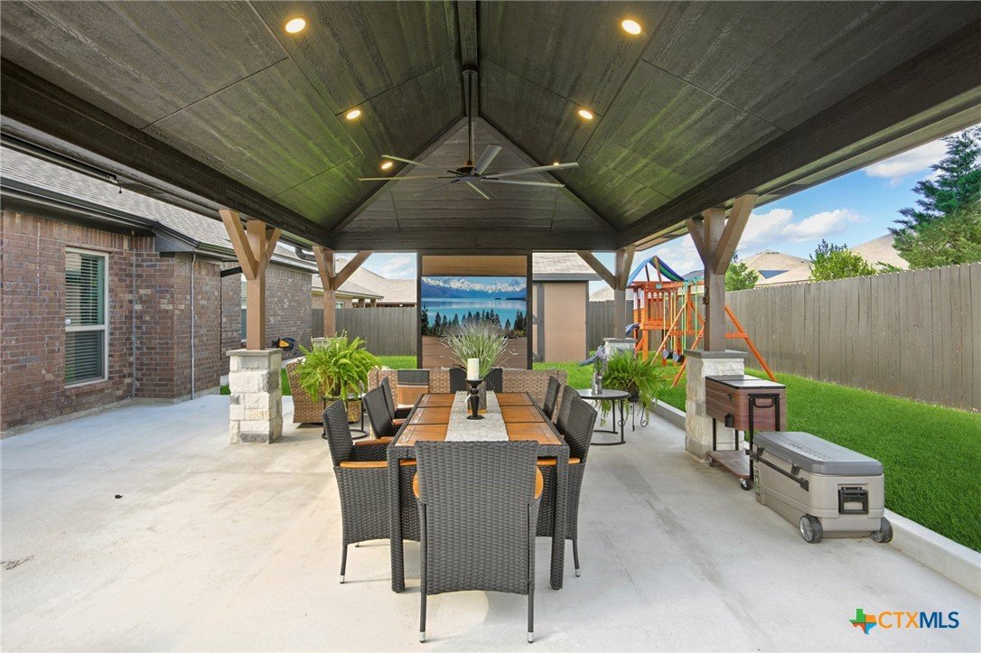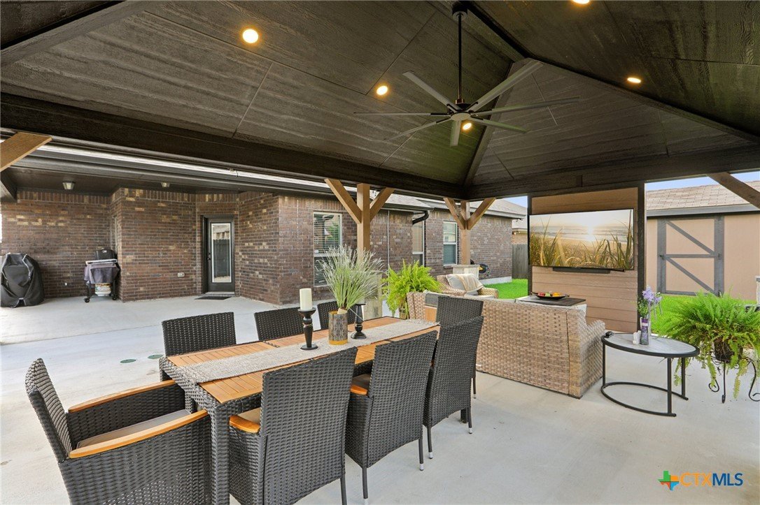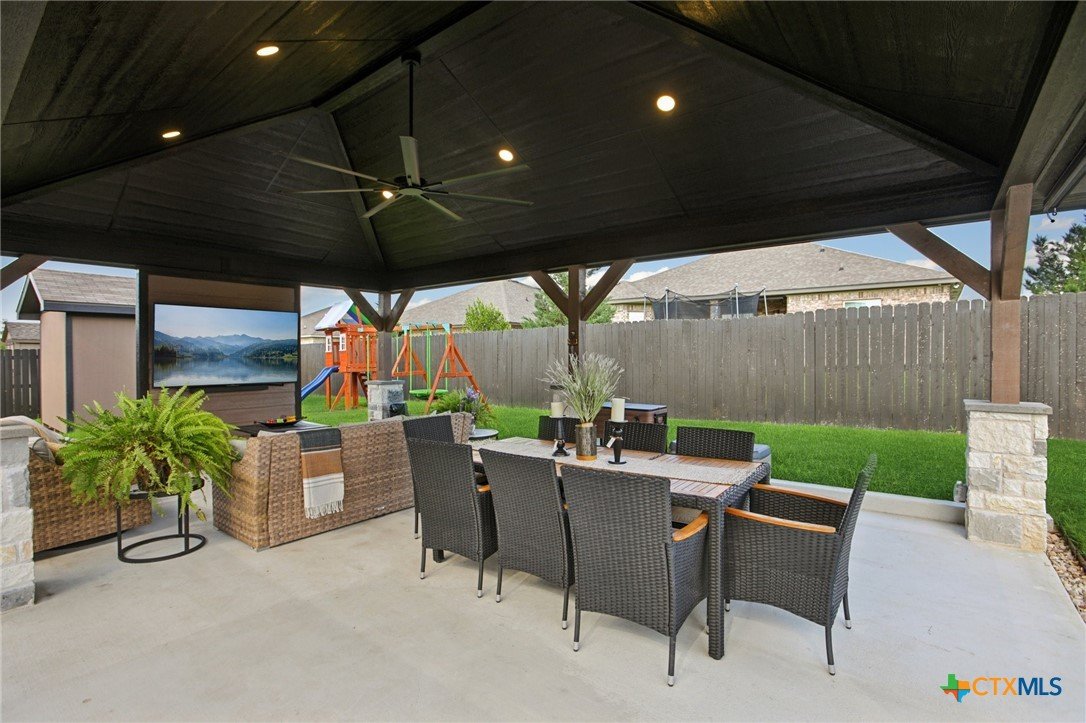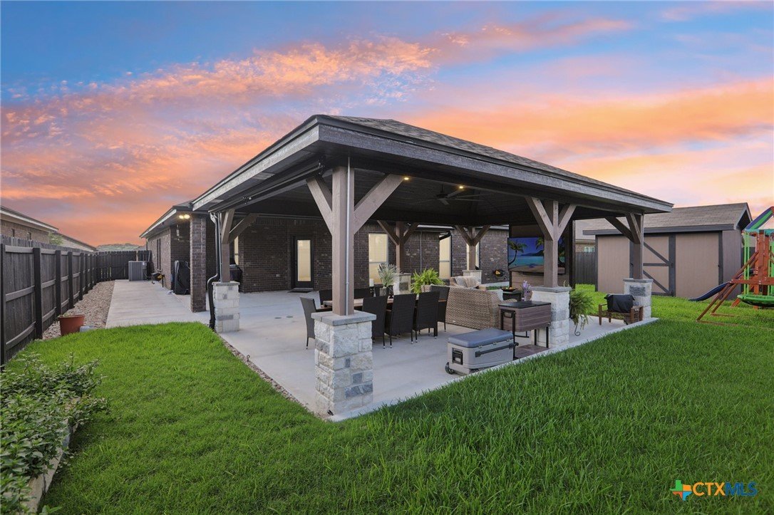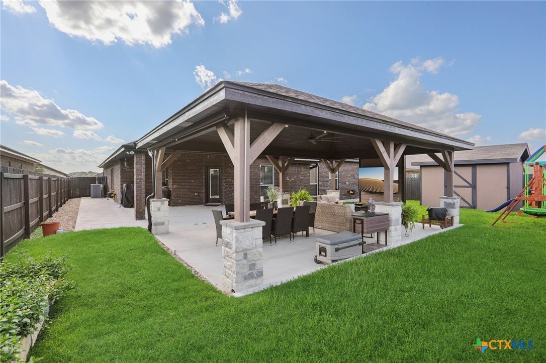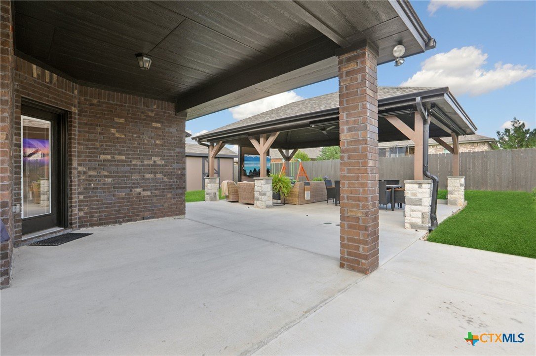 Executive Living with Show-Stopping Outdoor Pavilion + Dreamy Upgrades! Only 4 Years Old but looks every bit as pristine as a new build! 4 Bedrooms + Big Office | 3 Full Baths | 2,579 Sq Ft | $30K Backyard Upgrade! Step into luxury and elevated everyday living in this stunning executive home located just off Clear Creek—minutes from Fort Hood, shopping, and the airport. Outdoor Living at Its Finest! A $30,000 custom-built outdoor pavilion was added just last year—perfect for entertaining year-round! Think: cozy nights under the lights, weekend BBQs, game day hangouts, and peaceful mornings with coffee and fresh air. Inside, You’ll Love: - 4 spacious bedrooms - A large, private home office with double glass doors—ideal for remote work or optional 5th bedroom- 3 FULL bathrooms with stylish finishes -Grand Foyer with dual designer light fixtures—hello, dramatic entrance! - Open-concept chef’s kitchen with a large center island, tons of counter space, bar seating, and beautiful cabinetry - Primary retreat with beamed ceilings, a spa-inspired en suite (soaking tub + oversized tiled shower), and a HUGE walk-in closet - Dedicated mudroom closet coming in from the garage - Full-size utility room with sink and upper/lower cabinetry * Bonus Features You’ll Appreciate: - Whole-home water softener system - Outdoor storage building (conveys!) - Custom lighting fixtures throughout Move-in ready condition with modern finishes and thoughtfully designed & SPACIOUS layout. You really have to walk through this home and backyard to feel the luxuriousness! This is more than just a house—it’s the lifestyle upgrade you’ve been waiting for. Schedule your private tour today!