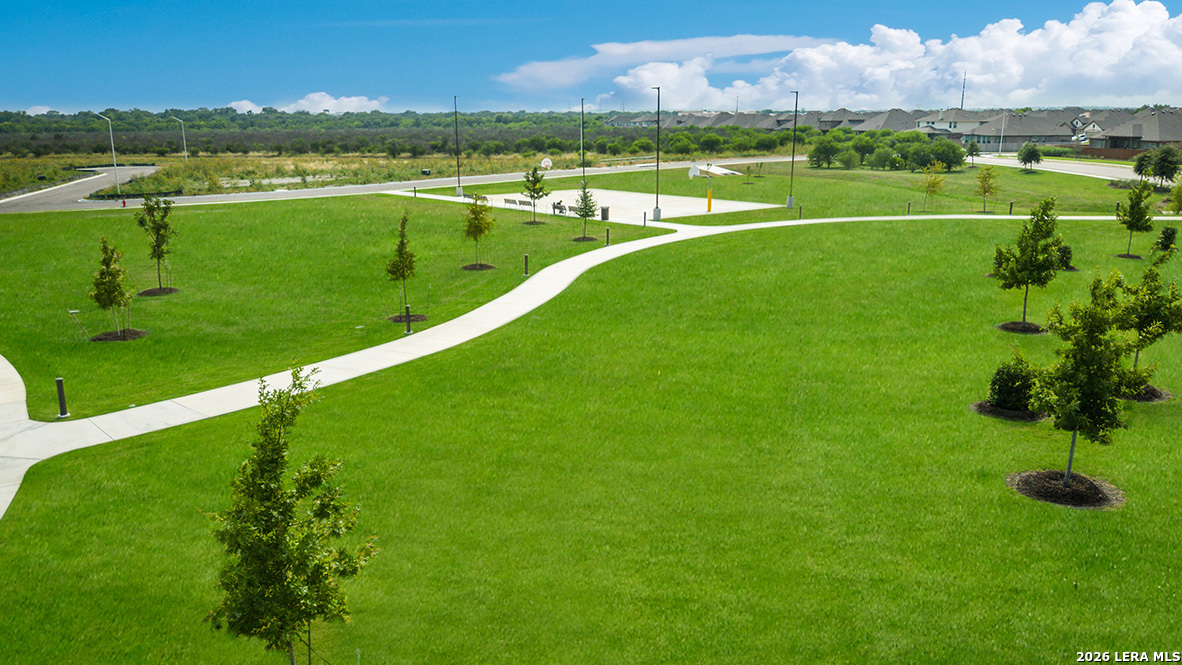 The Bryant is a stunning single-story home featured at Steele Creek in Cibolo, TX. The Bryant is sure to impress with its selection of 3 front exteriors, 4 bedrooms, 2 bathrooms and 2-car garage. Welcome guests as they walk through the elongated foyer with a decorative nook wall feature to the spacious eat-in kitchen. Facing the blended dining area and living room, the kitchen includes an oversized island, corner pantry with shelving, plenty of cabinet storage, quartz countertops, stylish subway tile backsplash, stainless steel appliances, and a gas cooking range. The private main bedroom is located at the back of the house and features a relaxing ensuite bathroom complete with double vanities, a garden tub, walk-in shower, and a spacious walk-in closet. If privacy is your top priority, this bathroom comes standard with a separate water closet. Two secondary bedrooms are located off the entry and the other is centrally located off the kitchen. All have quality carpet, spacious closets and windows for plenty of natural lighting. Whether these rooms become bedrooms or other bonus spaces, there is sure to be comfort and functionality. Additional features include tall 9-foot ceilings, 2-inch faux wood blinds throughout the home, luxury vinyl plank flooring in the entry, family room, kitchen, and dining area, ceramic tile in the bathrooms and utility room, and pre-plumb for water softener loop. Relax outside on a covered patio (per plan) located off the family room and enjoy full yard landscaping and full yard irrigation. You'll enjoy added security in your new home with our Home is Connected features. Using one central hub that talks to all the devices in your home, you can control the lights, thermostat and locks, all from your cellular device.