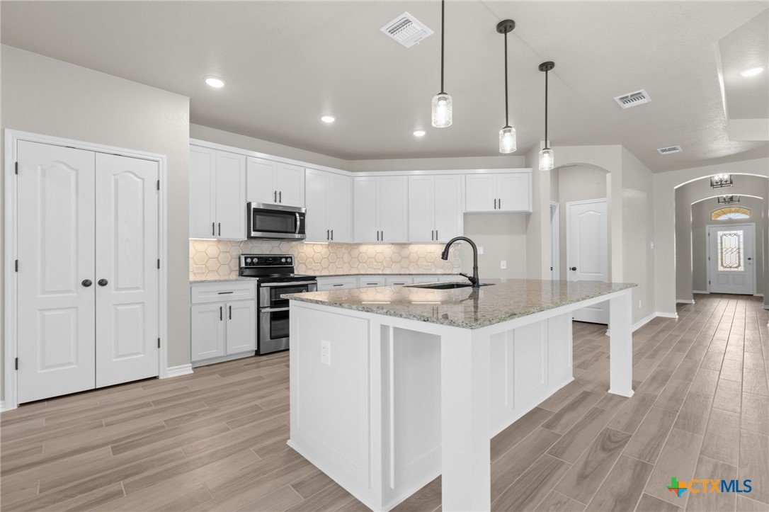 The Luxor plan by Carothers Homes offers spacious living at its best, with an open layout designed for both comfort and functionality. This floorplan flows seamlessly to connect the living, kitchen, and dining areas, creating the perfect space for entertaining and everyday living. The living room features a cozy corner fireplace, adding warmth and charm to the space. The kitchen is equipped with a large island featuring granite countertops. The tiled backsplash and stainless appliances complete the space. The primary bedroom is complemented by a generously sized private bathroom, featuring a walk-in closet, garden tub, walk-in shower, and dual vanities. The spacious in-law suite offers a private bath with a walk-in shower and closet. Two additional bedrooms provide ample space for the rest of the family. Additional features of this home, including a covered patio, privacy fence, front and back sod, and a sprinkler system, are standard with every Carothers Home