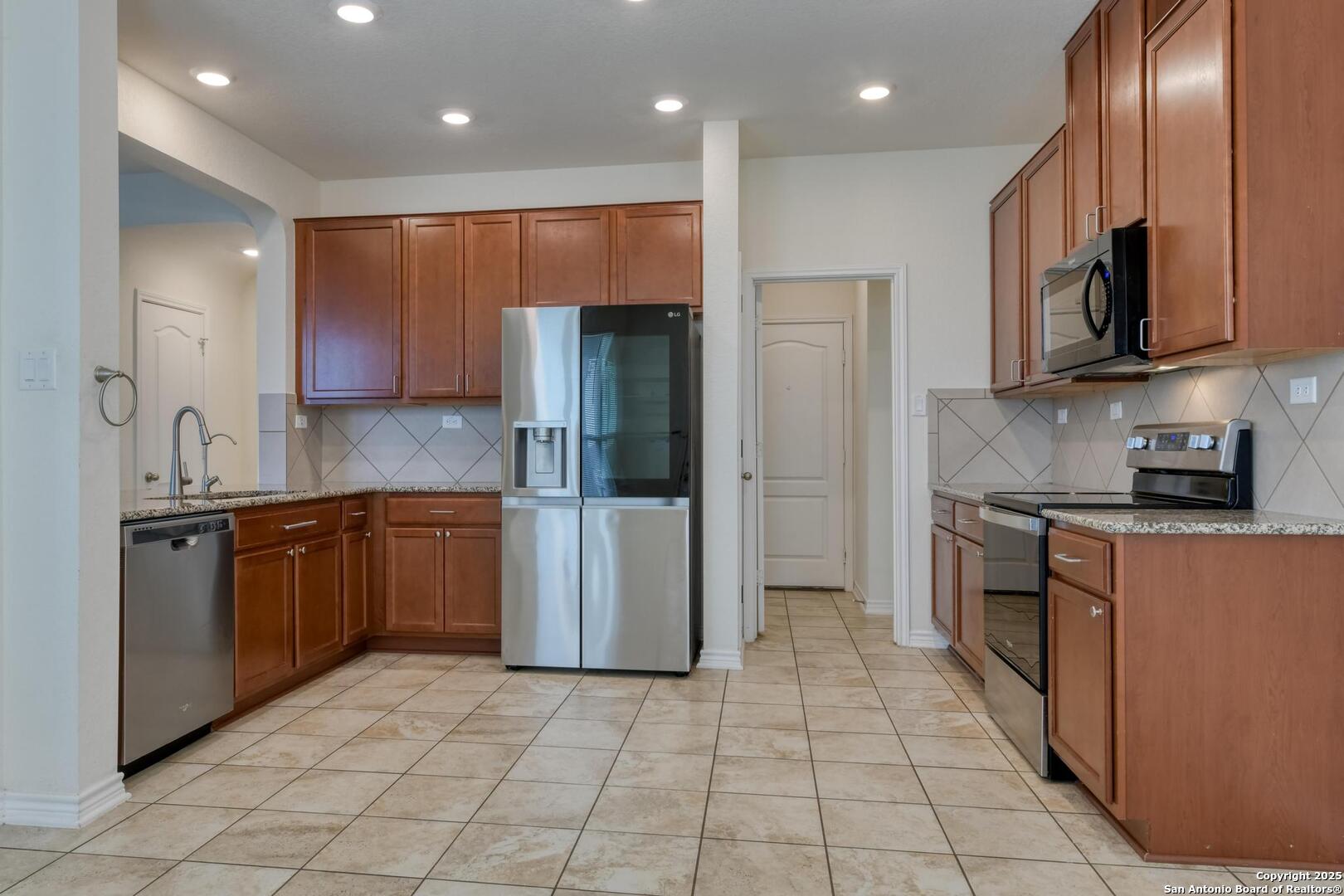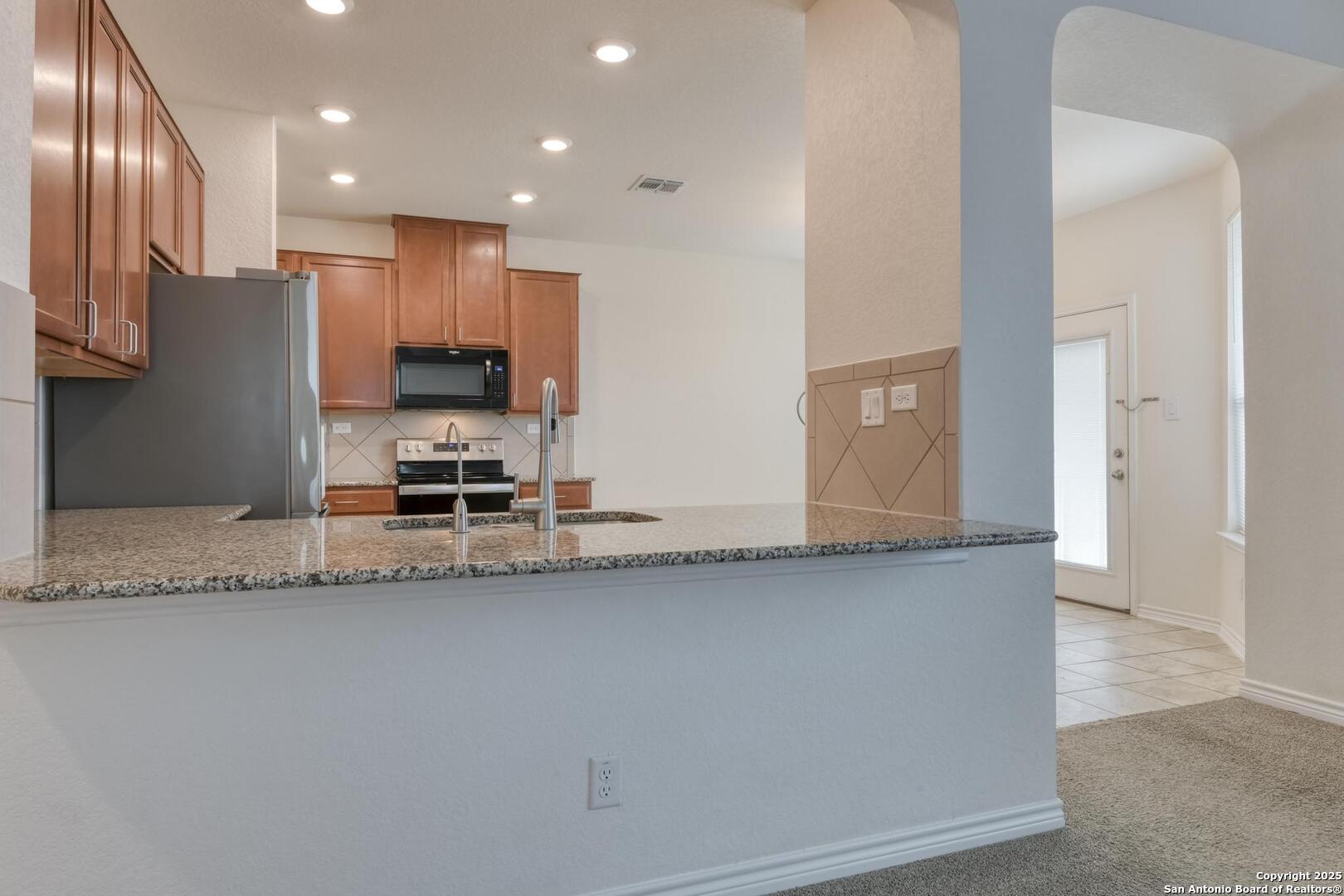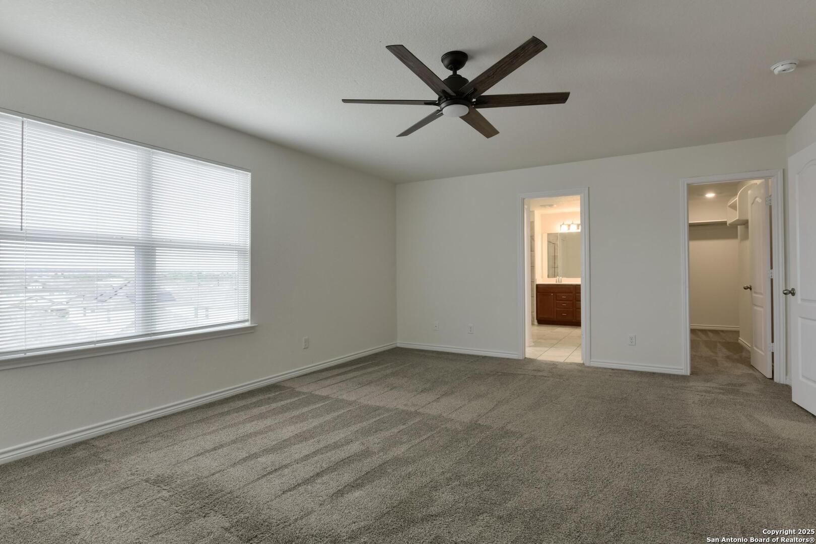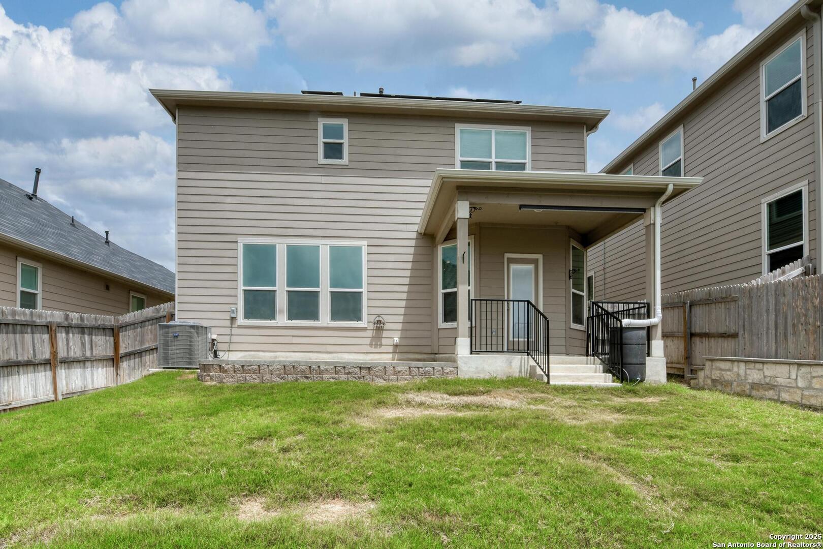 MOVE IN SPECIAL***HALF off 1st month rent!!!! Welcome to this spacious two-story home featuring 9-ft ceilings, 3 bedrooms, and a versatile gameroom upstairs. The first floor includes a den/flex room, perfect for a home office or guest space, as well as a comfortable living room that flows into an open kitchen with granite counters. Enjoy peace of mind with a sprinkler system in both the front and back yards and save on energy bills with a solar panel system already installed. Just minutes from Randolph AFB. Quick access to The Forum at Olympia Parkway for shopping and dining. Close to Converse City Park with a playground, ball fields, and walking trails and easy access to Loop 1604 and I-10 This home combines comfort, energy efficiency, and convenience-schedule your showing today!