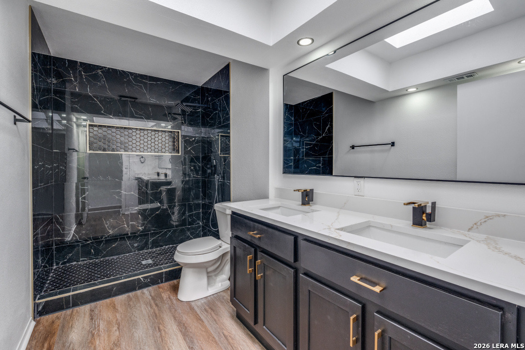 Stunningly remodeled and move-in ready! Welcome to 5118 Gawain Dr., a beautifully updated 4-bedroom, 2-bath home nestled on a quiet dead-end street. This light-filled residence features an open-concept layout with large windows, new flooring, and stylish lighting throughout. The show stopping kitchen boasts quartz countertops, new cabinetry, a designer backsplash, stainless steel appliances, and a charming farmhouse sink with elegant gold finishes. Retreat to the spacious primary suite with a walk-in closet, spa-like bathroom, complete with a double vanity, oversized walk-in shower, and a skylight that fills the space with natural light. Enjoy outdoor living in the expansive backyard with a covered patio and storage shed. The home also features fresh interior and exterior paint, new windows and doors, a covered carport with a new concrete driveway, and updated electrical, plumbing, and HVAC systems brought up to code. Conveniently located across from Roosevelt High School, just one mile from Camelot Elementary, and minutes from highways, shopping, dining, and HEB.