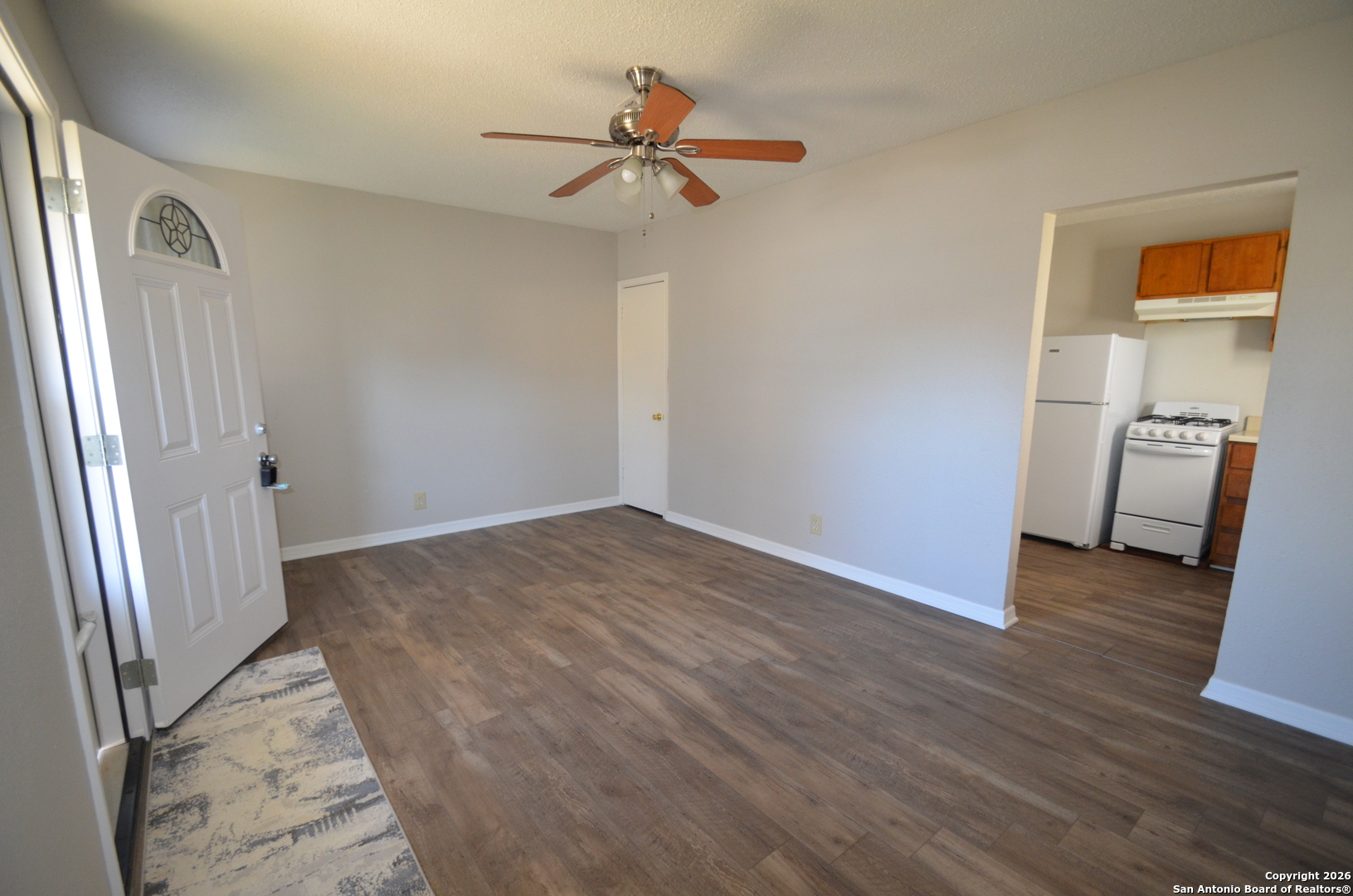 Awesome income producing property in Schertz. This great duplex is just minutes from the elementary school, and close to Pickrell Park with the pool and sport courts. Each side boasts a kitchen dining area, living area, master and bath downstairs and a gameroom with a closet upstairs. Investor could live on one side and rent the other, or rent both out. New paint, new tile, new LVP, newer fixtures. Property sits on a 1/4 of an acre with a split yard that is fenced. Plumbing for washer drier is present but not displayed. Come take a look at this great property. This is an older home and does need some TLC hence the lower price.