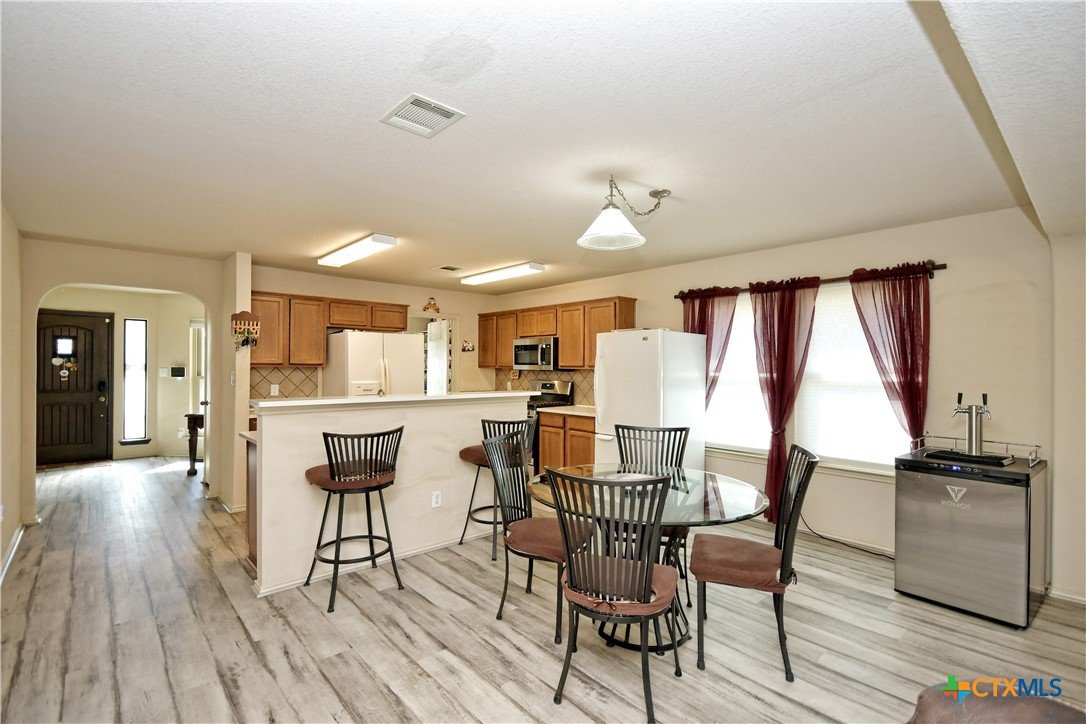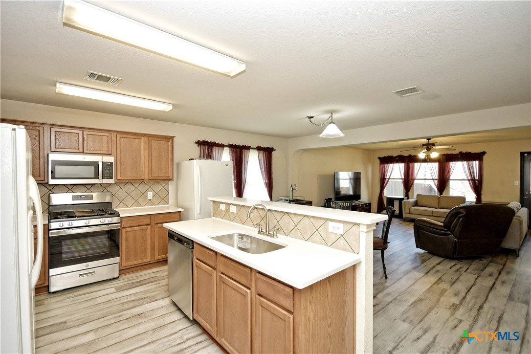 Thoughtfully updated 1 story home at Austin's Colony offers NEW quartz counters & kitchen sink, New stainless appliances, New flooring/no carpet, and updated roof & water heater! The home features an open concept with spacious family room, 3 bedrooms, 2 full baths plus a flex space, gas cooking, spacious & fenced back yard, 2 car garage with water softener and garage door opener. You'll love this location only 5 miles from the Tesla Giga factory, quick & easy access to Hwy 130, 12 minute drive to Austin Airport, 20 minutes to Downtown Austin.