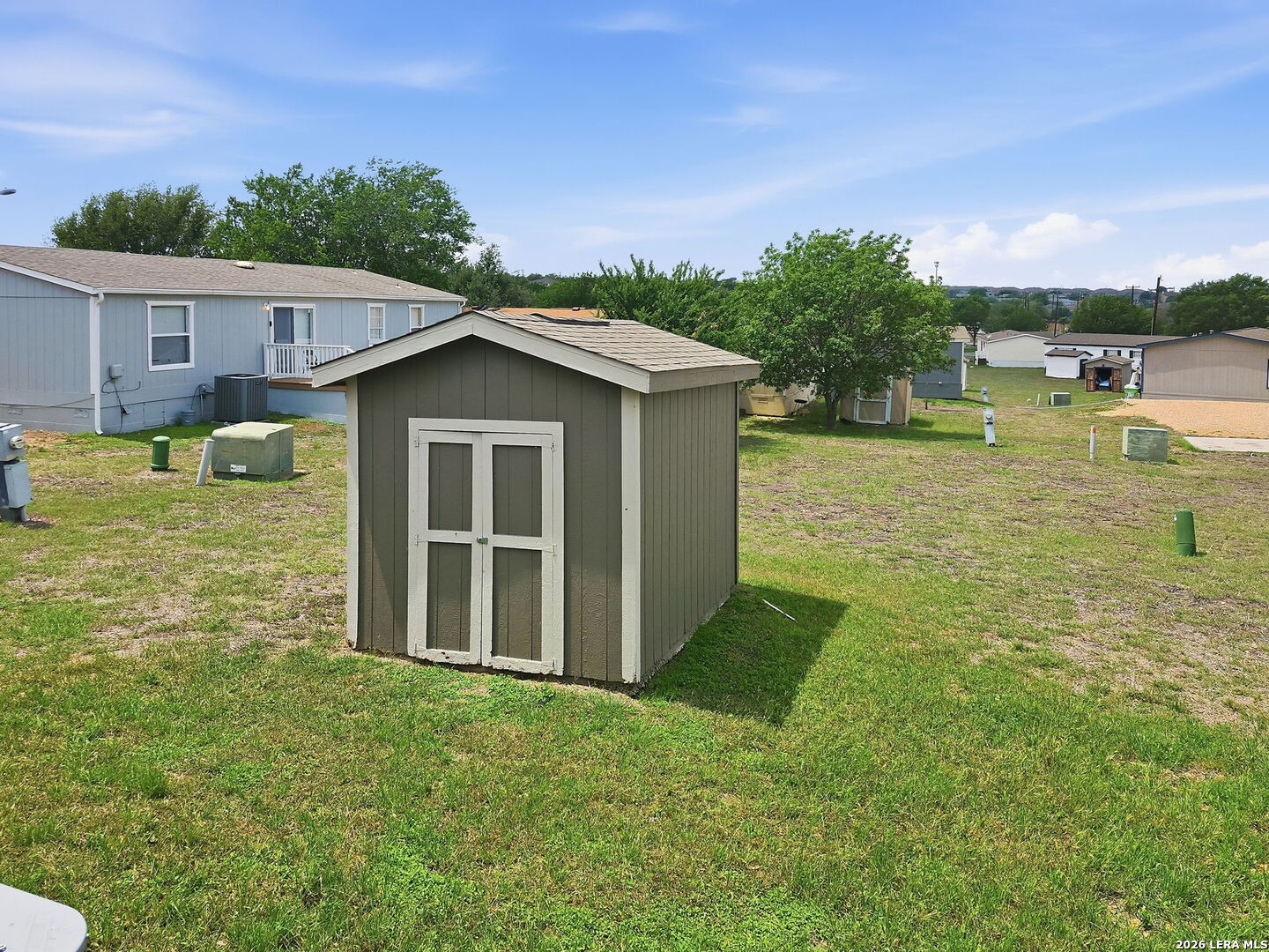 Come see this quaint and cozy 2 bedroom, 2 bathroom manufactured home nestled in a quiet community. Home upgrades, 2 years ago, include new electrical throughout, new flooring, walk-in shower in the primary bathroom, tankless water heater and new wheelchair ramp and stairs on the front porch. Spend the summer at the community pool and playground. Close proximity to HEB and Walmart. HOA requires all buyers 18 and over to apply. It's a $75 lot application and a $773 deposit (same as the monthly lot fee). Lot fee/HOA fees are $773/month. The lot fee also includes yard service, trash service and water.