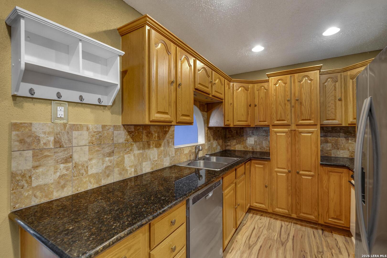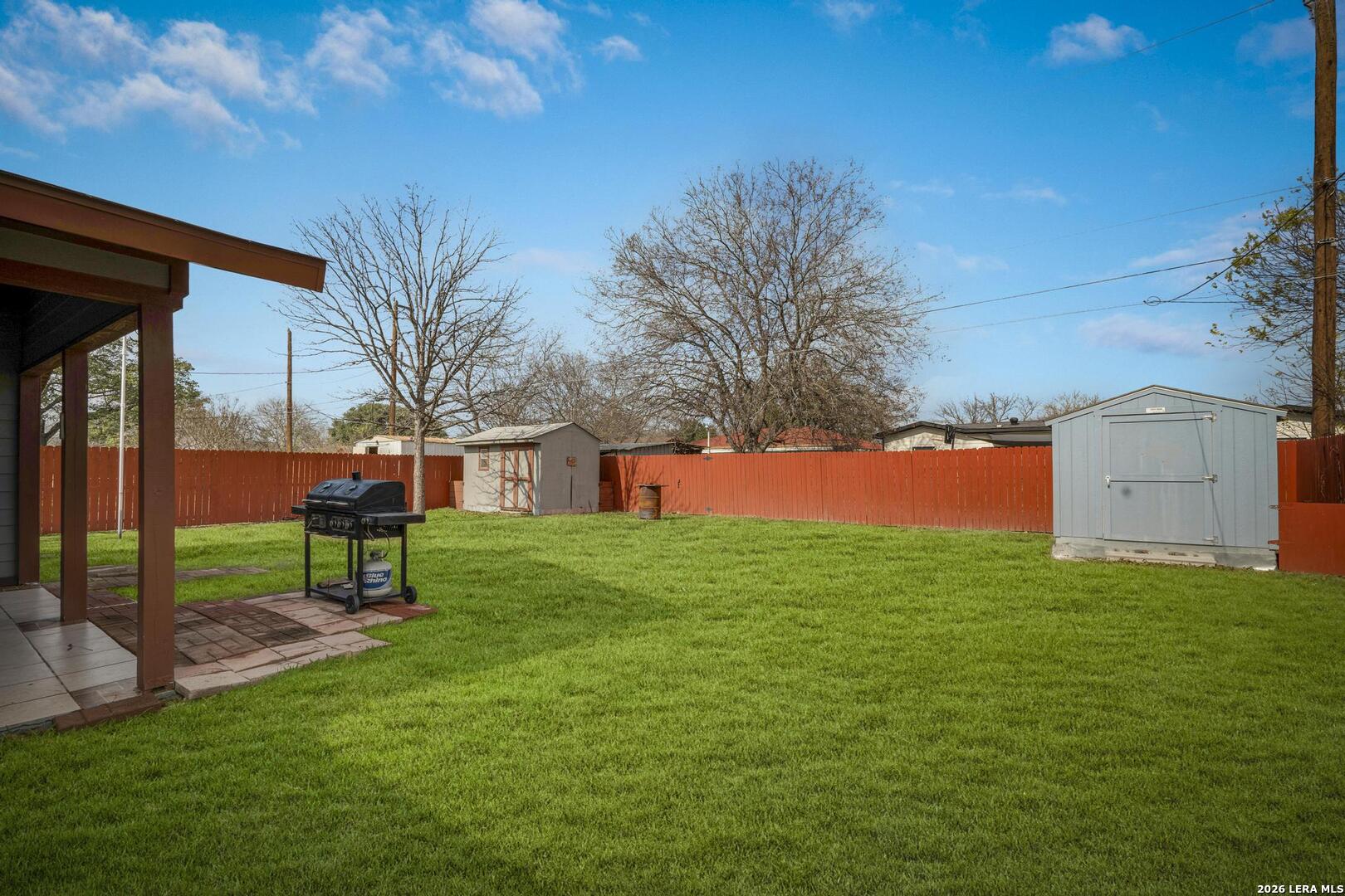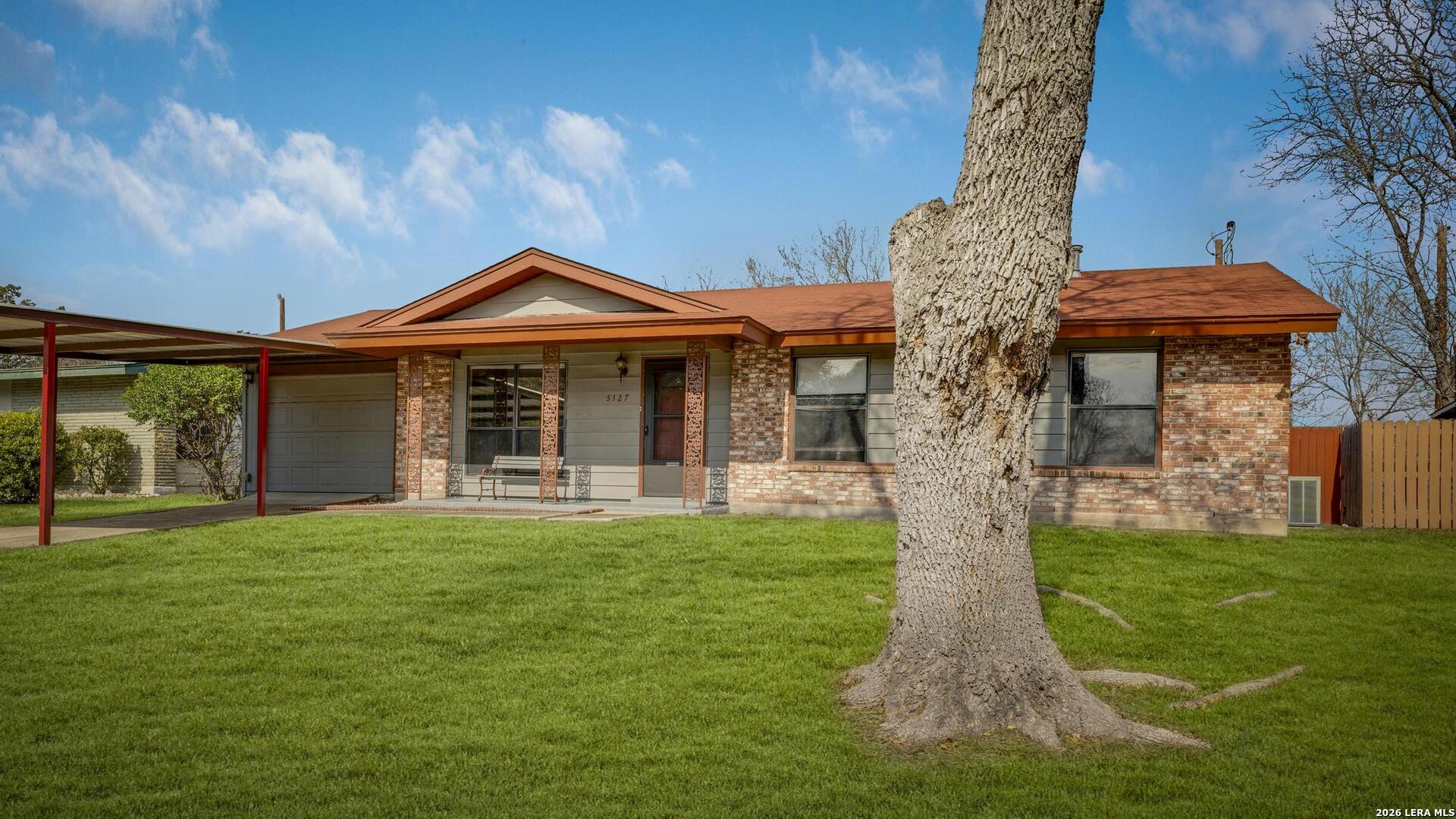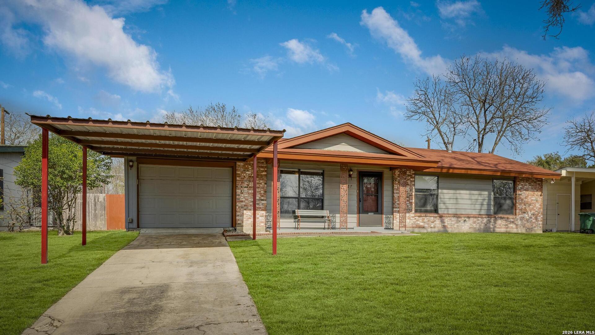 Well-maintained 3-bedroom, 2-bathroom home offering versatility, space, and opportunity. Featuring no carpet throughout, the home includes two separate living areas, perfect for flexible living or entertaining. The remodeled kitchen adds modern appeal, while the enclosed garage provides additional living space, ideal for a home-school room, office, or workout/game room. Enjoy a spacious backyard complete with a nice patio and two storage sheds, offering plenty of room for outdoor gatherings, hobbies, or future enhancements. Carport parking adds everyday convenience. Ideally located with easy access to Loop 410 and I-35, this home is close to shopping centers, restaurants, schools, and daily necessities. Just minutes from downtown San Antonio, military bases, and major employment hubs, the property combines affordability with a prime location. A great opportunity for first-time homeowners looking to build equity or investors seeking value as a rental or renovation project.