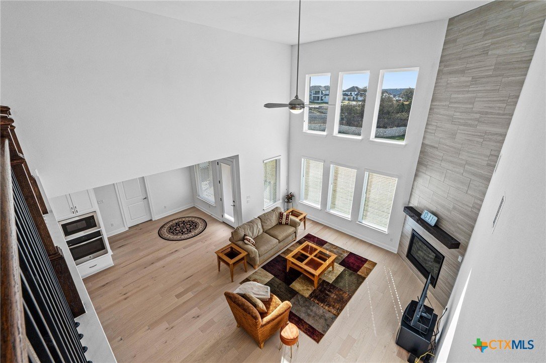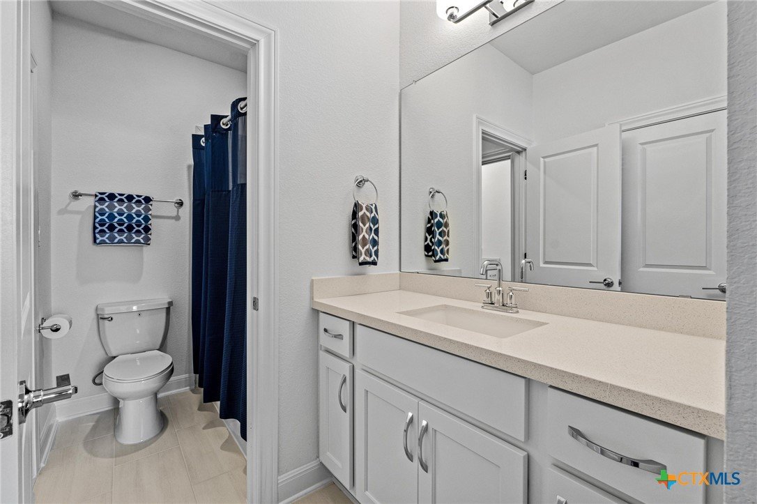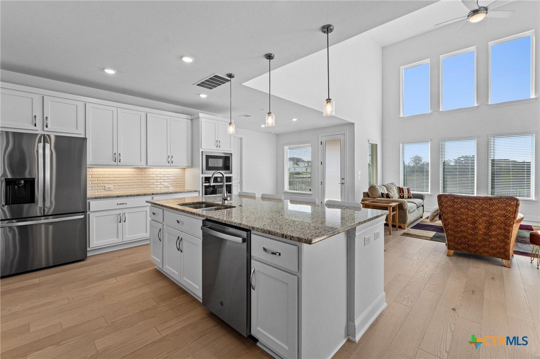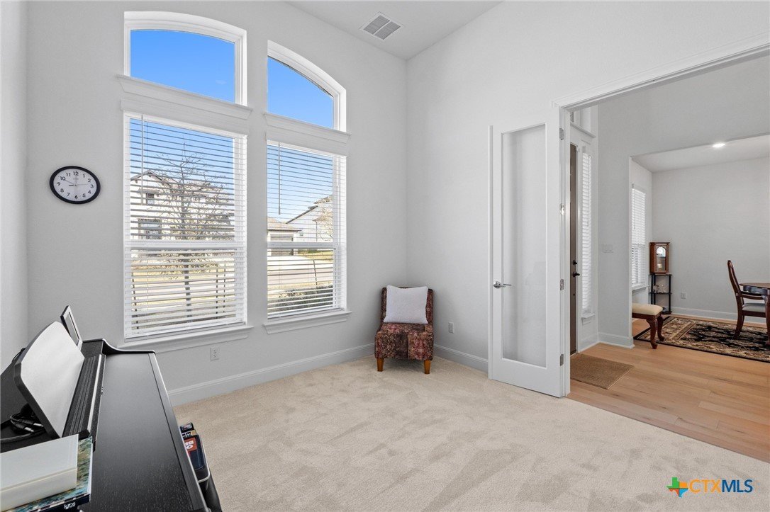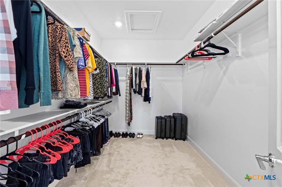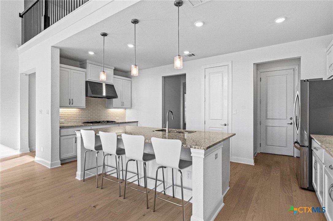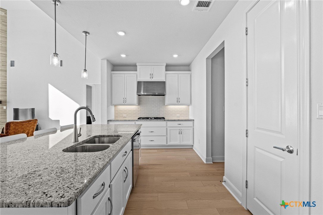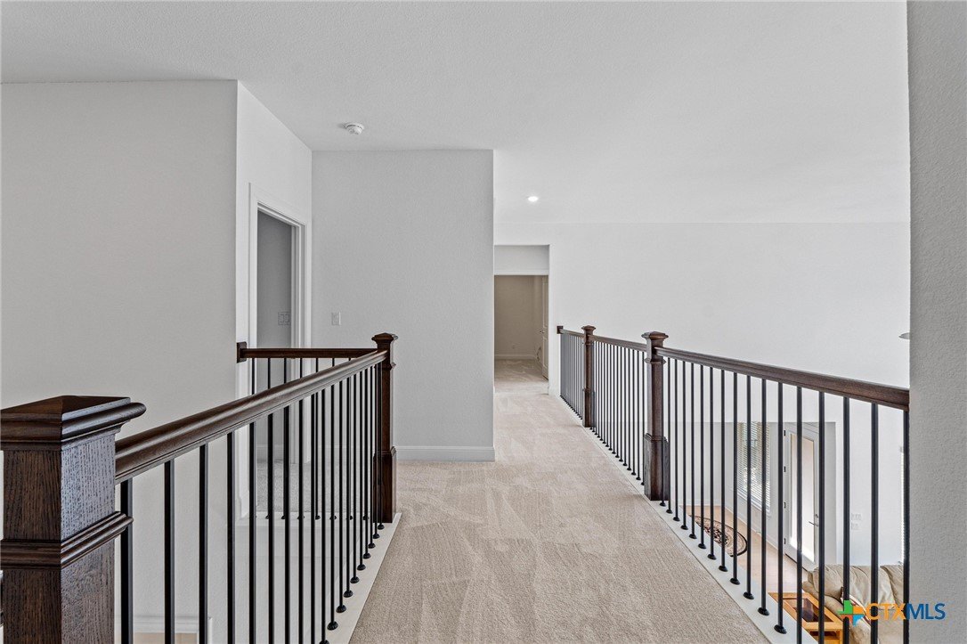 Beautiful home in new Calabria section of Travisso. INCENTIVES 3% of final PURCHASE PRICE applied towards closing costs, rate buydown and/or price reduction. Sapphire open concept floorplan with 5 bedrooms/4.5 baths on NORTH WEST facing GREENBELT LOT. Stately 100% brick home standouts as a distinctive classic. TWO MAIN LEVEL BEDROOMS: Spacious master suite (with 3’x1’ 2'7"construction add on) plus private guest quarters with ensuite bathroom. Perfect for family or parents from abroad visiting for a lengthy stay or friends dropping in for a weekend stay. Front foyer with 19’4” ceiling grandly leads past OFFICE/STUDY (11’4”x11’) with French doors and FORMAL DINING (10.3”x13’11”) directly to the GREAT ROOM. Powder bath with pedestal sink off long foyer. Wrought iron railing on second story showcases GREAT ROOM (18’1”x21’10”) below with tall windows looking out over the greenbelt and hill country beyond. Oodles of natural light coming through tall picture windows plus ~40 recessed can lights makes this a bright and light home. MEDIA ROOM wired for data, sound and projector makes for memorable family movie nights. Large GAME ROOM (16’7”x13’3”) upstairs could be teen get away, playroom, craft room, project central, quiet area for homework, or flex. Granite kitchen island (7’9”x3’8”) with spacious breakfast bar plus CASUAL DINING with access to large covered patio. Huge gourmet kitchen with 5 burner gas cooktop, built-in oven and microwave plus 14’9” linear counter space. Refrigerator (~1+ yr. old) coveys. Second bedroom at top of stairs with ensuite bath offers privacy for college student, resident princess, or favorite child. Loop for water softener in garage. Two HVAC units plus two tankless water heaters. Covered patio is 16’10”x8’3”. Washer and dryer (~1+ yr. old) in laundry room convey. No need to build from scratch, this beauty with a fully transferable warranty and 3% INCENTIVES is ready for move in now!