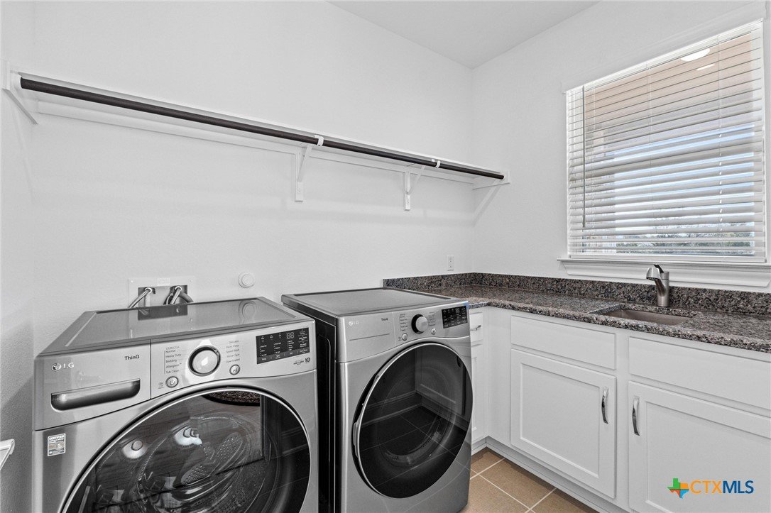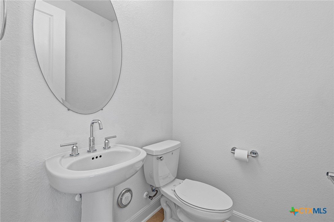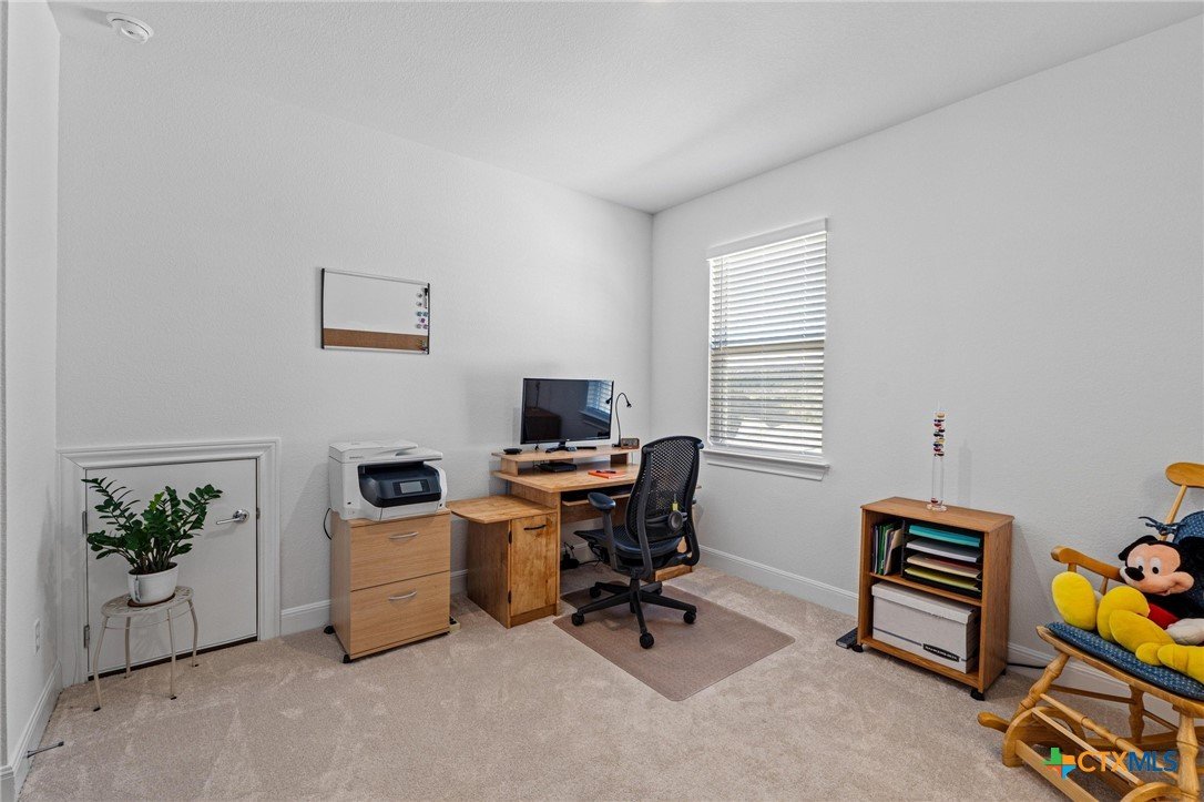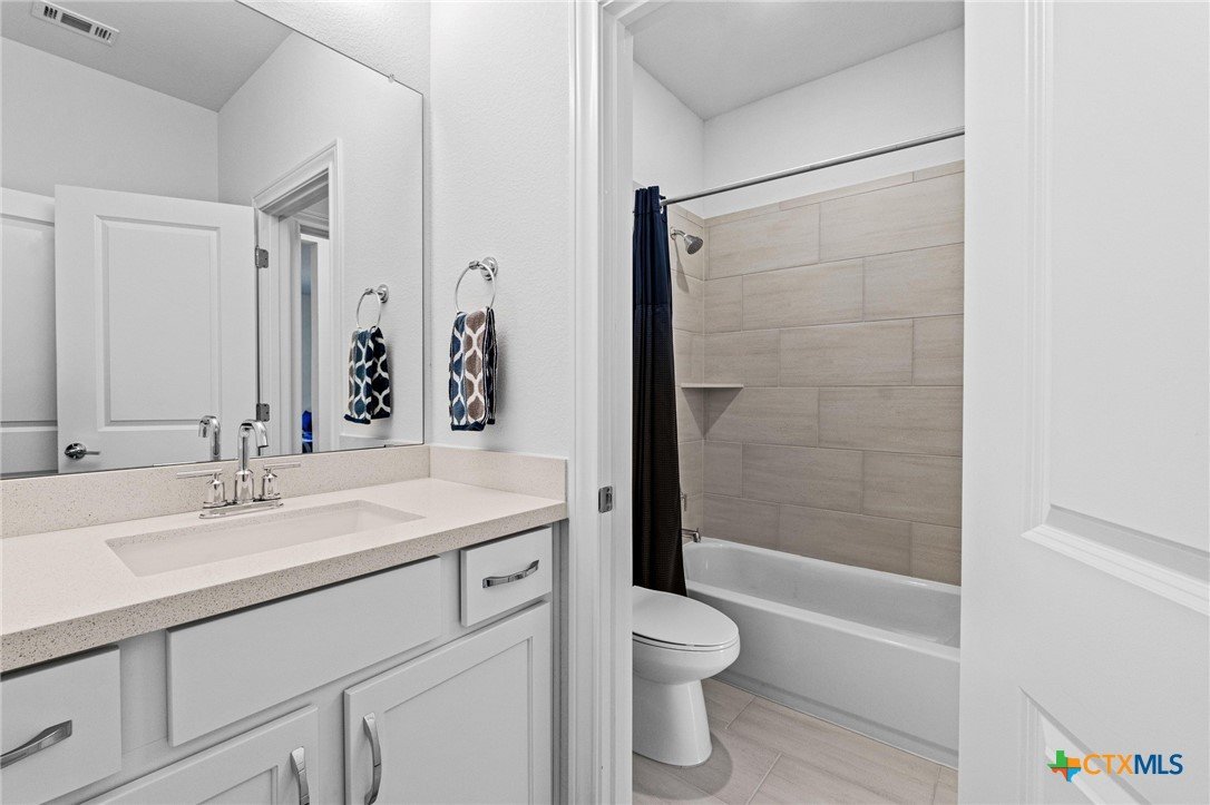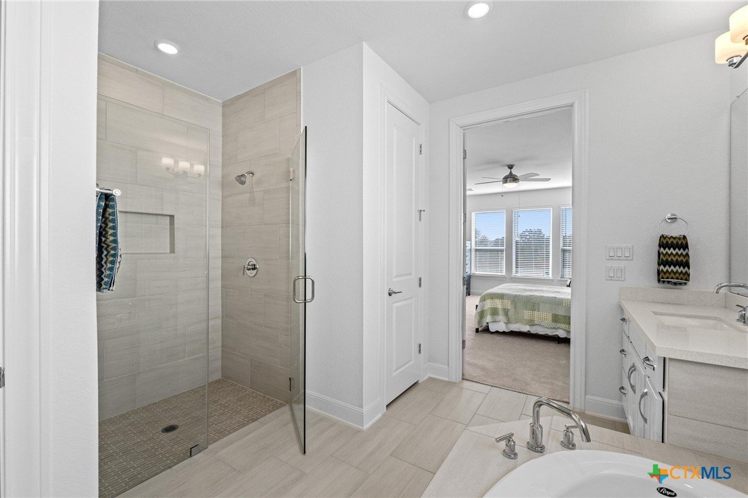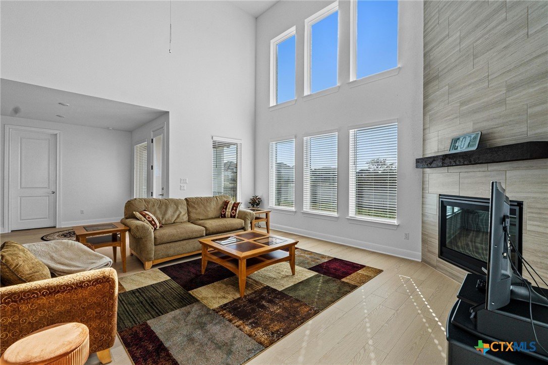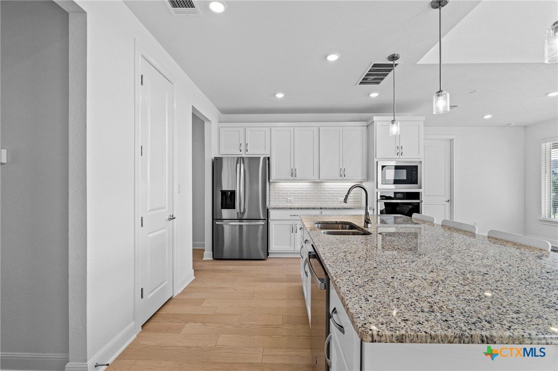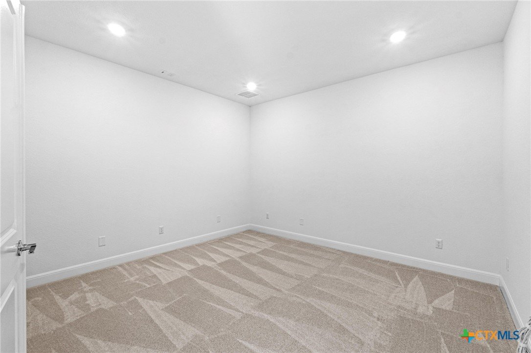 Beautiful home in new Calabria section of Travisso. INCENTIVES 3% of final PURCHASE PRICE applied towards closing costs, rate buydown and/or price reduction. Sapphire open concept floorplan with 5 bedrooms/4.5 baths on NORTH WEST facing GREENBELT LOT. Stately 100% brick home standouts as a distinctive classic. TWO MAIN LEVEL BEDROOMS: Spacious master suite (with 3’x1’ 2'7"construction add on) plus private guest quarters with ensuite bathroom. Perfect for family or parents from abroad visiting for a lengthy stay or friends dropping in for a weekend stay. Front foyer with 19’4” ceiling grandly leads past OFFICE/STUDY (11’4”x11’) with French doors and FORMAL DINING (10.3”x13’11”) directly to the GREAT ROOM. Powder bath with pedestal sink off long foyer. Wrought iron railing on second story showcases GREAT ROOM (18’1”x21’10”) below with tall windows looking out over the greenbelt and hill country beyond. Oodles of natural light coming through tall picture windows plus ~40 recessed can lights makes this a bright and light home. MEDIA ROOM wired for data, sound and projector makes for memorable family movie nights. Large GAME ROOM (16’7”x13’3”) upstairs could be teen get away, playroom, craft room, project central, quiet area for homework, or flex. Granite kitchen island (7’9”x3’8”) with spacious breakfast bar plus CASUAL DINING with access to large covered patio. Huge gourmet kitchen with 5 burner gas cooktop, built-in oven and microwave plus 14’9” linear counter space. Refrigerator (~1+ yr. old) coveys. Second bedroom at top of stairs with ensuite bath offers privacy for college student, resident princess, or favorite child. Loop for water softener in garage. Two HVAC units plus two tankless water heaters. Covered patio is 16’10”x8’3”. Washer and dryer (~1+ yr. old) in laundry room convey. No need to build from scratch, this beauty with a fully transferable warranty and 3% INCENTIVES is ready for move in now!