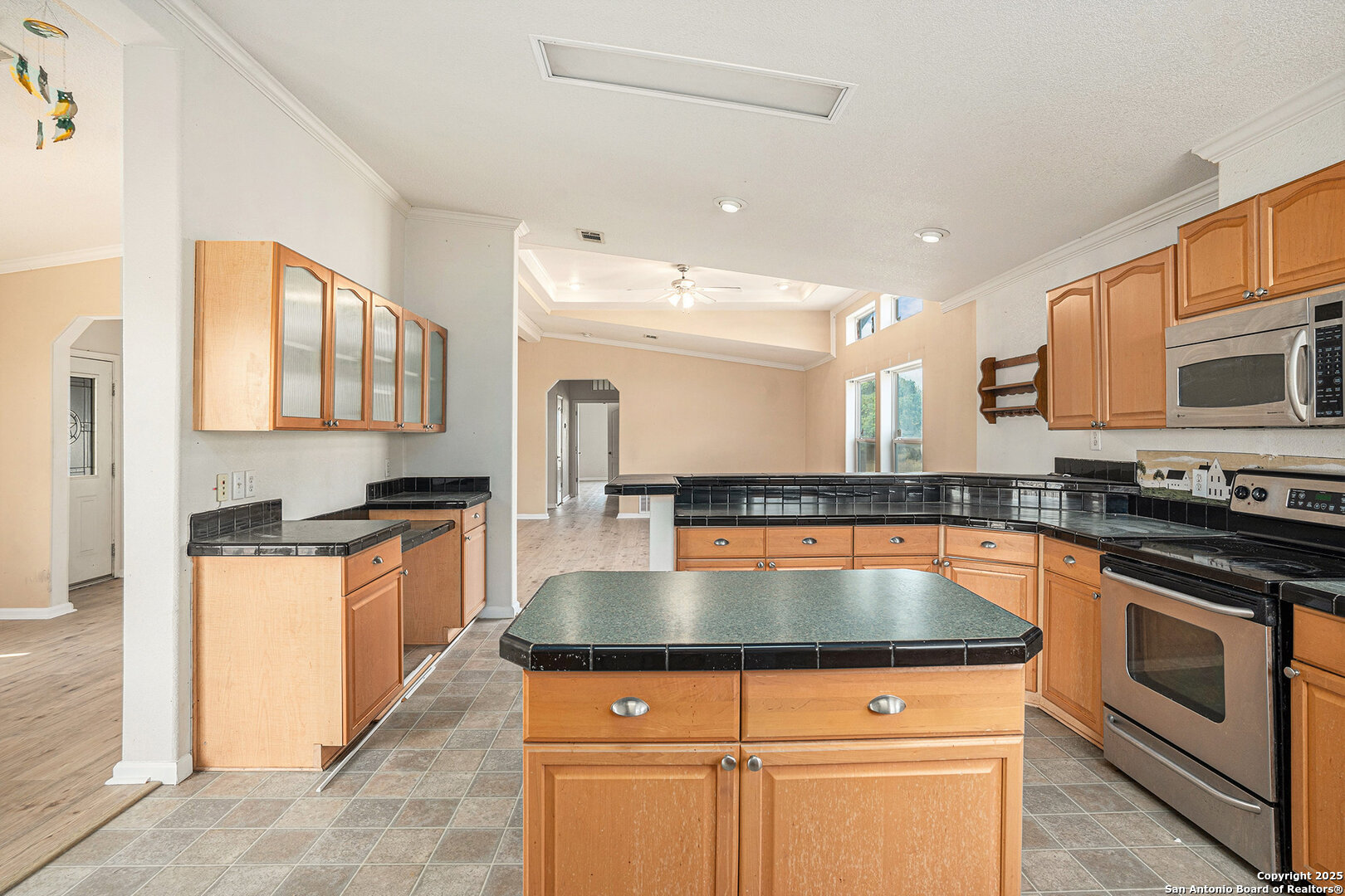 Price Improvement! Nestled among mature trees, this beautifully maintained home offers a perfect blend of peaceful country living and convenient city access-just 40 minutes from San Antonio. Inside, you'll find abundant natural light and a seamless flow between the kitchen, dining area, and living room, creating a functional and inviting space for both everyday living and entertaining. The home features an inviting front porch and sits on 7 acres, providing plenty of room for animals, gatherings, or simply enjoying the outdoors. A rare opportunity to enjoy the charm of country living without sacrificing city convenience. Discounted rate options and no lender fee future refinancing may be available for qualified buyers of this home.