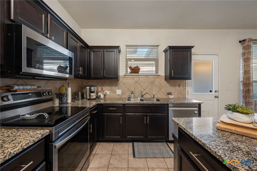 Welcome to this beautiful 4-bedroom, 2.5-bath townhome in the desirable Highland Park community. The 1,560 sq ft open-concept layout offers comfortable, functional living with thoughtful upgrades throughout. The kitchen is equipped with a full Samsung stainless steel appliance package, including an air-fry oven and a quiet dishwasher, perfect for modern living. A Samsung washer and dryer are also included. Recent improvements include refreshed interior paint in main living spaces, hallways, and office, updated flooring, upgraded interior door hardware, updated shower heads, and stylish lighting enhancements in the living area, kitchen, dining space, stairwell, hallway, and both porch fixtures. Enjoy a private backyard ideal for pets, plus the added benefit of being directly across from the neighborhood green space roundabout, just steps from the front door. Community amenities include a pool, playground, park, and more. Conveniently located near shopping, dining, and major highways, this home offers both lifestyle and location.
