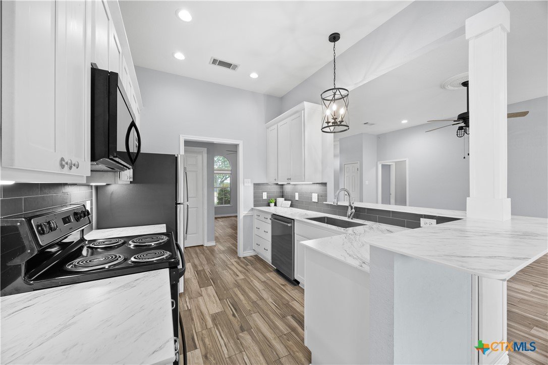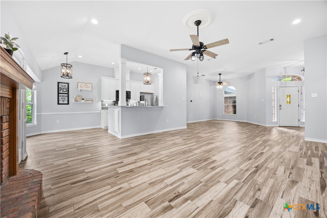 Welcome to this beautifully maintained 4-bedroom, 2-bath home situated on a spacious 0.76-acre lot in a highly desirable neighborhood! Enjoy ultimate privacy with no backyard neighbors, creating the perfect setting for relaxing or entertaining. Inside, you’ll find tile flooring throughout (updated in 2021) and no carpet, offering both style and easy maintenance. The home features updated window treatments, a modernized kitchen with a cozy vibe and open-concept layout, and some updated appliances. The living room boasts a wood-burning fireplace, perfect for gathering, and the home offers two dining areas, ideal for entertaining guests. Updated ceiling fans and kitchen light fixtures add a fresh, modern touch throughout, and the roof was updated in 2025. The garage provides tons of storage, maximizing functionality for everyday living. The backyard includes a storage shed with an updated roof, providing extra space for tools, hobbies, or storage needs. Tucked away in the hills, this home is just minutes from local amenities, shopping, dining, and Fort Hood, offering the perfect combination of privacy, convenience, and comfort—truly a home you’ll love coming back to every .