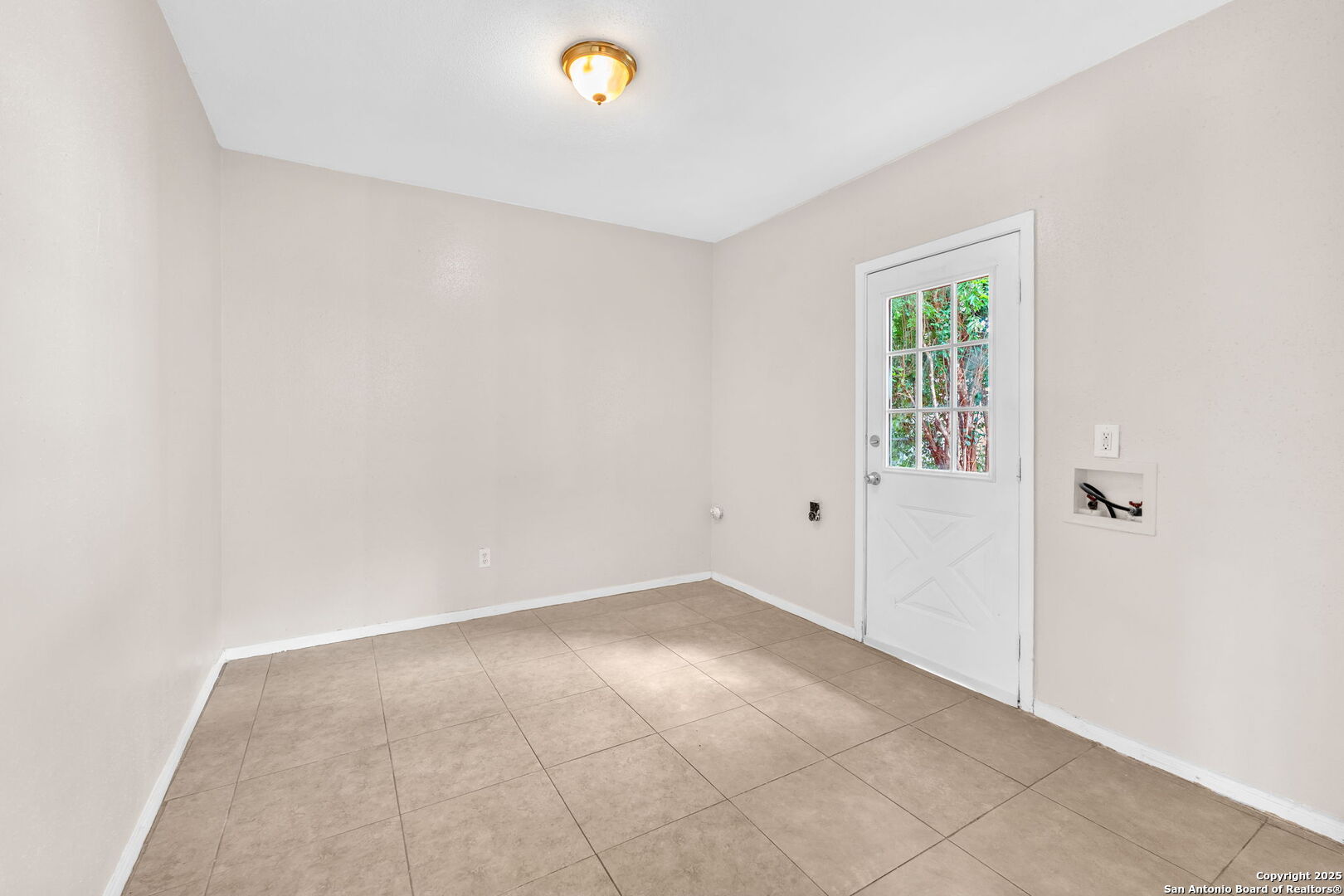 This well-kept 3-bedroom, 2-bath home offers a comfortable layout with a spacious living area and a functional kitchen. Originally built with one bathroom, a second bathroom has been thoughtfully added and is attached to the primary bedroom, providing extra convenience and privacy. The converted garage adds extra space with a second living area and a utility room, providing even more room to spread out and make the home your own. The primary bedroom is located toward the back of the home for added privacy, while the two additional bedrooms offer flexibility for guests, a home office, or other needs. The backyard offers a quiet outdoor space with a large, covered patio- ideal for relaxing, spending time outdoors or enjoying time with friends and family. Conveniently located just minutes from major highways, downtown San Antonio, Fort Sam Houston, and nearby shopping and dining, this home offers easy access to everyday essentials.