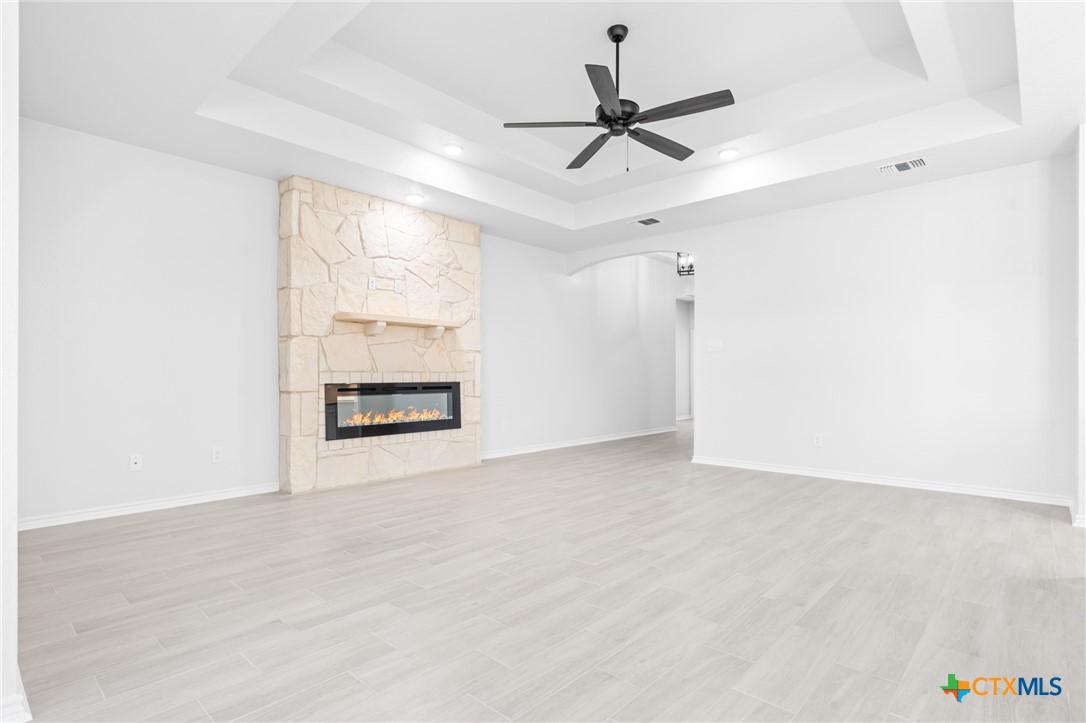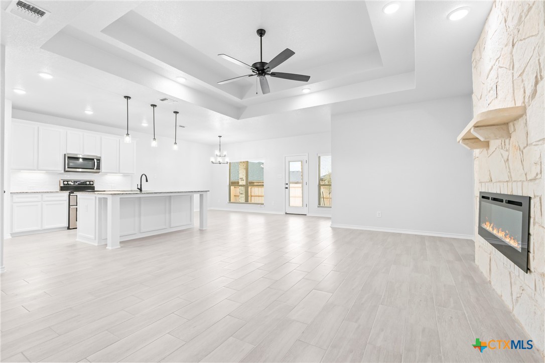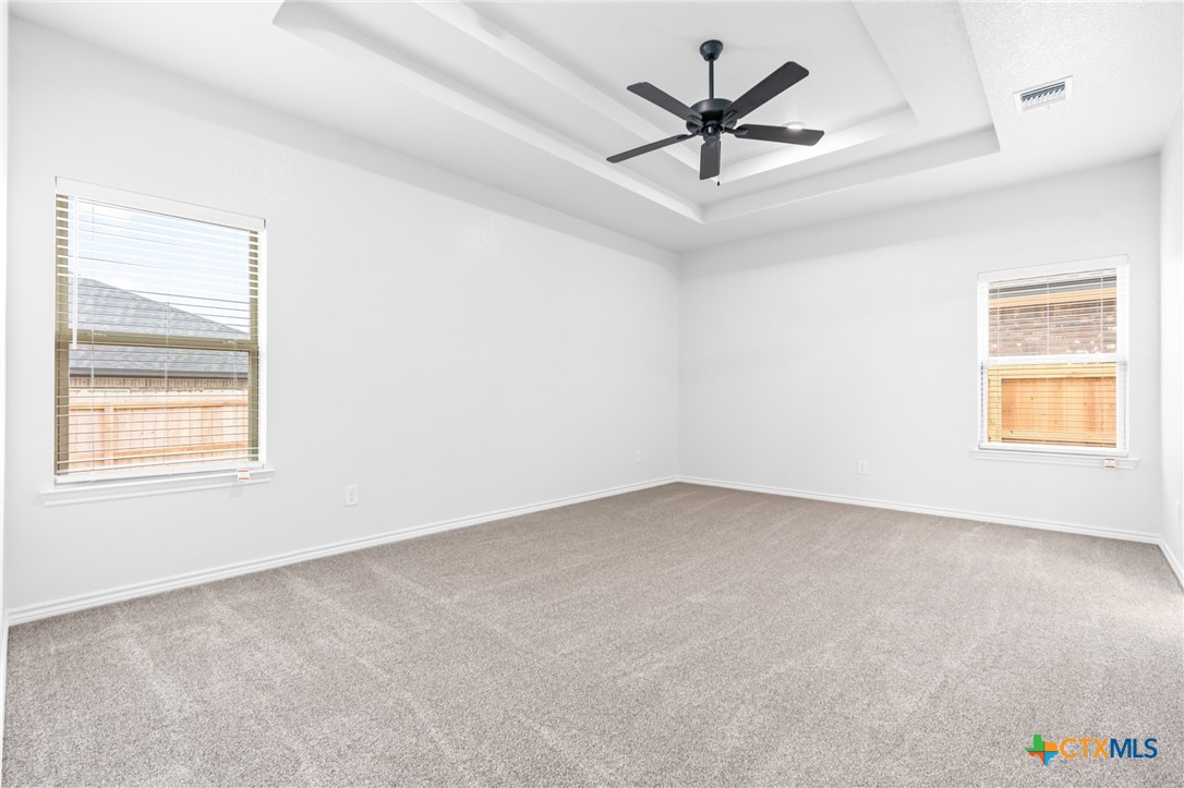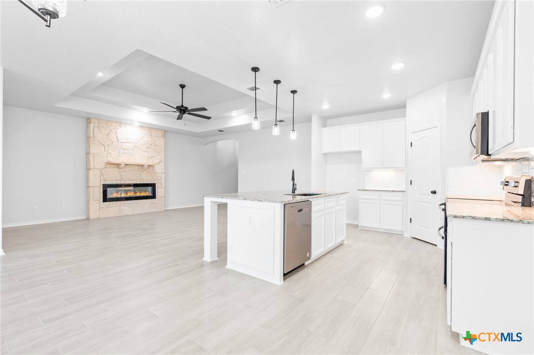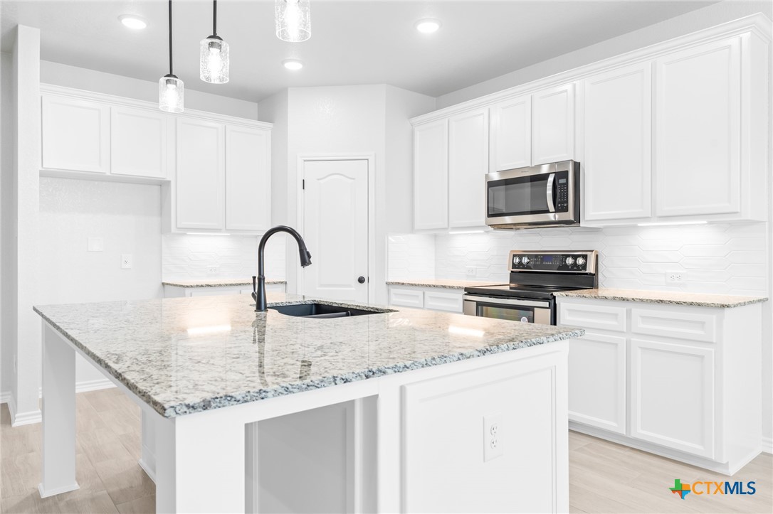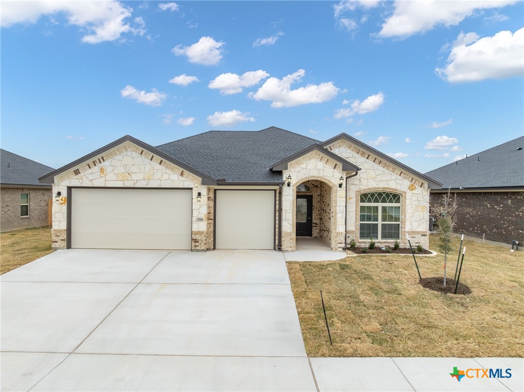 The Bellagio floorplan by Carothers Homes welcomes you home with a beautiful foyer, setting the tone for the charm that flows throughout. This spacious open layout is ideal for family gatherings, highlighted by a large living room with a beautiful fireplace. The kitchen features a large island, granite countertops, a tiled backsplash, and a walk-in pantry. The adjacent dining area rounds out the space. The primary bedroom is complemented by a generously sized private bathroom, featuring a walk-in closet, garden tub, walk-in shower, and dual vanities. The large in-law suite includes a private bath with a walk-in shower, making it the ideal space for guests. Two additional bedrooms are generously sized, providing ample space for the rest of the family. Additional features of this home, including a covered patio, privacy fence, front and back sod, and a sprinkler system, are standard with every Carothers Home.