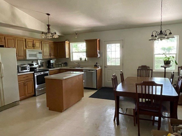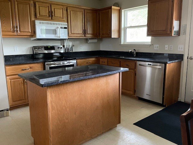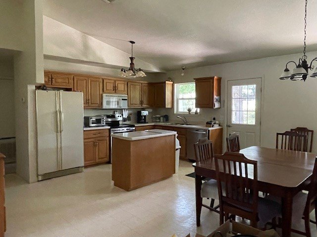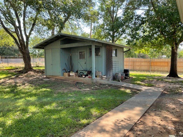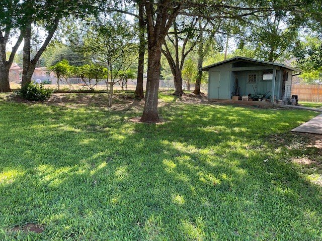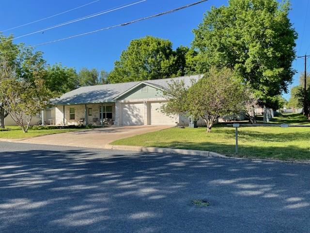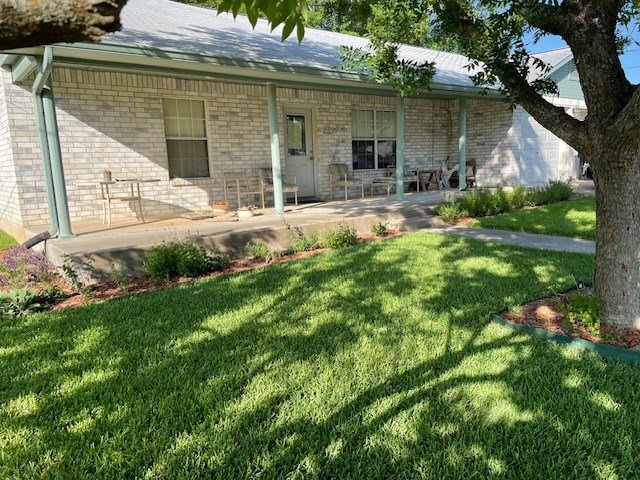 WELL ESTABLISHED FRIENDLY NEIGHBORHOOD: 3 bedroom, 2 bath house located close to all Fredericksburg amenities and surrounding Hill Country attractions . Perfect for walking, jogging, or biking to Main St. or Cross Mountain. Relax and enjoy the peacefulness of the large front covered porch shaded by a mature tree to watch the birds and butterflies. The house has large bedrooms. A cathedral ceiling in the common area provides alot of light and openness. Recent upgrades include: new kitchen granite countertops, sink, faucet and garbage disposal (2025); the roof, gutters, double pane windows, insulated garage doors, and double detection smoke alarms (2023-2024). Custom solid wood cabinets are in the kitchen, bathrooms and laundry room. The living area has wood flooring . The stainless steel range has many features including a convection oven. The stainless steel KitchenAid dishwasher is very quiet. A sprinkler system covers the entire yard. There is a large shed with a covered porch. The door to the shed is from an old farm house on Knopp School Road. The two car garage has a storage room. The laundry room is inside house . No HOA. Leaving the updating for your personal touch. Don't miss the opportunity to select this property on your viewing list. The home is in a great centrally located neighborhood. ROOM SIZES: Primary bedroom: 18 X 14; 2ndary bedroom: 15 X 12; 3rd bedroom: 13 X 11. CLOSING: FUNDING; possession 30 TO 60 DAYS