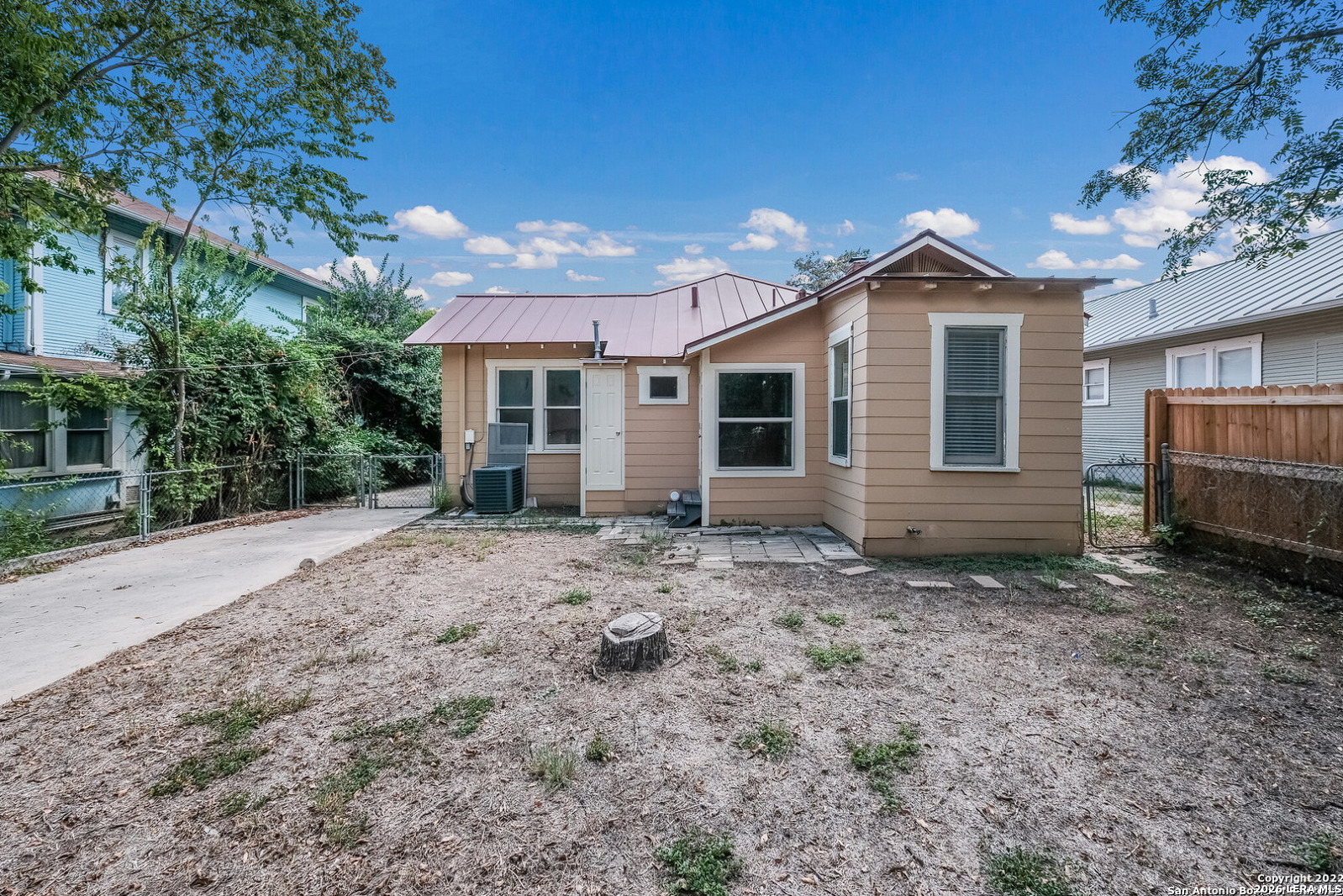 Charming 2 BR/1.5 bathroom cottage in Tobin Hill. Features include a bright open floor plan, metal roof, high ceilings, & original hardwood floors in the living room and bedrooms. Ceramic tile in the kitchen and wet areas. Eat-in kitchen features butcher-block counters, a breakfast bar, and updated cabinets-owner to provide a refrigerator, washer, & dryer if needed. Master bedroom has a private half bath and outside access. Private backyard with mature trees and an extra-large storage shed. Extended driveway offers plenty of room for parking. Located just minutes from The Pearl, St. Mary's strip, SAC, Trinity University, Incarnate Word, & Downtown SA. Easy access to I-35 and Hwy 281, & a 15-minute drive to San Antonio International Airport