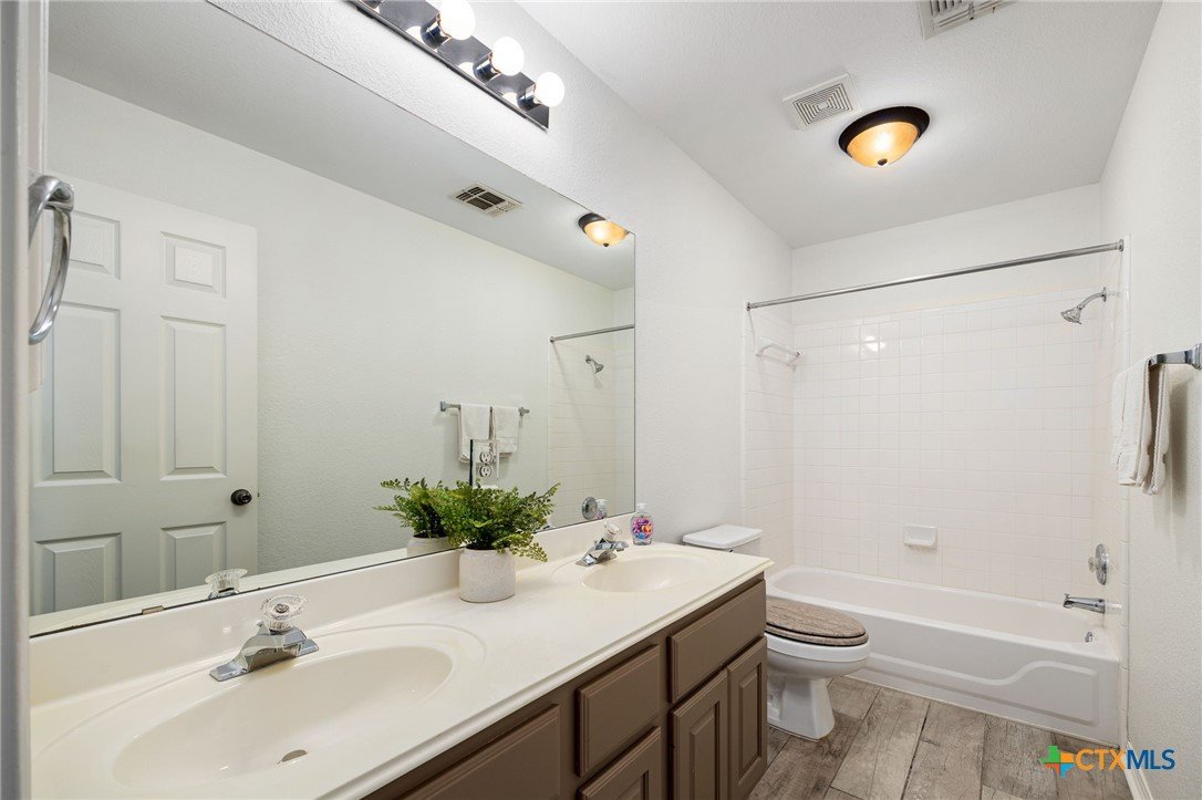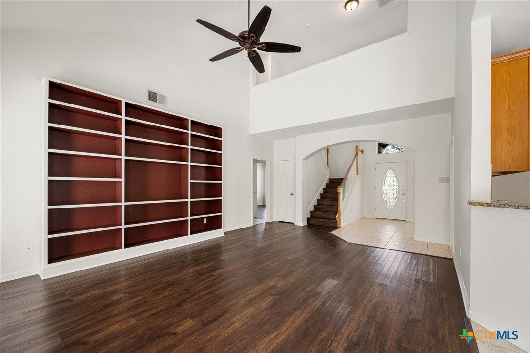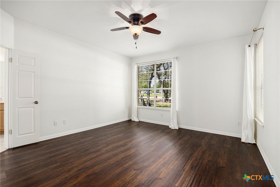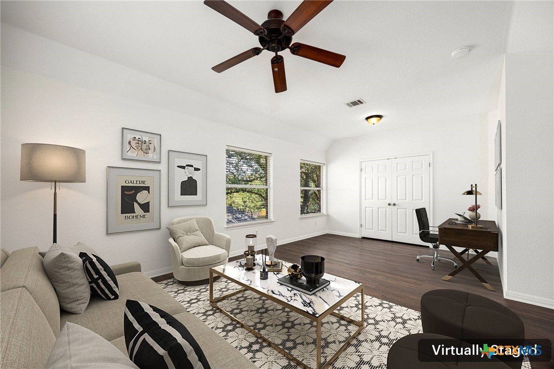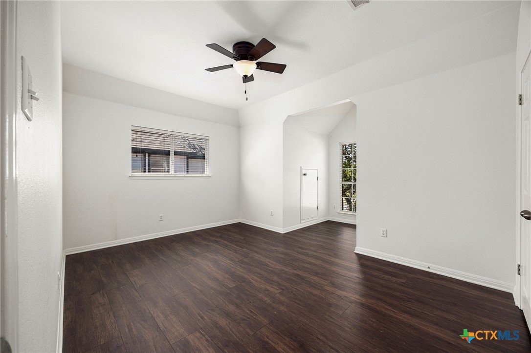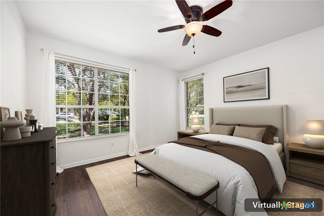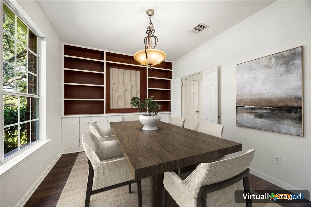 This custom-built Tudor-style home blends timeless character with modern comfort, set among mature trees in a serene neighborhood with sidewalks ideal for walking or biking. The home’s inviting curb appeal continues inside, where soaring ceilings and abundant natural light enhance the open layout. The updated kitchen flows seamlessly into the living area with its vaulted ceiling and cozy gas log fireplace, creating a warm gathering space. The primary suite is conveniently located on the main level, offering privacy and ease of living. Upstairs, a spacious game room with a closet offers the flexibility to be converted into a fourth bedroom if desired. With generously sized rooms throughout, the home balances elegance with functionality. Recent updates include a new roof (2024), new heat and AC system (2024), and new flooring, ensuring peace of mind for years to come. Outside, the lush, landscaped lot features a level backyard with plenty of space for play and relaxation, while a 2-car garage tucked away on a private alley adds both convenience and charm. Nestled within an amenity-rich community, residents enjoy access to a pool, gym, and highly desirable schools, along with nearby shopping and dining. Meticulously maintained and thoughtfully designed, this home offers the perfect combination of comfort, flexibility, and location.