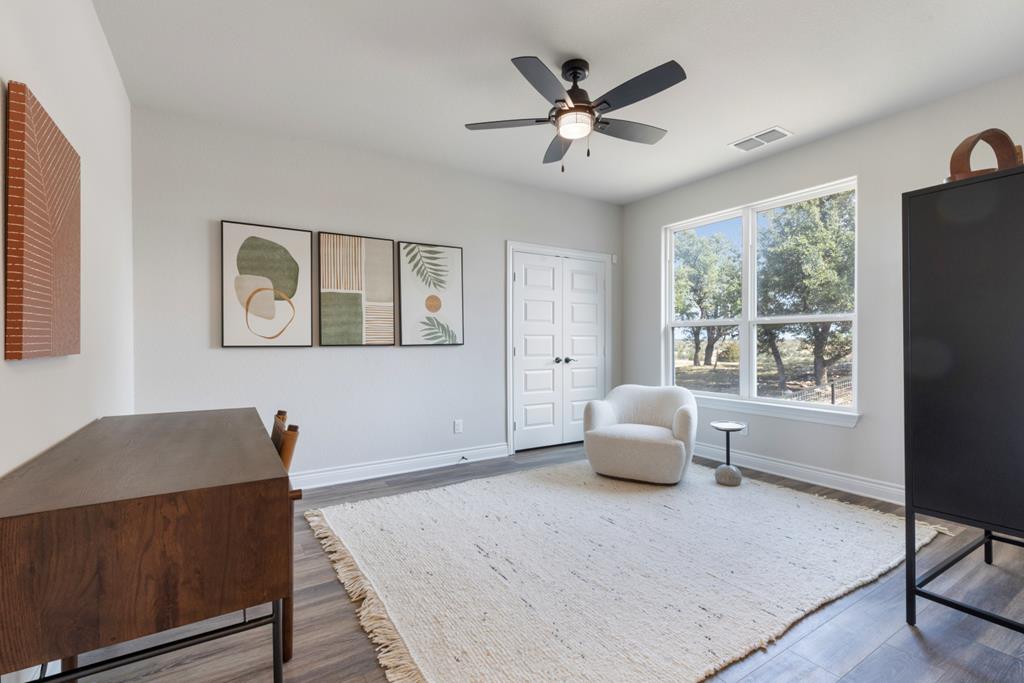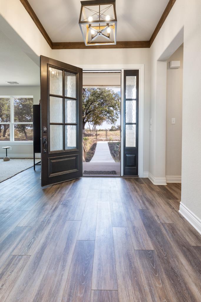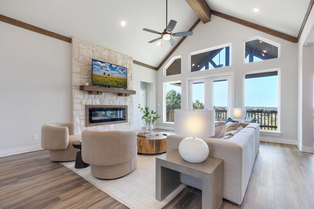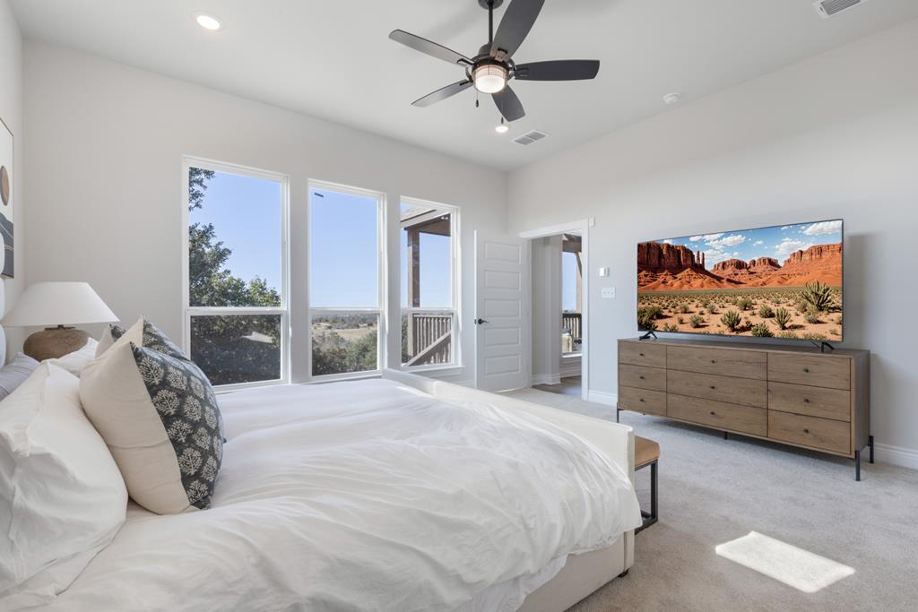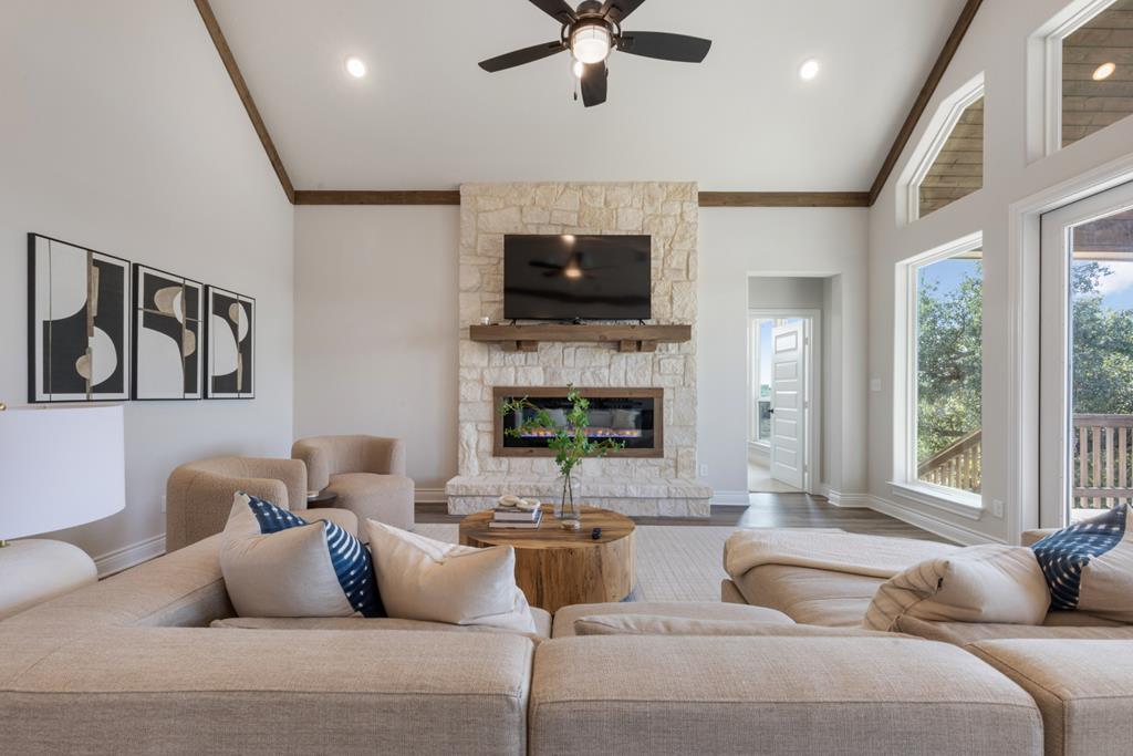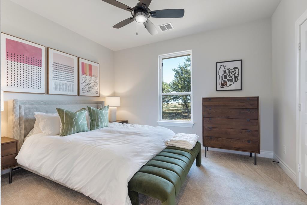 Welcome to the "Crooked Tree Hideaway" with FABULOUS VIEWS!!!! Enjoy the newly constructed custom home on 3.0 acres in a Gated Community minutes from downtown Fredericksburg. Enjoy the peace and quiet that the Texas Hill Country has to offer with wine tasting, shopping and first class dining. This Beautiful Home features 3 bedrooms 2 baths and 1/2 bath. A perfect floor plan with vaulted ceilings, large picture windows to take in the views of the Hill Country. The open concept allows a perfect place for entertaining and relaxing. The large primary ensuite offers a spa like setting with double vanity, large soaking tub, glass enclosed shower and walk-in closets. Quartz countertops in baths and kitchen add elegance to this prestigious home. A bonus room upstairs can be used as an office, game room or additional living space. Enjoy the back porch with far off views that will take your breath away.