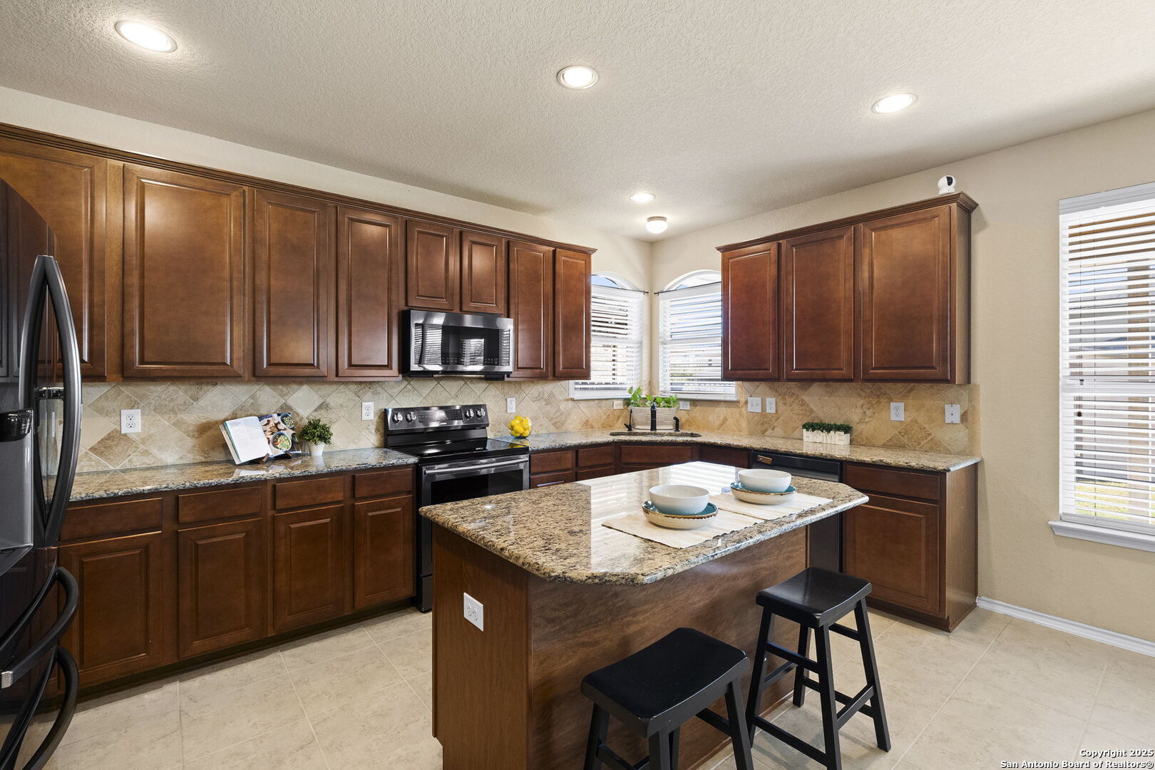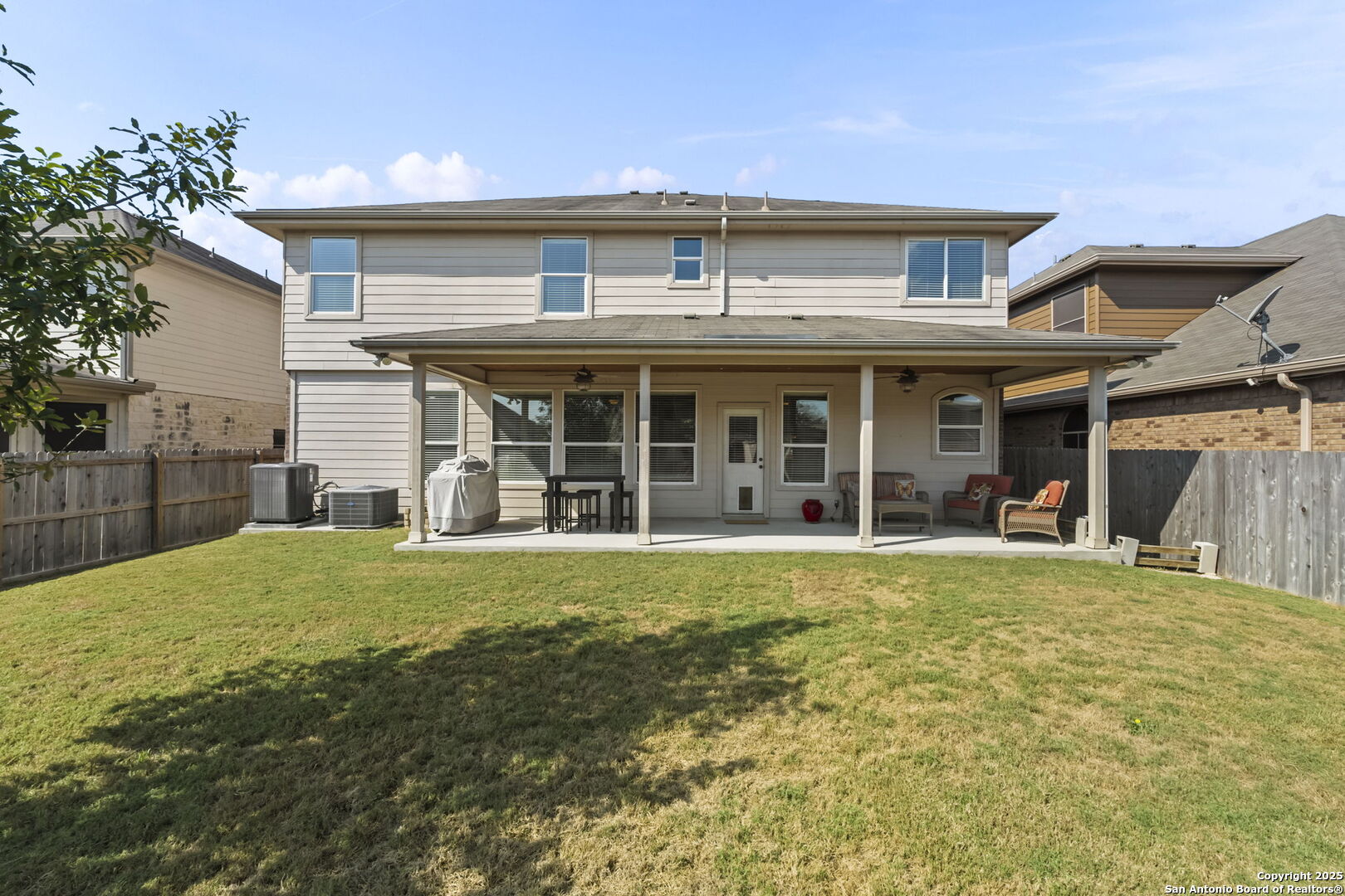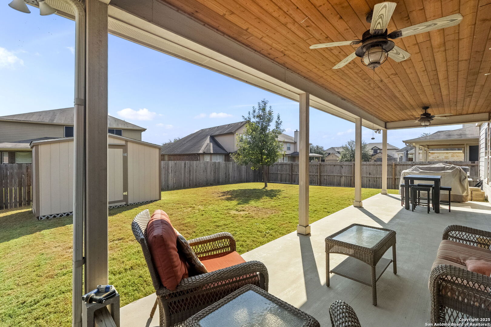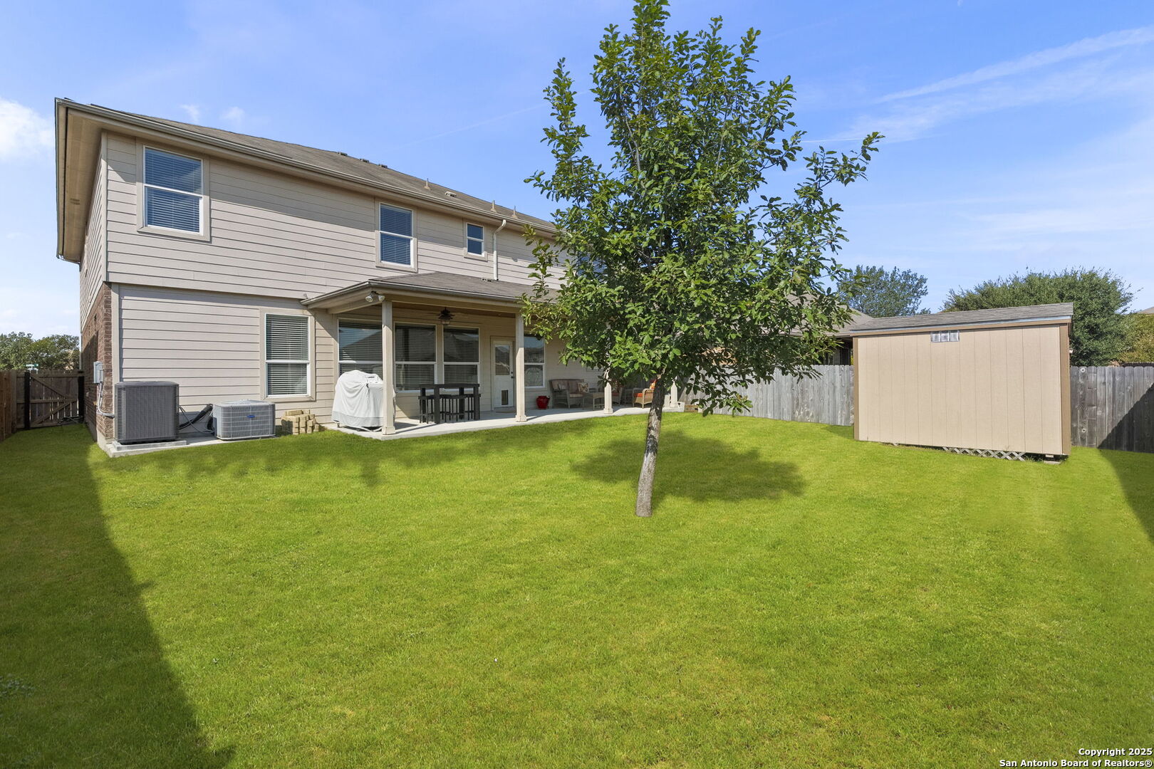 Charm and convenience meet in this beautiful two-story home, offering an open layout designed for both comfort and functionality. The entry reveals a formal dining room and a front living area, perfect for entertaining or flexible use. Flowing into the heart of the home, the kitchen features a center island, stainless steel appliances, a window over the sink, and ample cabinetry for storage. The house has a huge pantry and a coffee bar area, ideal for making the perfect drink. A breakfast nook and seamless connection to the main living room create a space that's bright, welcoming, and perfect for everyday living. Upstairs, a versatile loft provides additional living space for work, play, or relaxation. The spacious primary suite includes a private en suite bathroom with modern finishes, while the secondary bedrooms offer comfort and plenty of room to spread out. Outdoors, the large backyard is ideal for gatherings, with a covered patio and storage shed adding both convenience and charm. Mature curb appeal enhances the property, making it stand out from the moment you arrive. Located near H-E-B, Walmart, Randolph AFB, and with quick access to I-35 and Loop 1604, this home puts shopping, dining, and major roadways within easy reach. This property combines space, style, and location-making it an excellent choice for those seeking a well-maintained home in the thriving northeast San Antonio area.