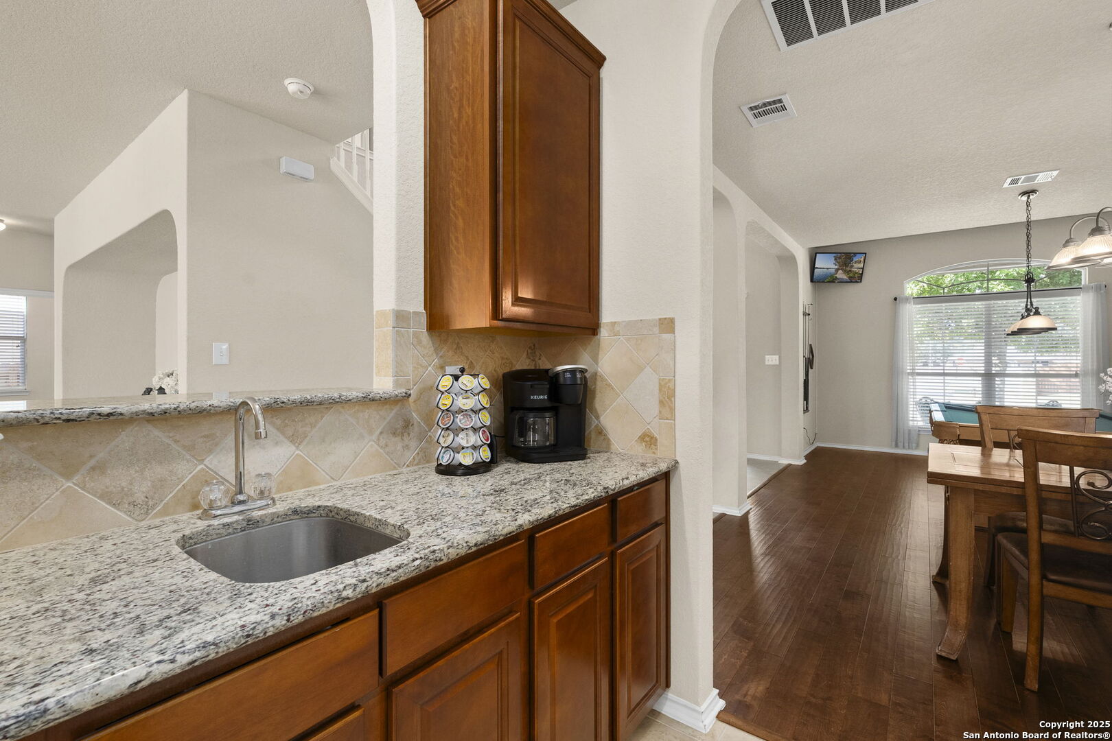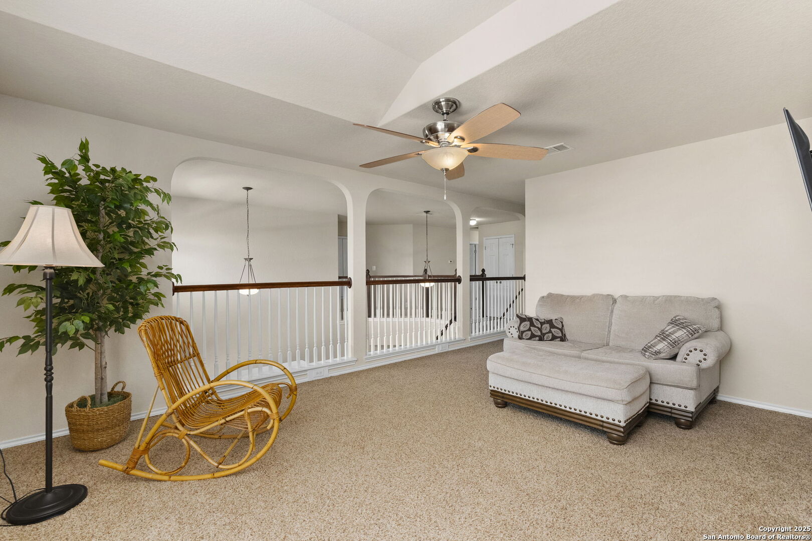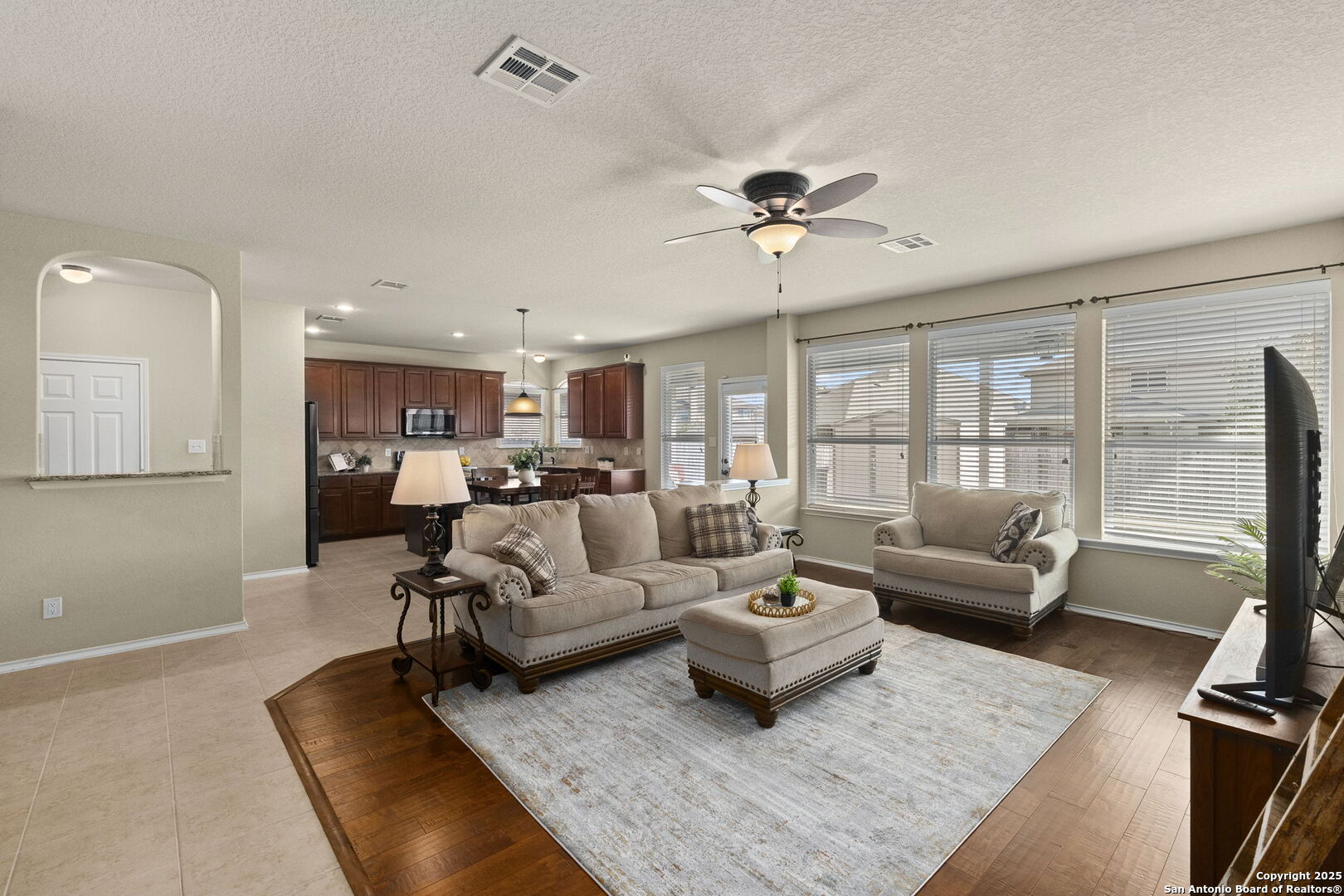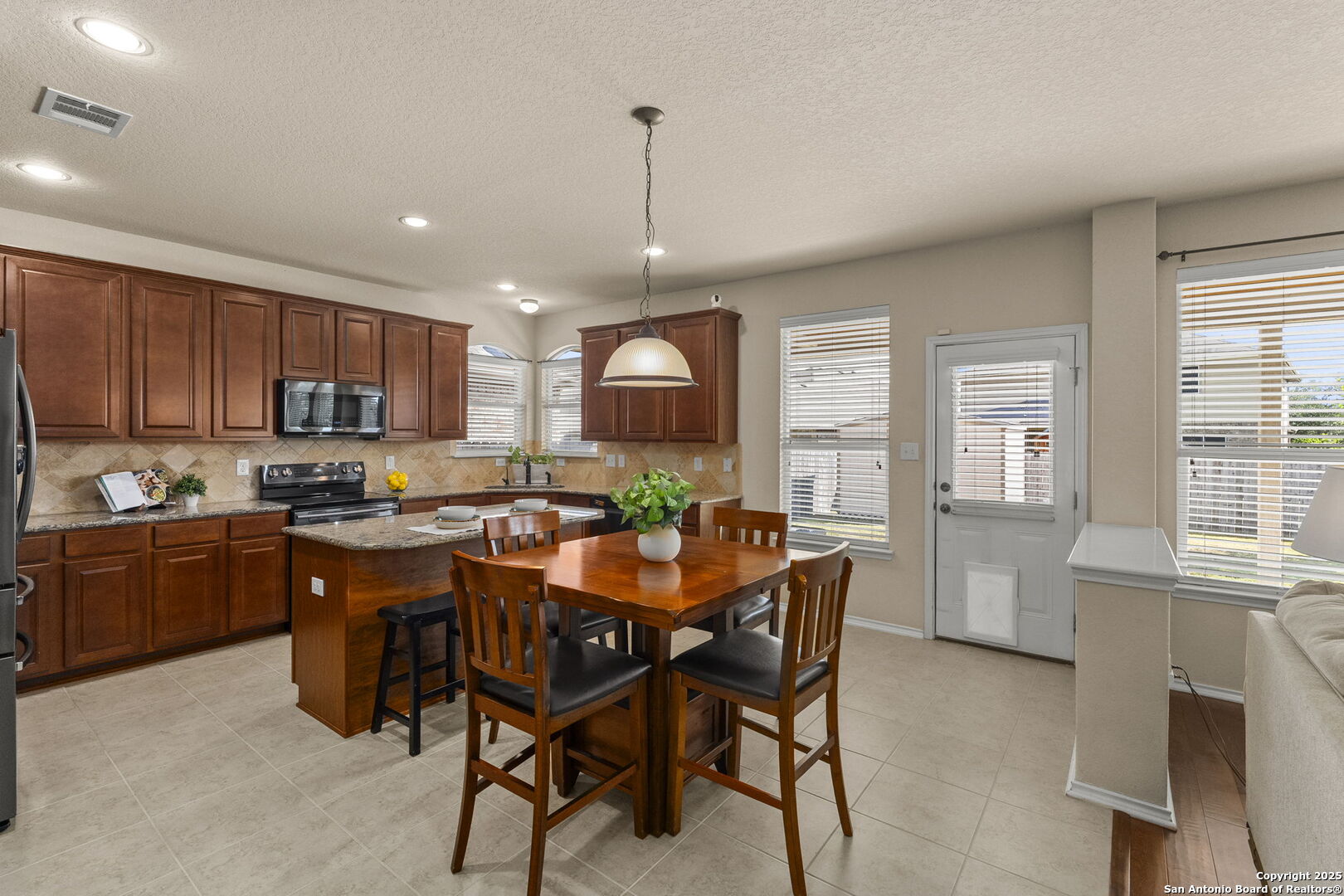 Charm and convenience meet in this beautiful two-story home, offering an open layout designed for both comfort and functionality. The entry reveals a formal dining room and a front living area, perfect for entertaining or flexible use. Flowing into the heart of the home, the kitchen features a center island, stainless steel appliances, a window over the sink, and ample cabinetry for storage. The house has a huge pantry and a coffee bar area, ideal for making the perfect drink. A breakfast nook and seamless connection to the main living room create a space that's bright, welcoming, and perfect for everyday living. Upstairs, a versatile loft provides additional living space for work, play, or relaxation. The spacious primary suite includes a private en suite bathroom with modern finishes, while the secondary bedrooms offer comfort and plenty of room to spread out. Outdoors, the large backyard is ideal for gatherings, with a covered patio and storage shed adding both convenience and charm. Mature curb appeal enhances the property, making it stand out from the moment you arrive. Located near H-E-B, Walmart, Randolph AFB, and with quick access to I-35 and Loop 1604, this home puts shopping, dining, and major roadways within easy reach. This property combines space, style, and location-making it an excellent choice for those seeking a well-maintained home in the thriving northeast San Antonio area.
