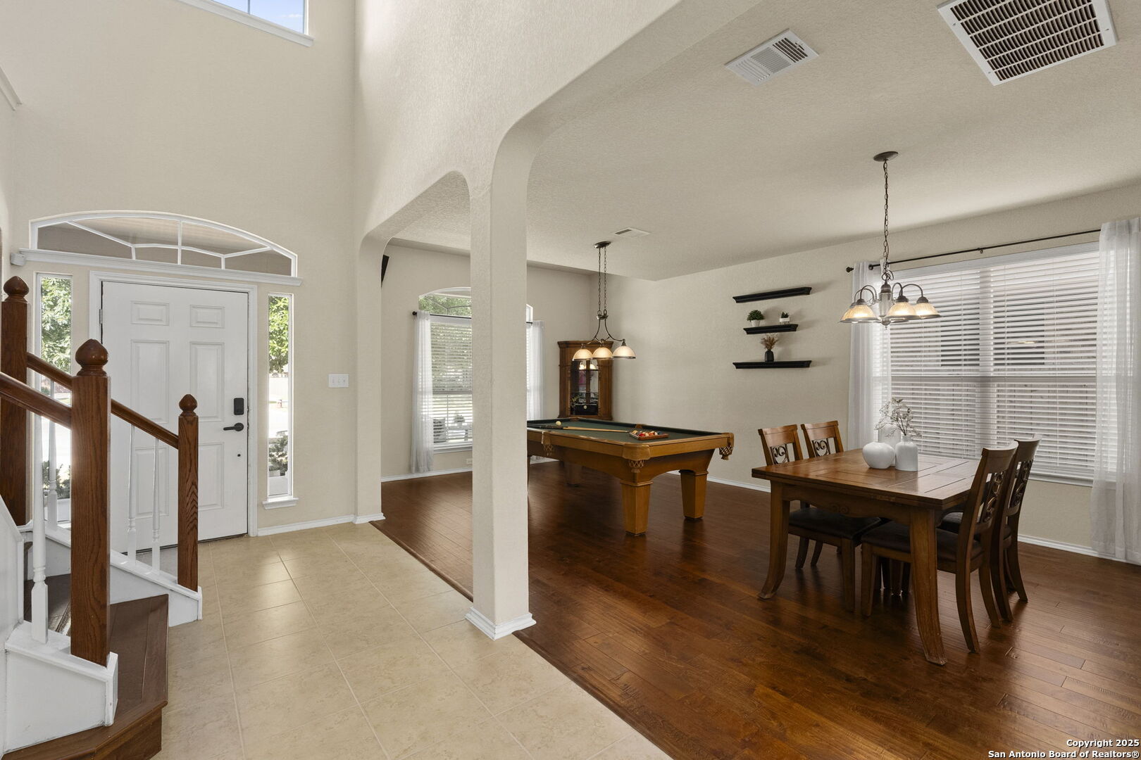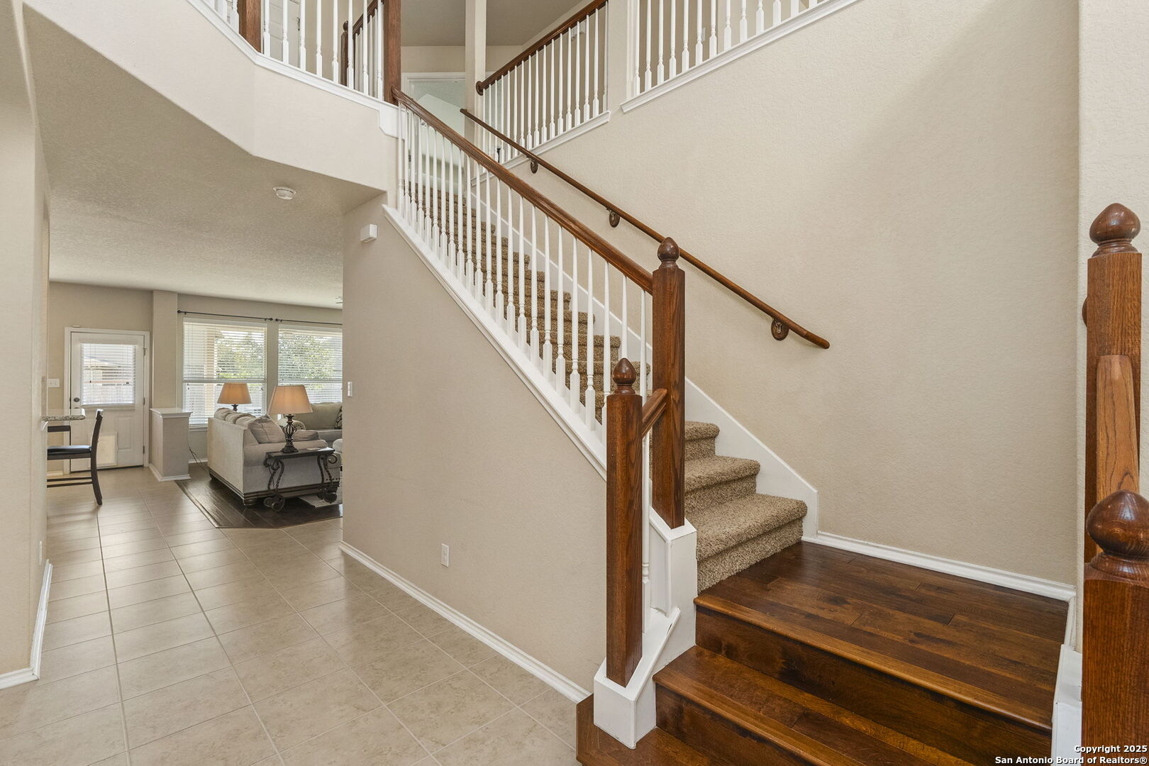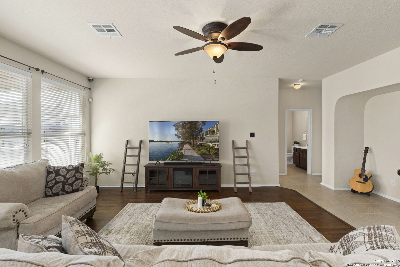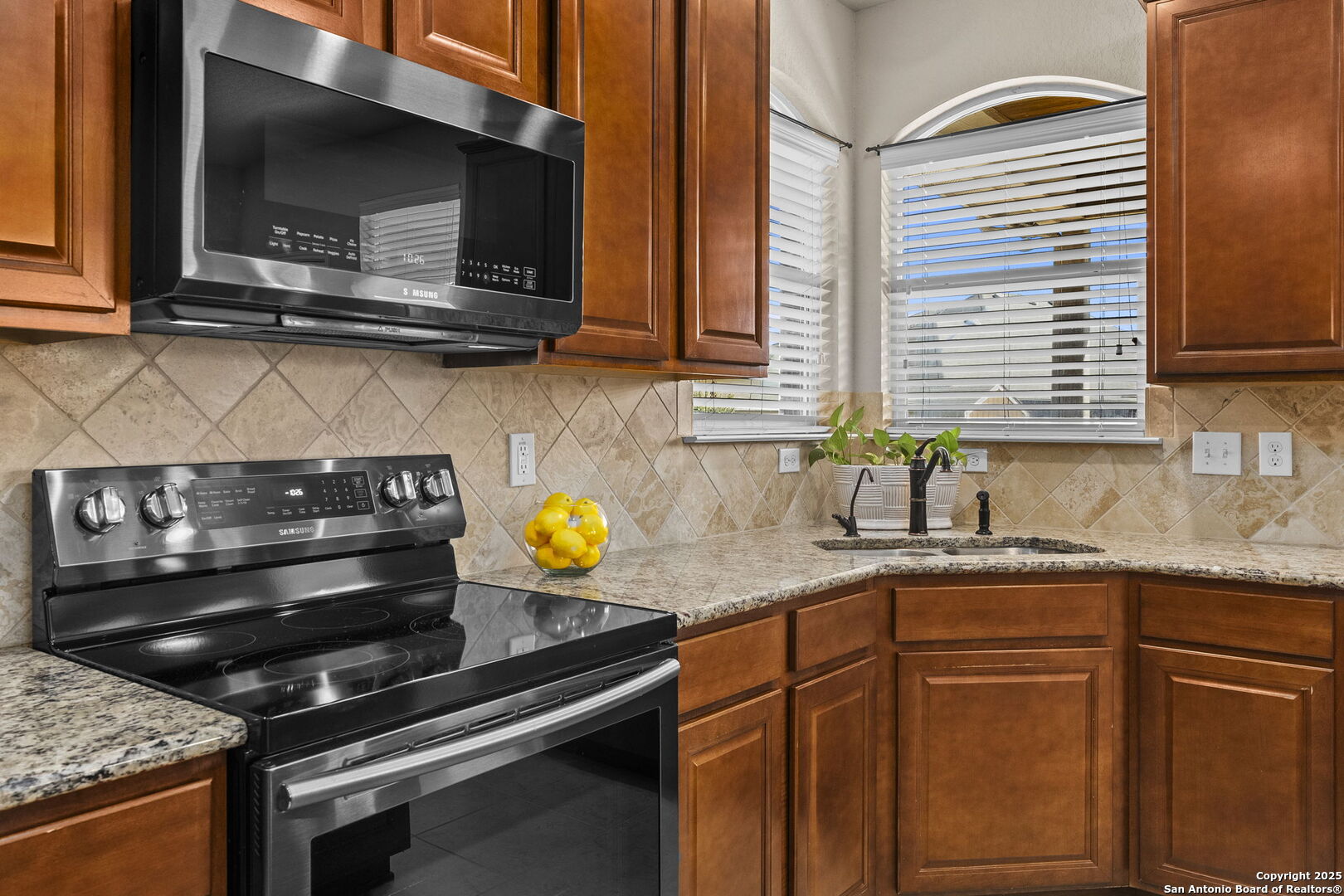 Charm and convenience meet in this beautiful two-story home, offering an open layout designed for both comfort and functionality. The entry reveals a formal dining room and a front living area, perfect for entertaining or flexible use. Flowing into the heart of the home, the kitchen features a center island, stainless steel appliances, a window over the sink, and ample cabinetry for storage. The house has a huge pantry and a coffee bar area, ideal for making the perfect drink. A breakfast nook and seamless connection to the main living room create a space that's bright, welcoming, and perfect for everyday living. Upstairs, a versatile loft provides additional living space for work, play, or relaxation. The spacious primary suite includes a private en suite bathroom with modern finishes, while the secondary bedrooms offer comfort and plenty of room to spread out. Outdoors, the large backyard is ideal for gatherings, with a covered patio and storage shed adding both convenience and charm. Mature curb appeal enhances the property, making it stand out from the moment you arrive. Located near H-E-B, Walmart, Randolph AFB, and with quick access to I-35 and Loop 1604, this home puts shopping, dining, and major roadways within easy reach. This property combines space, style, and location-making it an excellent choice for those seeking a well-maintained home in the thriving northeast San Antonio area.