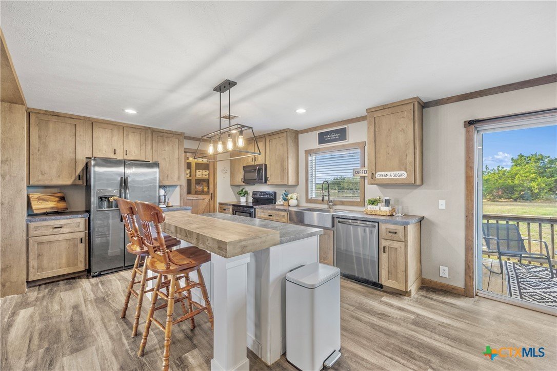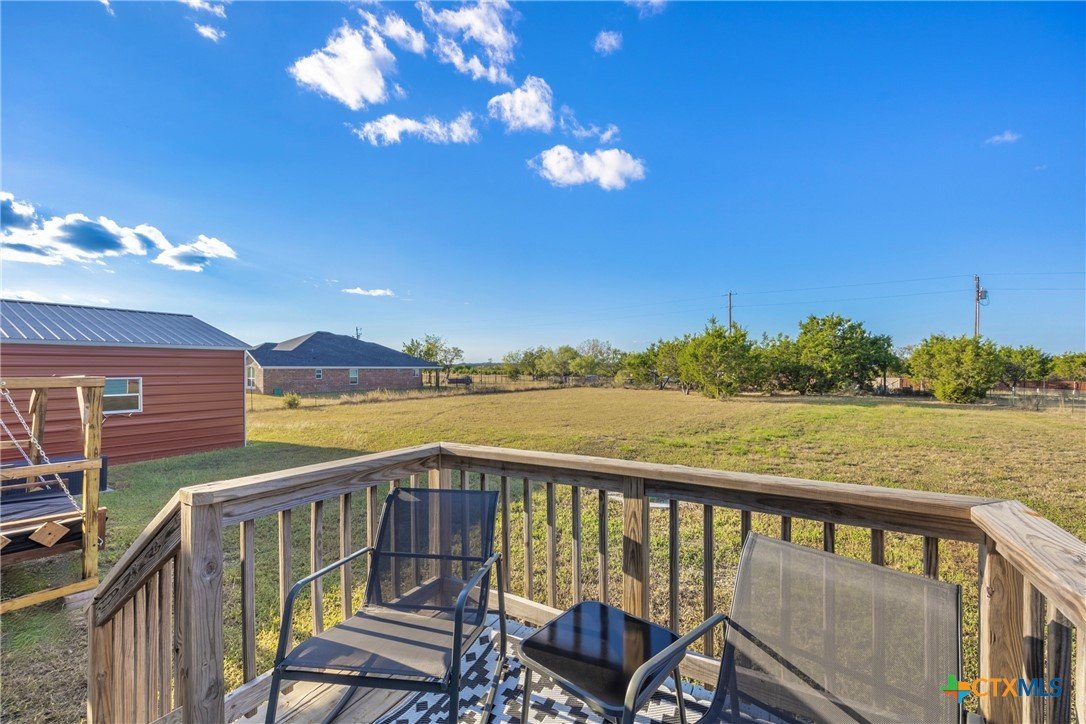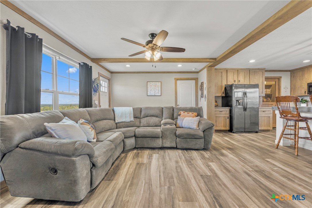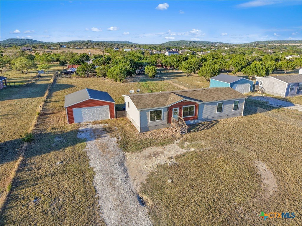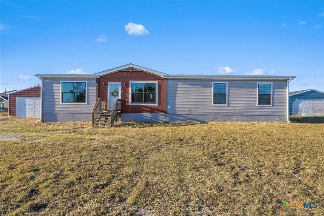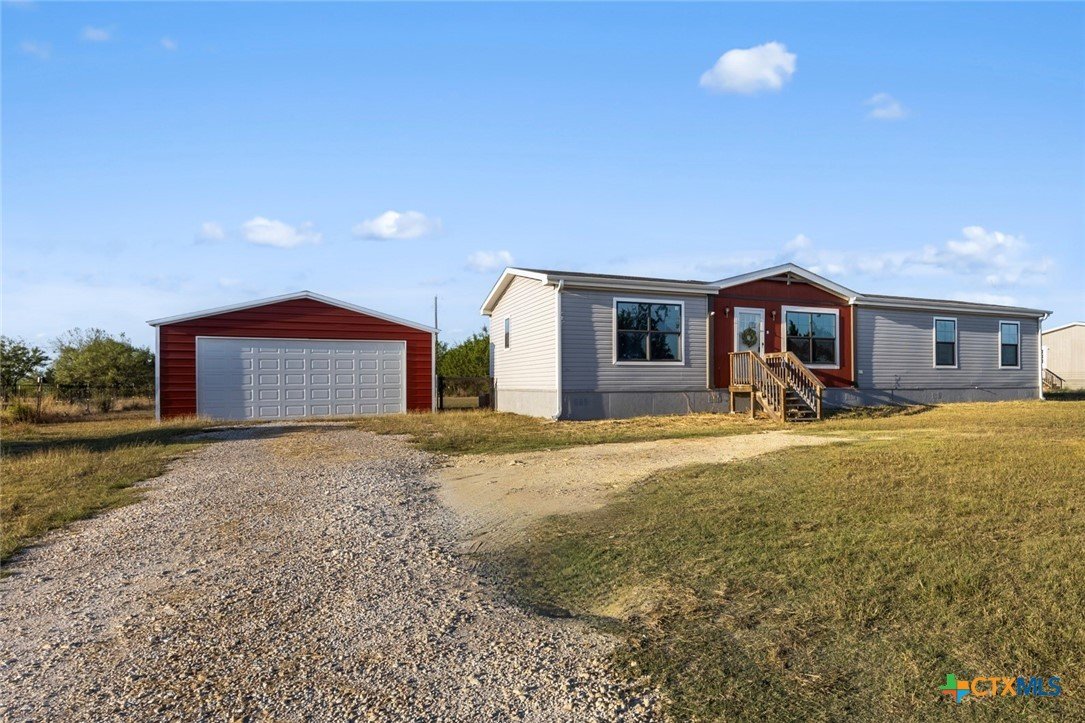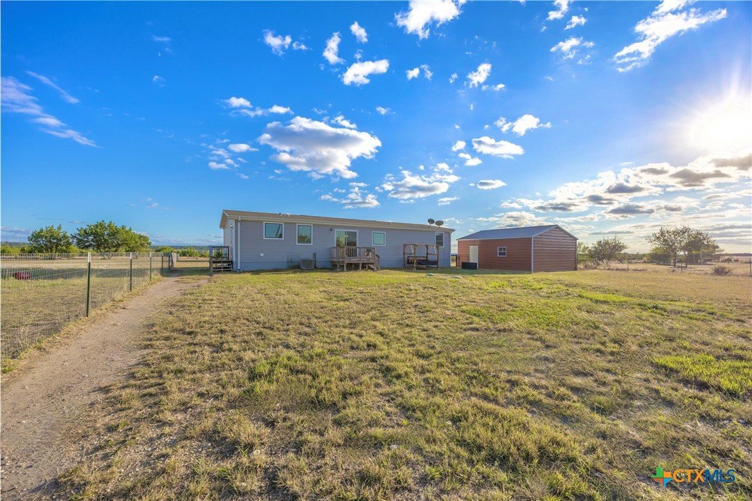 Beautifully crafted farmhouse-style Clayton Home built in 2020, situated on a 1-acre fenced lot in the scenic countryside of Kempner, Texas. Looking to finance with a VA loan? Seller states the home was permanently secured and inspected in accordance with VA loan requirements for prior VA approval at time of purchase. Inside, you’ll find an inviting open floor plan with a spacious living area, shiplap accent wall, and wood vinyl flooring throughout. The kitchen features modern stained shaker cabinetry and a stainless apron-front sink. The home includes three bedrooms with ceiling fans, an oversized laundry room, and a large mud area with ample storage. Step outside to enjoy a back deck and a detached two-car garage with automatic doors—the perfect blend of country comfort and modern living.