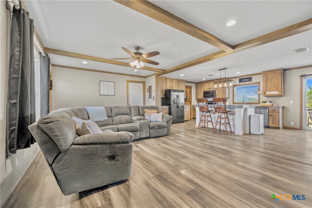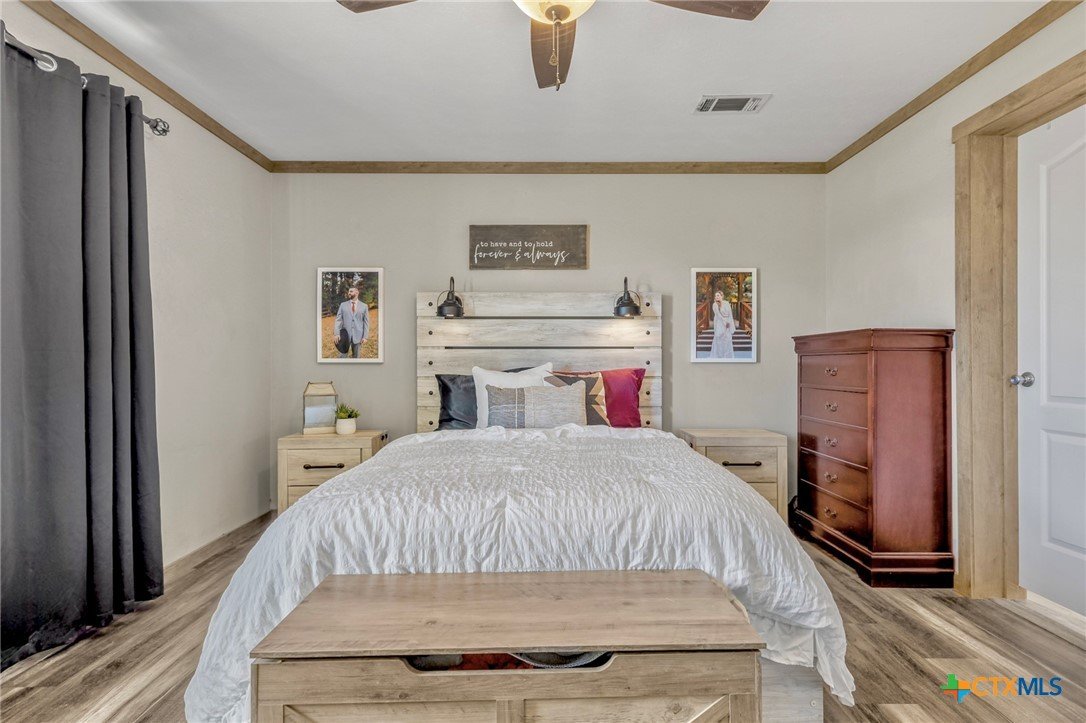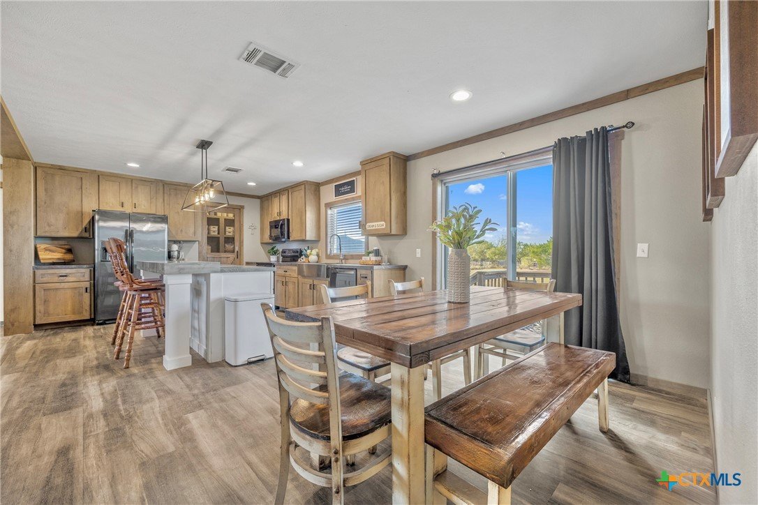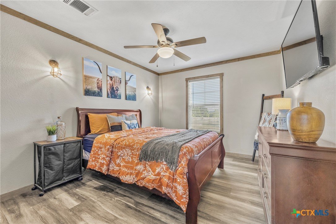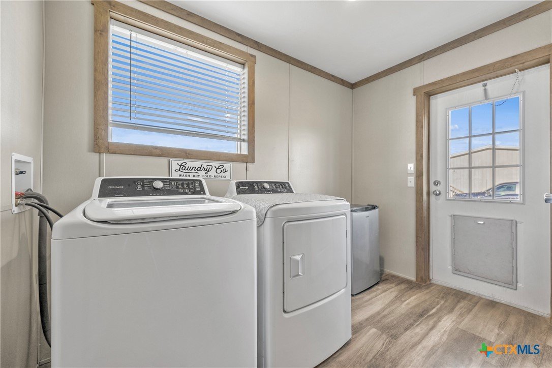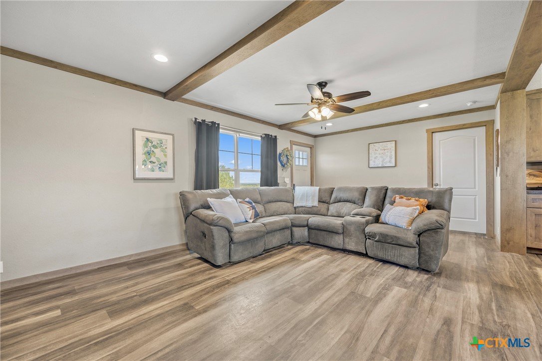 Beautifully crafted farmhouse-style Clayton Home built in 2020, situated on a 1-acre fenced lot in the scenic countryside of Kempner, Texas. Looking to finance with a VA loan? Seller states the home was permanently secured and inspected in accordance with VA loan requirements for prior VA approval at time of purchase. Inside, you’ll find an inviting open floor plan with a spacious living area, shiplap accent wall, and wood vinyl flooring throughout. The kitchen features modern stained shaker cabinetry and a stainless apron-front sink. The home includes three bedrooms with ceiling fans, an oversized laundry room, and a large mud area with ample storage. Step outside to enjoy a back deck and a detached two-car garage with automatic doors—the perfect blend of country comfort and modern living.
