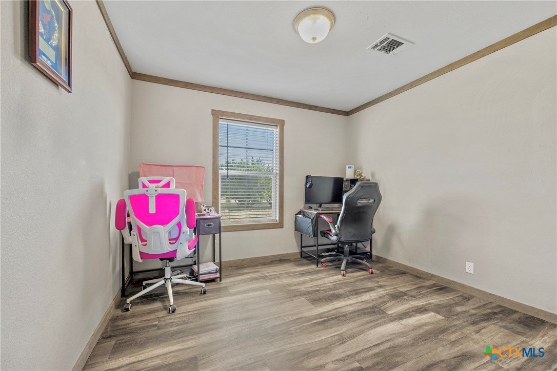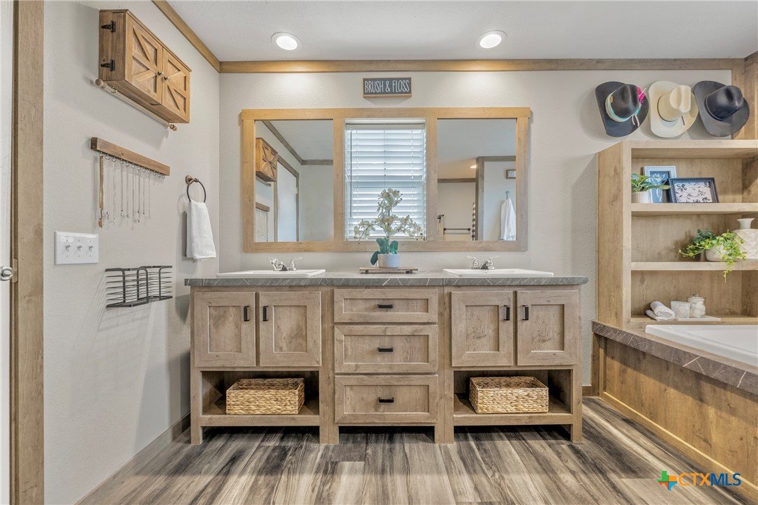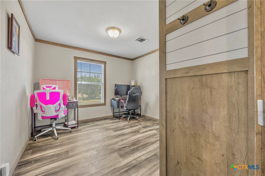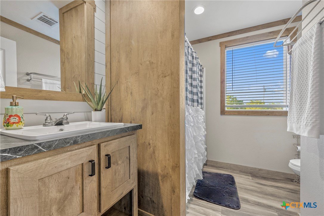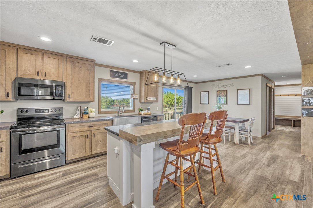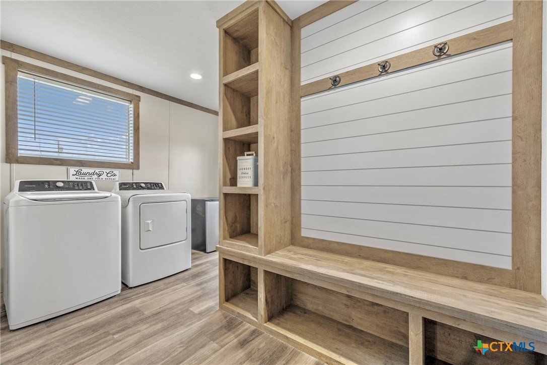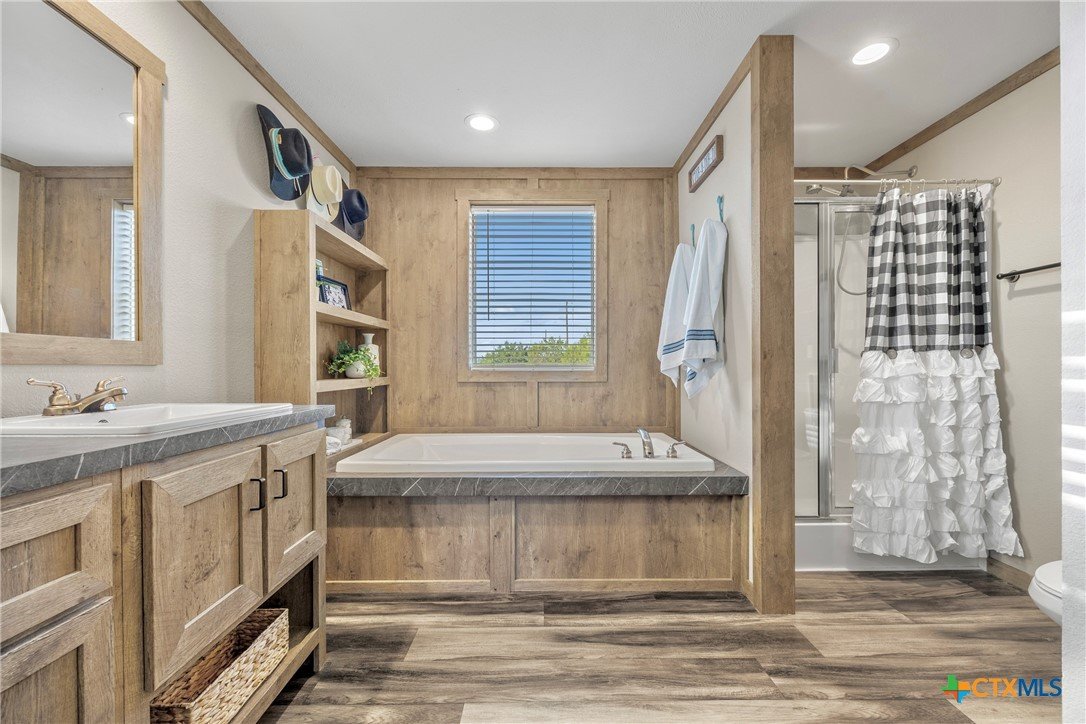Beautifully crafted farmhouse-style Clayton Home built in 2020, situated on a 1-acre fenced lot in the scenic countryside of Kempner, Texas. Looking to finance with a VA loan? Seller states the home was permanently secured and inspected in accordance with VA loan requirements for prior VA approval at time of purchase. Inside, you’ll find an inviting open floor plan with a spacious living area, shiplap accent wall, and wood vinyl flooring throughout. The kitchen features modern stained shaker cabinetry and a stainless apron-front sink. The home includes three bedrooms with ceiling fans, an oversized laundry room, and a large mud area with ample storage. Step outside to enjoy a back deck and a detached two-car garage with automatic doors—the perfect blend of country comfort and modern living.