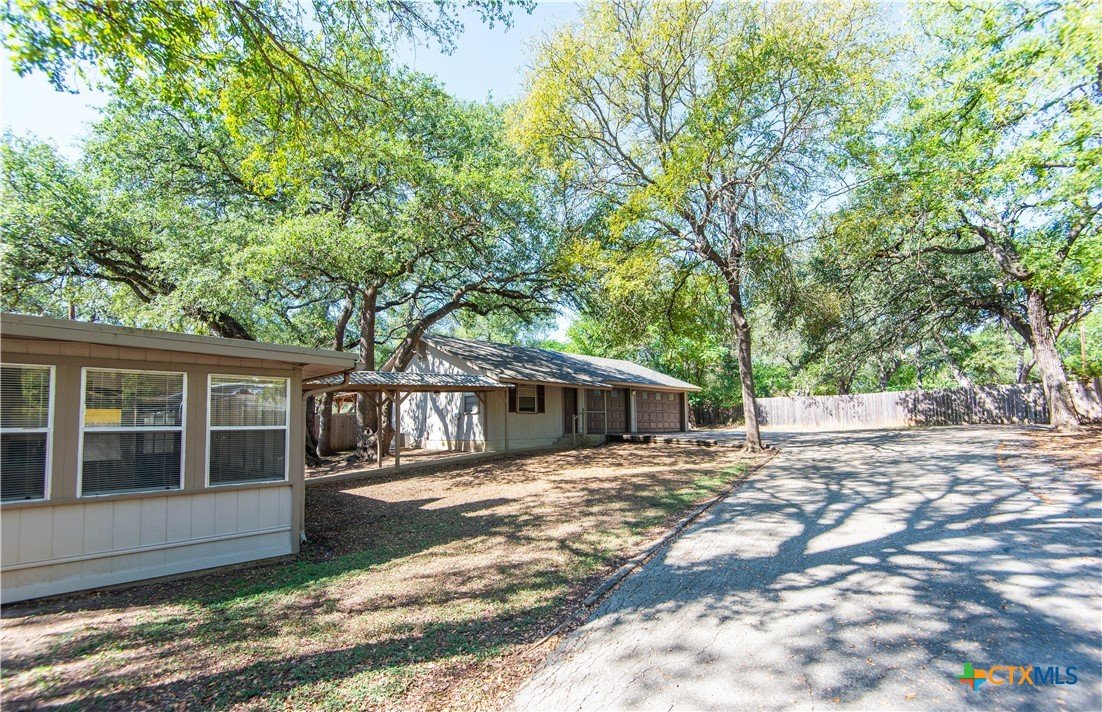 Lake Area property that is a must see to appreciate. This charming home has 2 large bedrooms plus loft, 2.5-bath. The property offers an oversized 3-car detached garage with a separate 1-bedroom, 1-bath suite and office. Surrounded by beautiful mature trees. Relax and enjoy the spacious sunroom, perfect for enjoying peaceful outdoor views. Plenty of outdoor parking with the rear entry garage and the circle front drive. The community pool, park, playground is conveniently located with a boat ramp for easy access to Lake Belton.