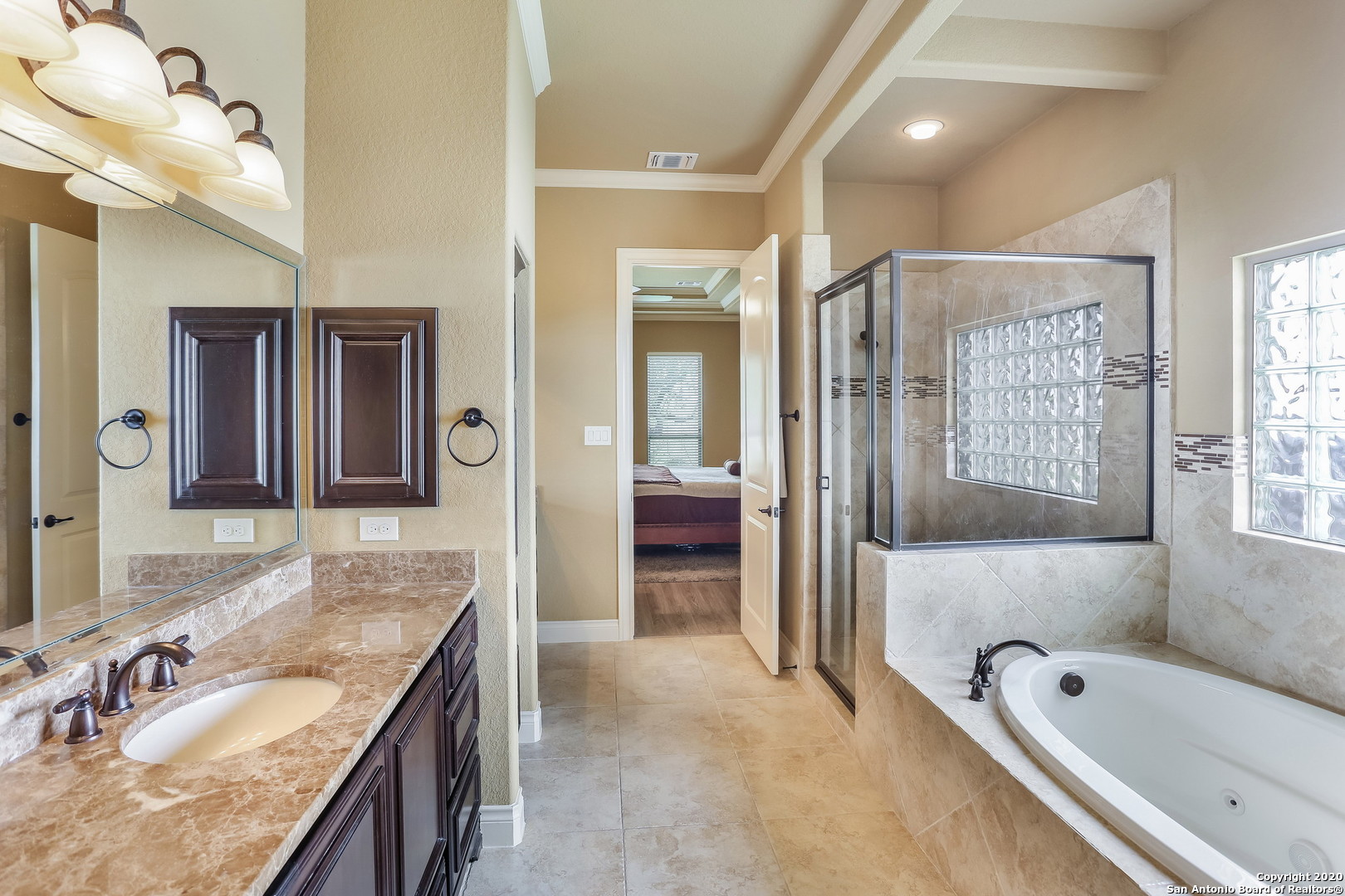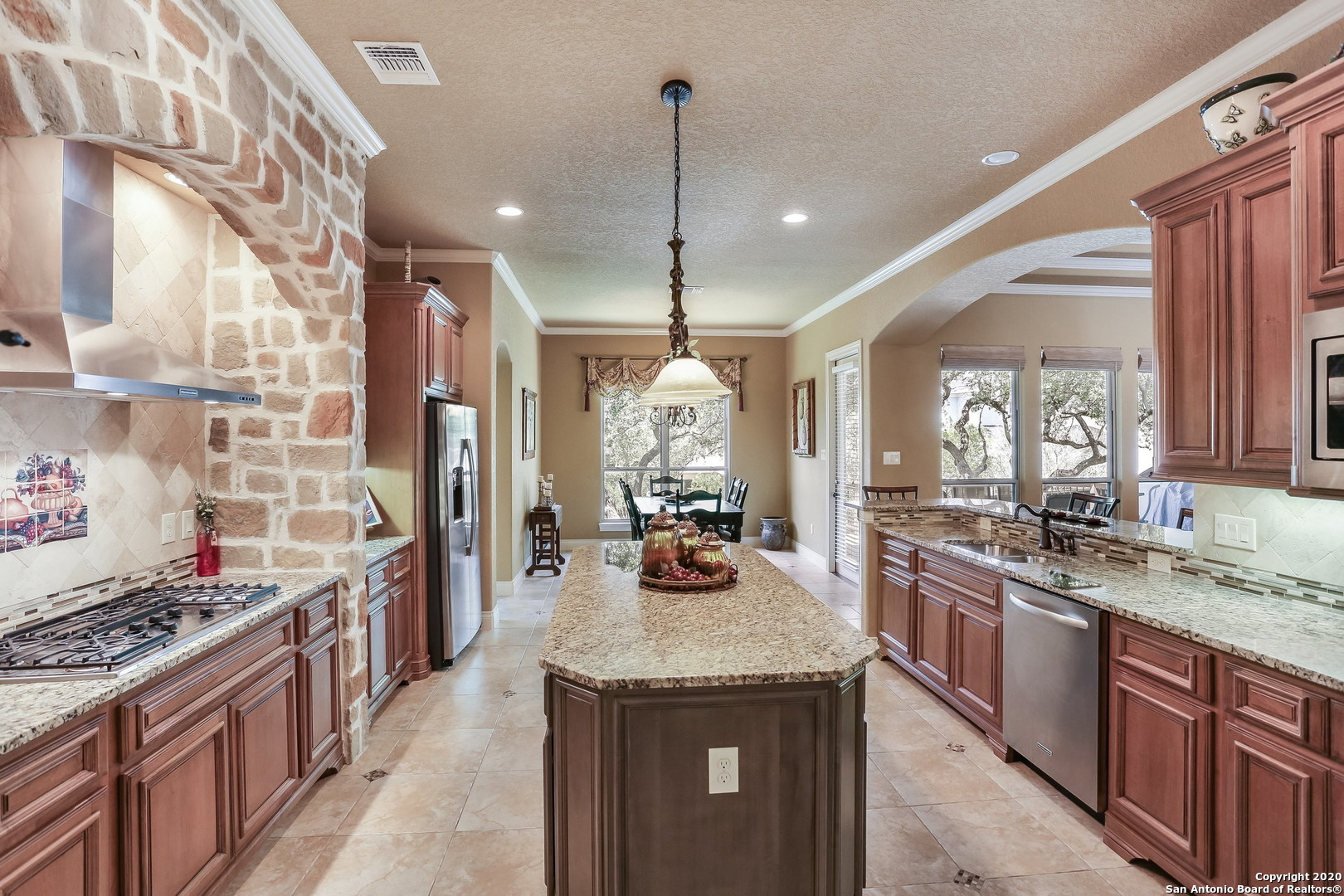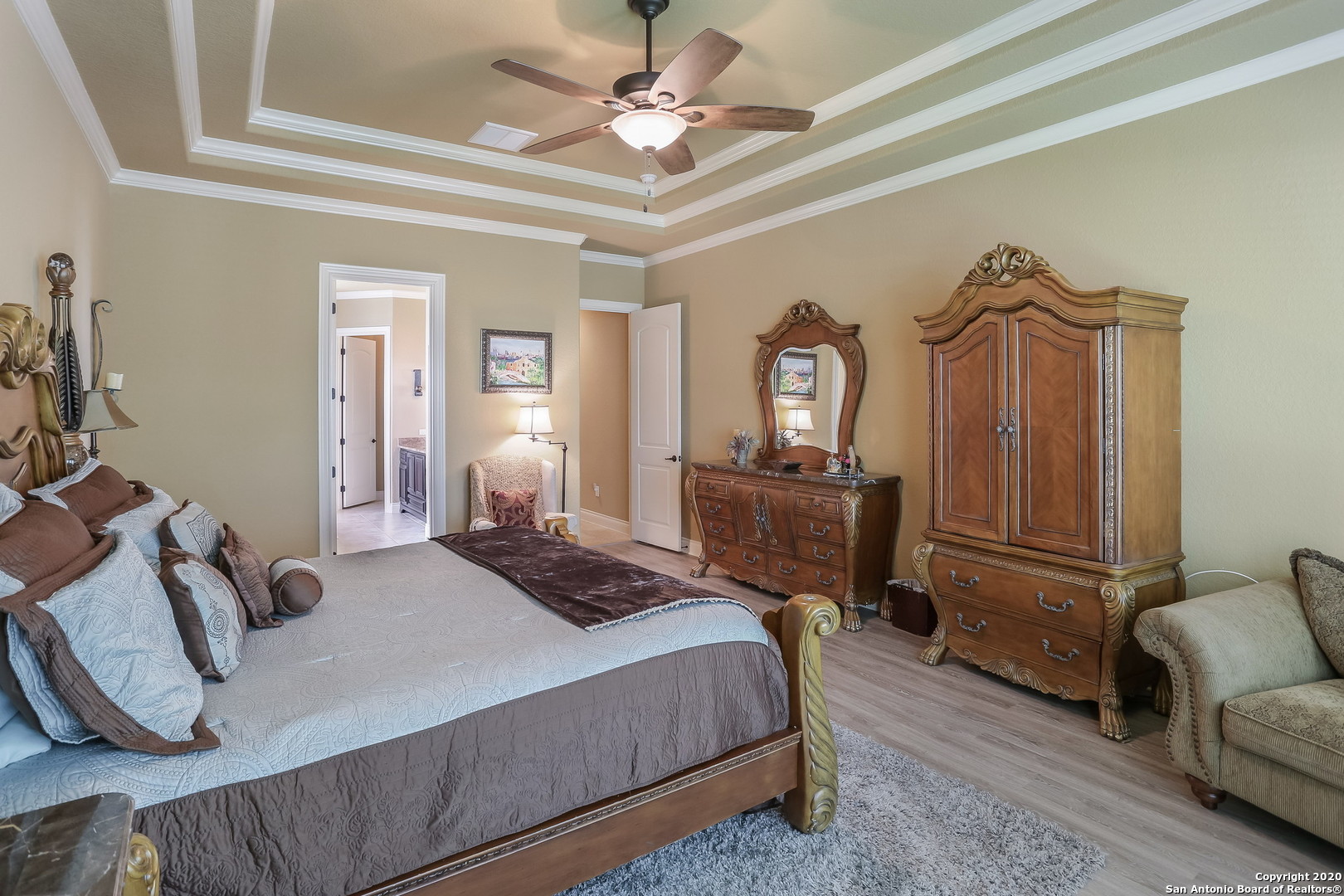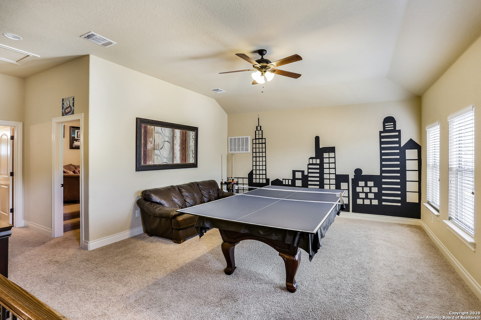 BEAUTIFUL WELL MAINTAINED AND CLEAN 1 Story plus 1/2 story with Game Room and Media Room or(which could make a beautiful additional Guest Suite) + Bath upstairs in desirable Mesas At Canyon Springs! Open Floor Plan Decorative Crown Molding and Beautiful Ceilings Through out. 4 Bd +4 1/2 baths +Study +Game Room+ Media 3766 sq ft of Elegance and Entertainers Dream+ Gourmet Kitchen+ No West Sun on the keeping you comfortable and able to enjoy the amazing Texas Weather. Room for a pool and Grassy area for kids or Grand kids or Pets too. Must See!