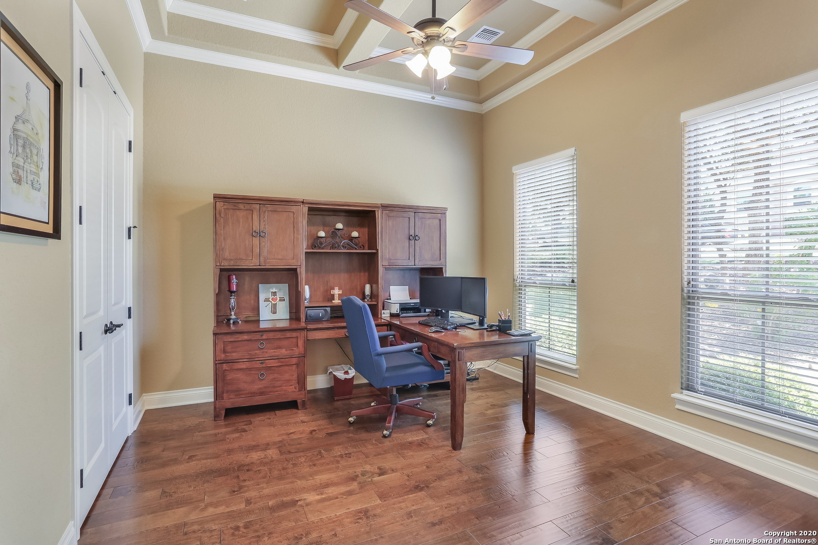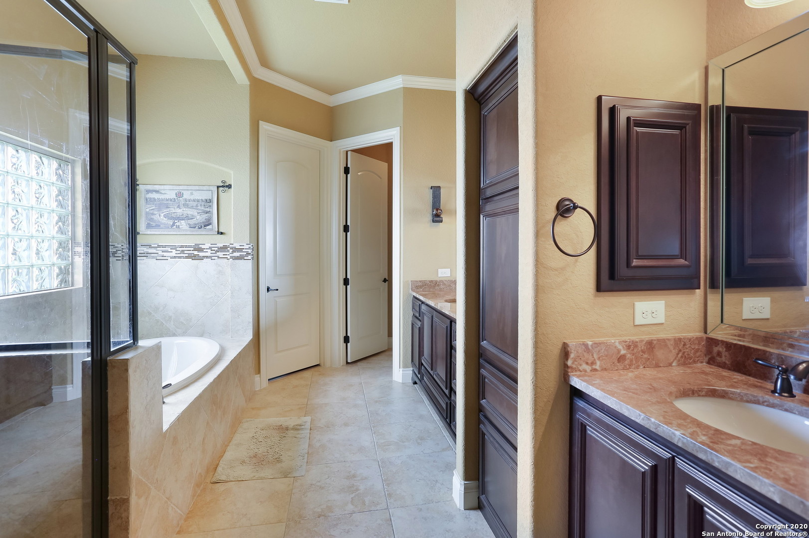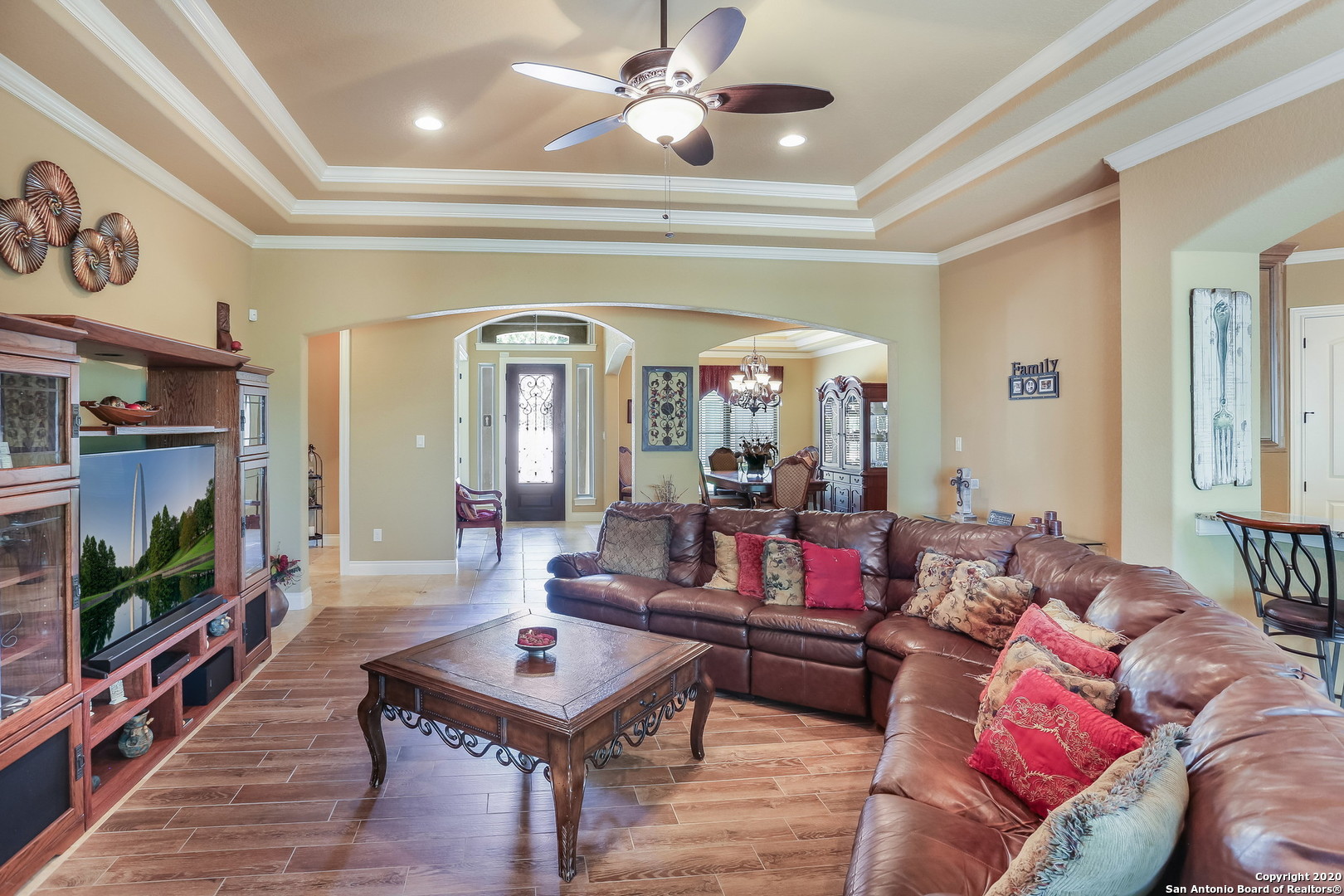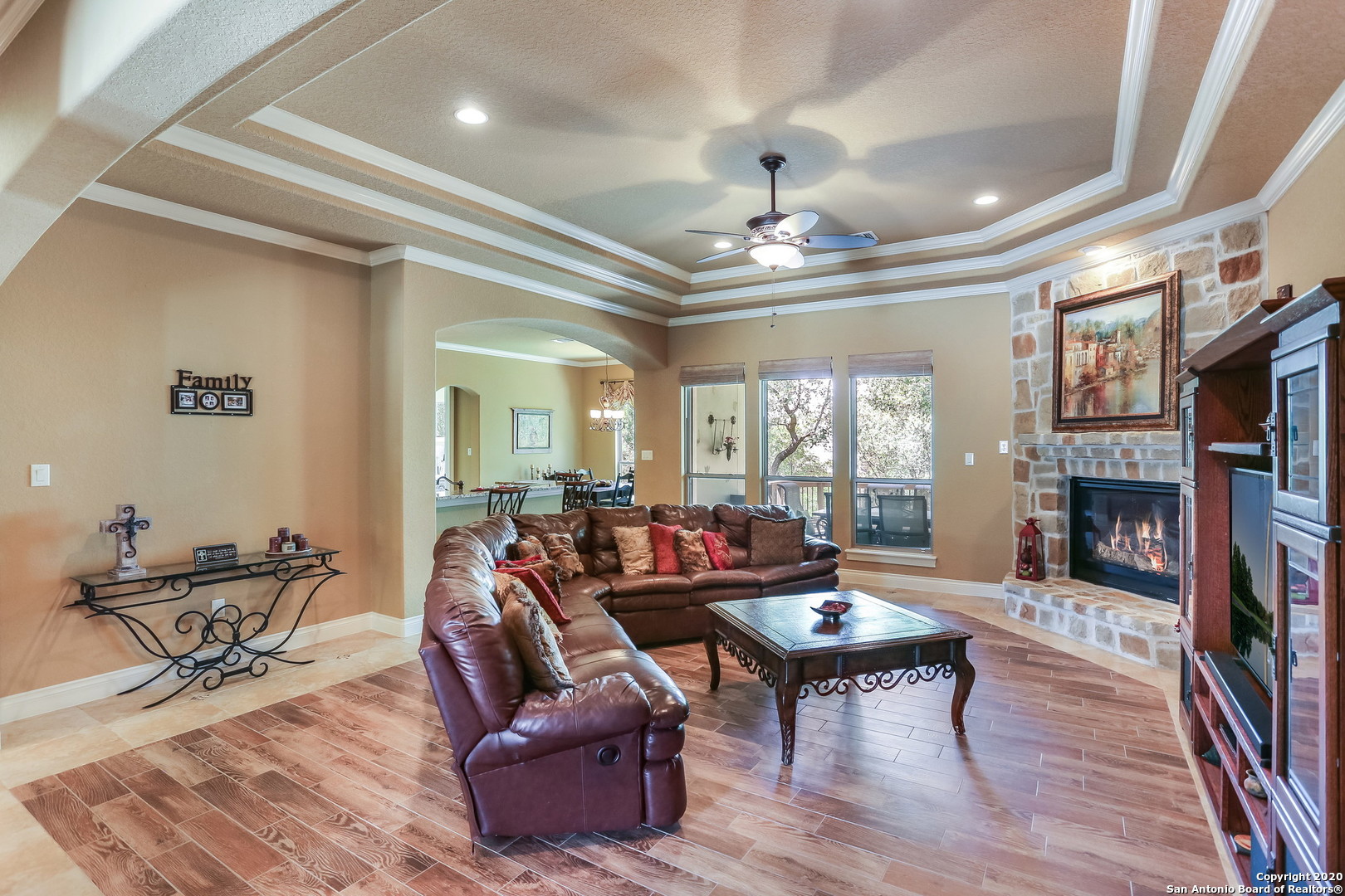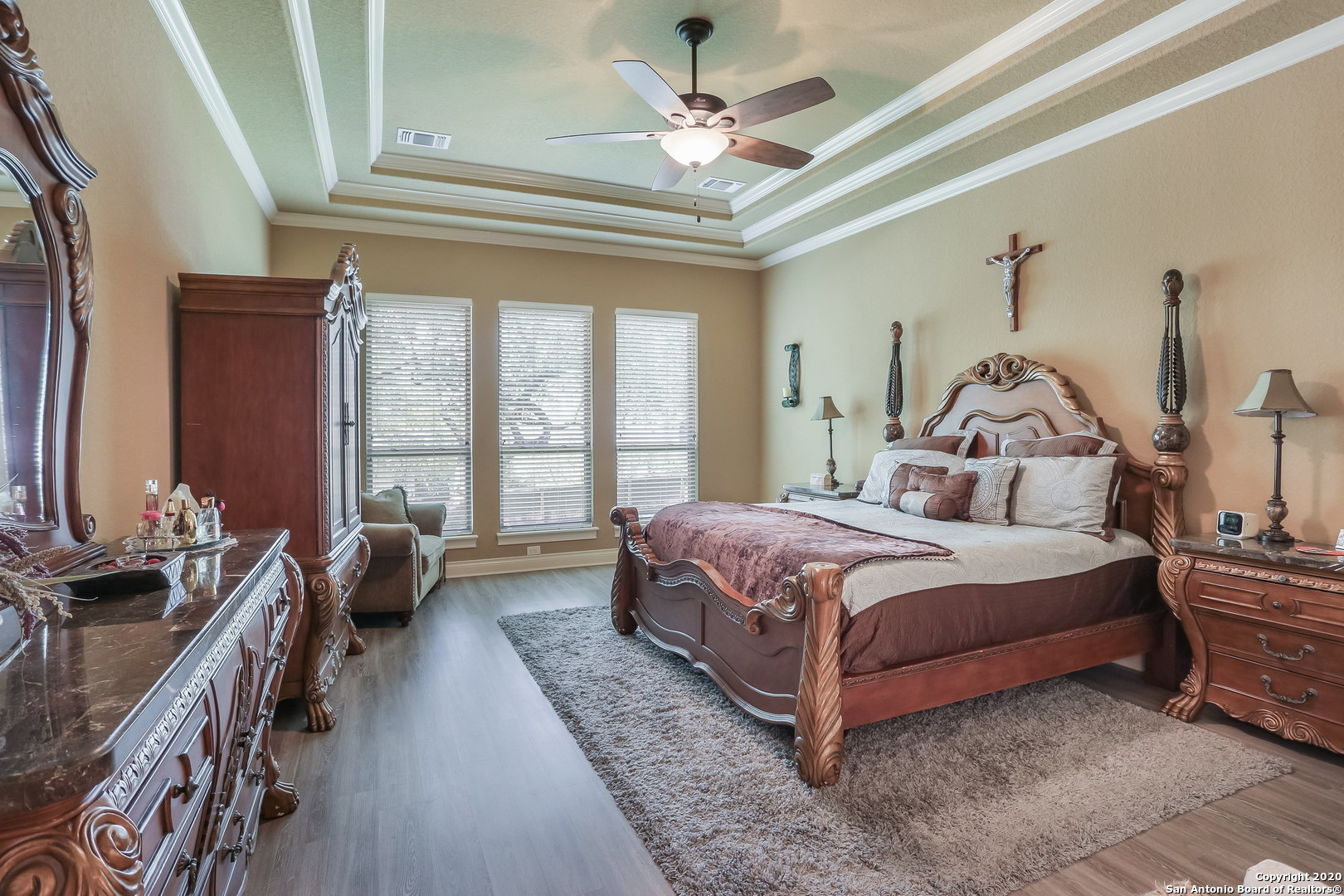 BEAUTIFUL WELL MAINTAINED AND CLEAN 1 Story plus 1/2 story with Game Room and Media Room or(which could make a beautiful additional Guest Suite) + Bath upstairs in desirable Mesas At Canyon Springs! Open Floor Plan Decorative Crown Molding and Beautiful Ceilings Through out. 4 Bd +4 1/2 baths +Study +Game Room+ Media 3766 sq ft of Elegance and Entertainers Dream+ Gourmet Kitchen+ No West Sun on the keeping you comfortable and able to enjoy the amazing Texas Weather. Room for a pool and Grassy area for kids or Grand kids or Pets too. Must See!