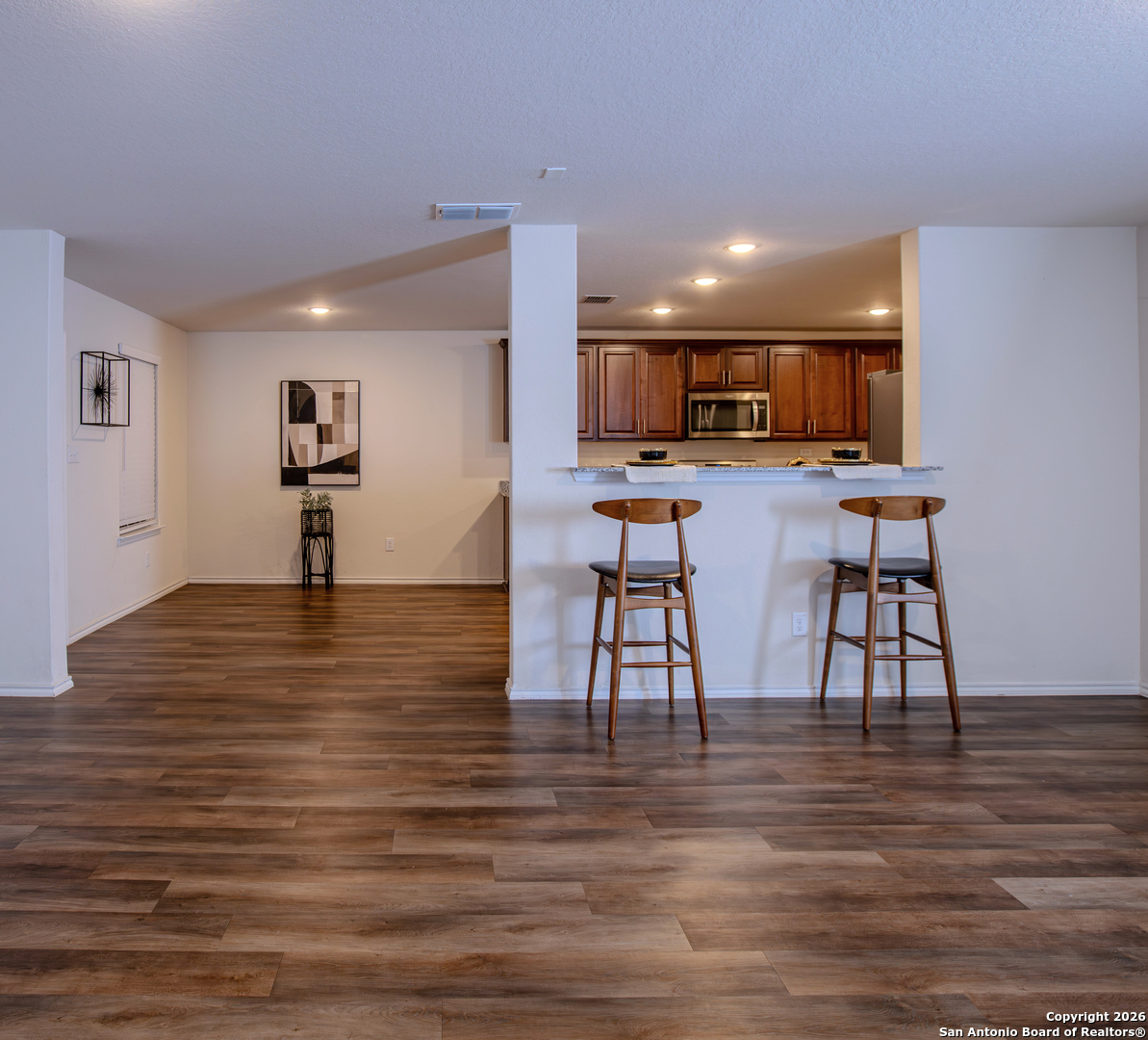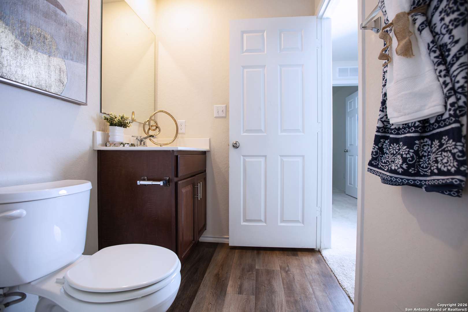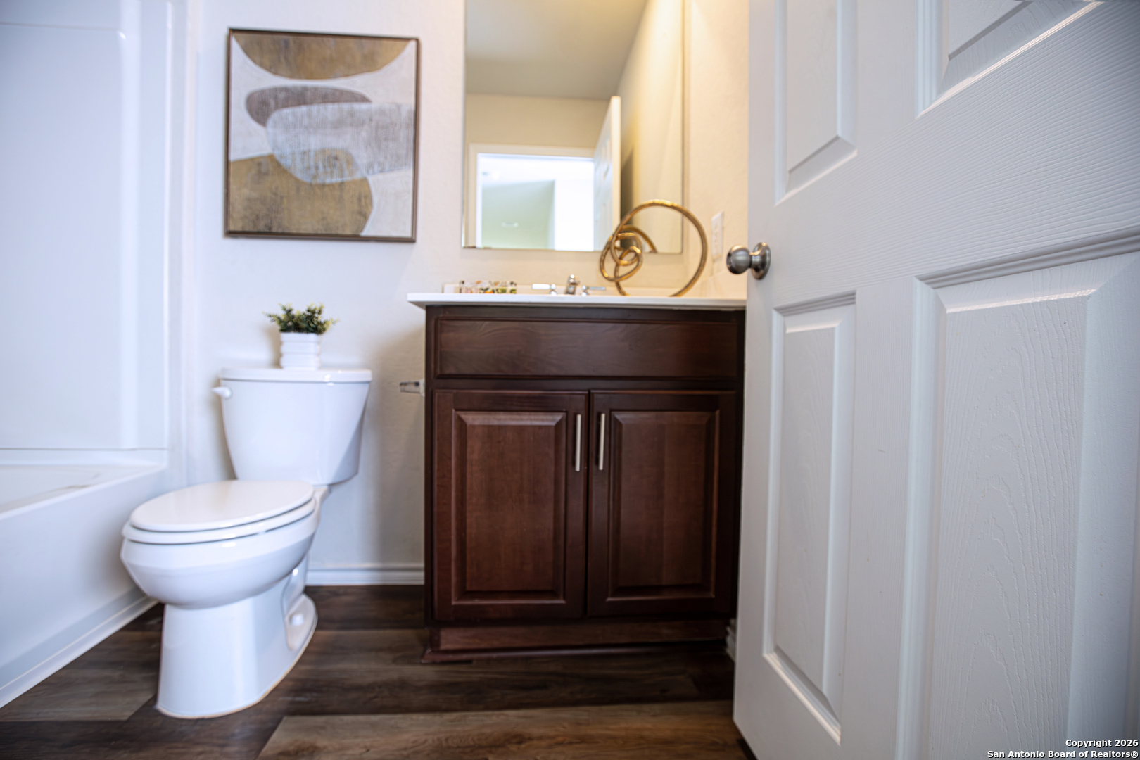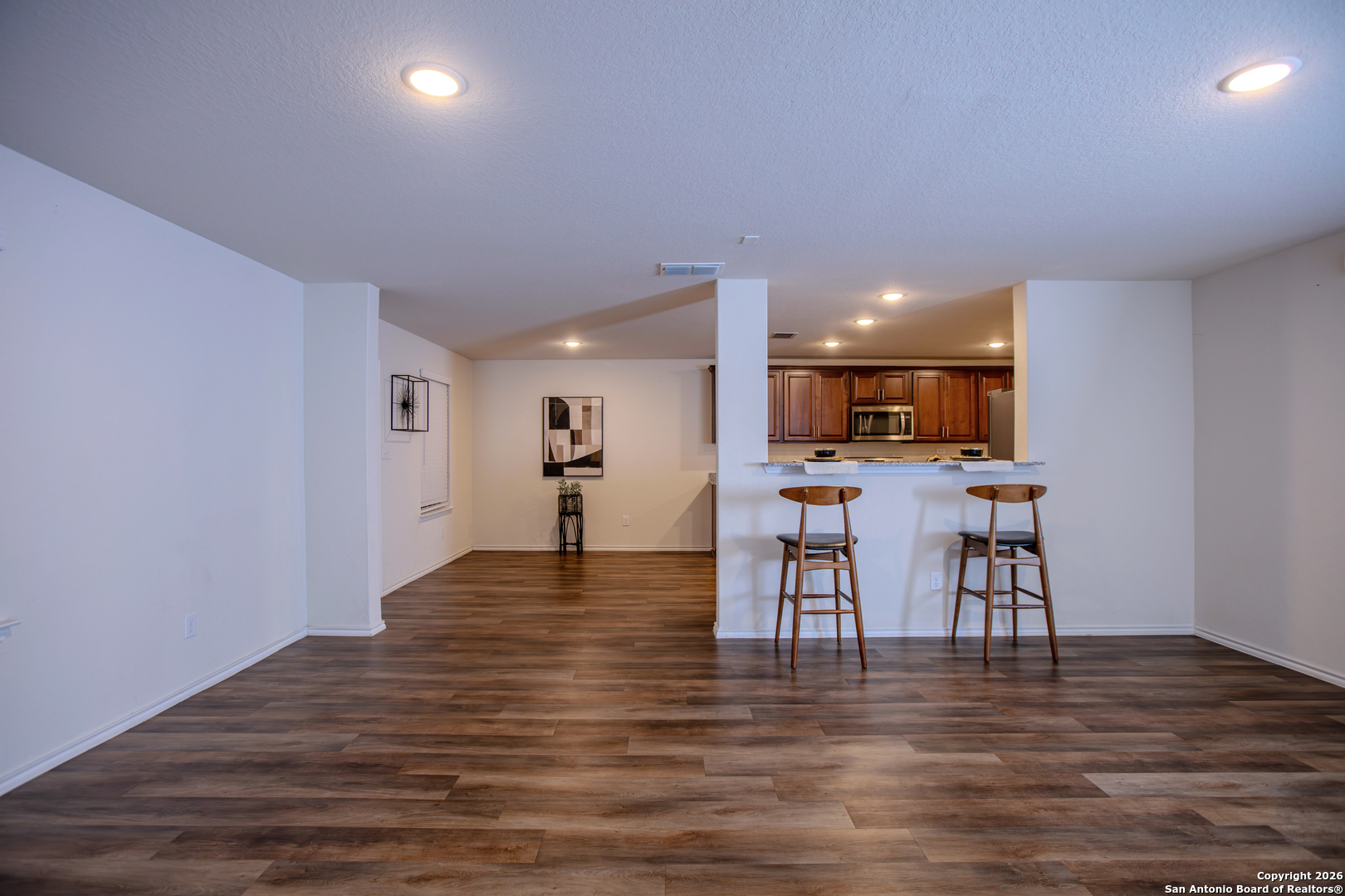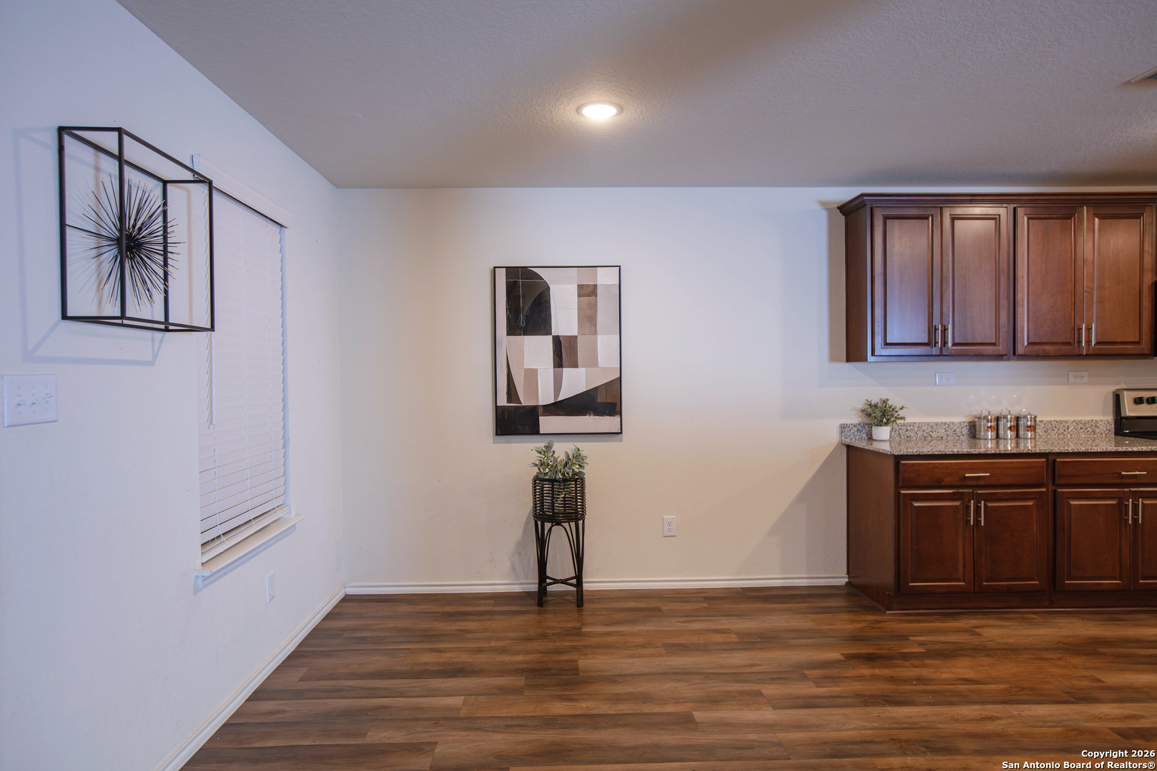 Don't miss this gorgeous, well-kept 3-bedroom, 2.5-bath, featuring an open concept floor plan, spacious kitchen with abundant cabinet space, beautiful granite countertops and blinds throughout. This home comes complete with stainless-steel appliances, including a refrigerator, washer/dryer, self-cleaning oven, and dishwasher. All bedrooms offer generous closet space. Enjoy the large backyard from the covered patio. Perfect for entertaining, privacy fence and no rear neighbors. The two-car garage includes a remote-controlled opener. Conveniently located with quick access to Fort Sam Houston, Randolph AFB, I-10, I-35, & Loop 1604. This move-in-ready home is thoughtfully designed & ready for you to make it your home.