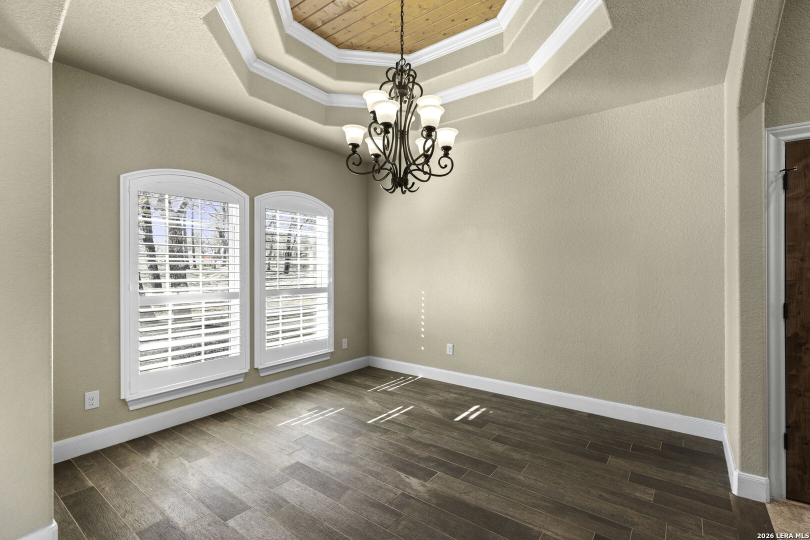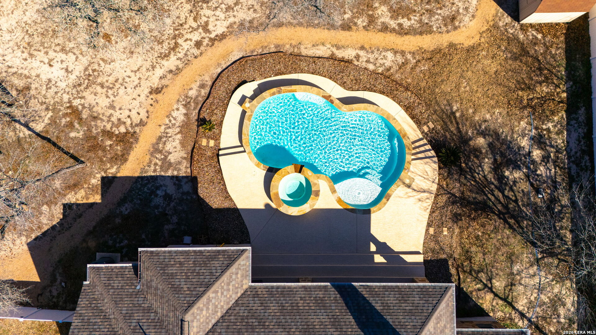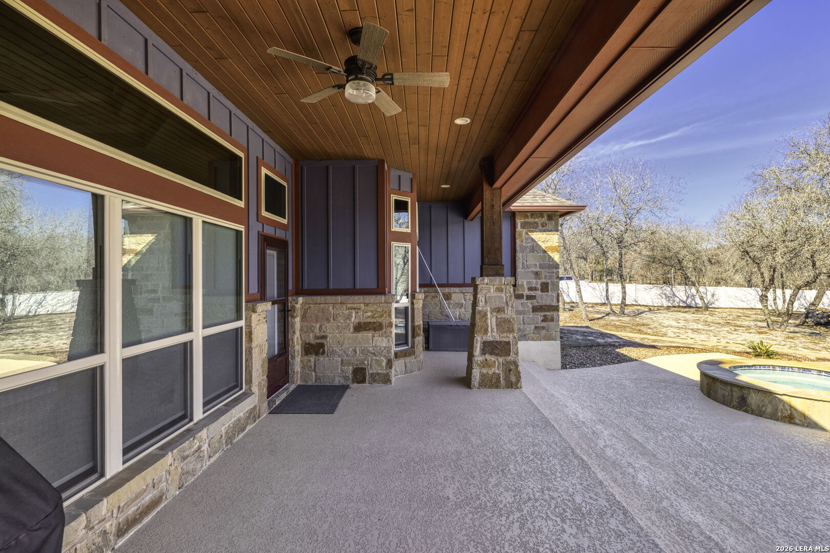 Stunning Home + Sparkling Pool & Hot Tub + 2 Acres of Wooded Countryside! Crafted in 2019 by esteemed local builder MG Legacy Custom Homes, this 1-owner home features Rustic Elegance with a touch of Mountain Lodge flair. Open floor plan with high-end finish out; Retreat to your grand living room w/rock fireplace, locally hewn mesquite mantel, overlooking gorgeous treed backyard oasis, with generous patio, gleaming pool & hot tub! Double doors open to the Dedicated Study, with beautiful wood-tile flooring in both the study & Formal Dining. Rich natural Alder cabinetry & high-level granite! Throughout the home, you'll appreciate solid wood Knotty Alder interior doors. All ceramic tile floors (no Carpet)! Lovely plantation shutters grace many windows. Fully fenced front yard with pipe fencing, including electric gate at driveway, and a large portion of the back yard is fenced with durable vinyl privacy fencing. Convenient backyard storage shed, water softener, and gutters around the home! Country Living, minutes to city conveniences. Community park!