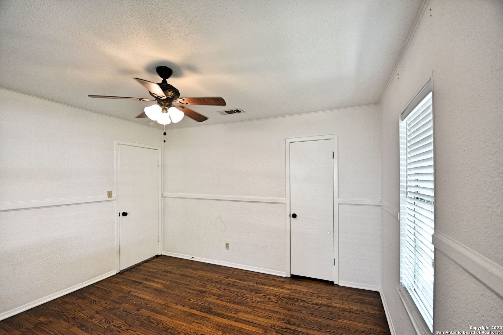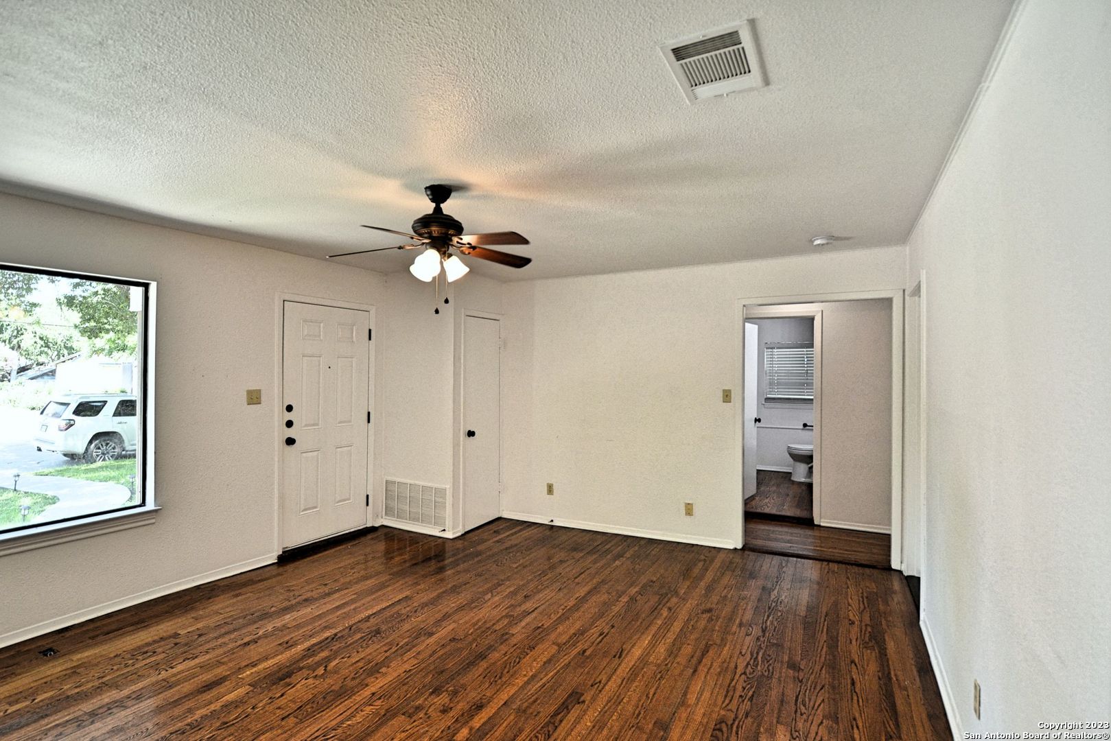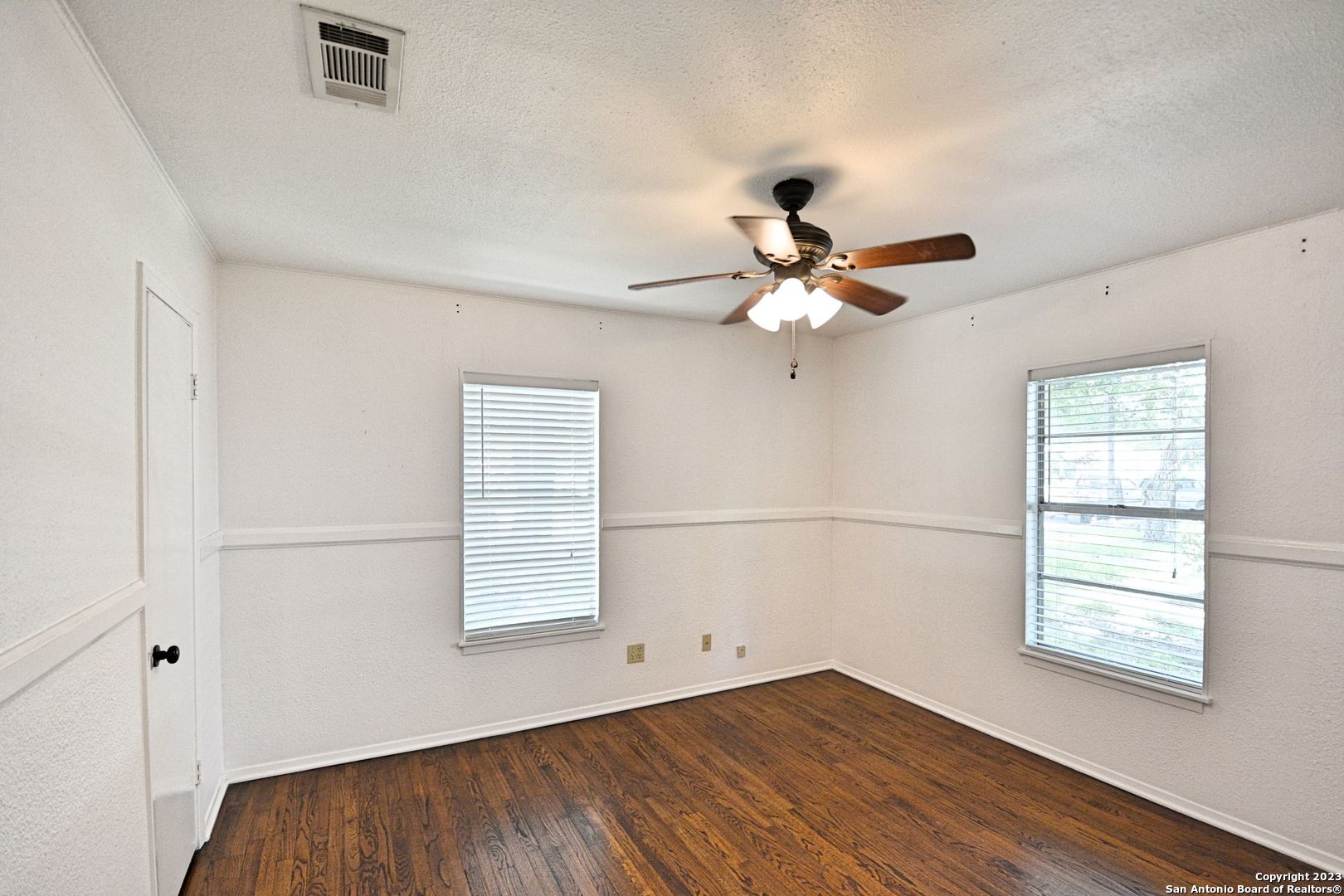 Experience the convenience of being near the happening Downtown New Braunfels area by making this your home away from home! Gorgeous wood flooring stylizes the front living room, each of the 3 bedrooms, and 2nd full bath. This rental home features a flex room with built-in shelving that can be additional living space, library, or private office. Through the dining room is the spacious laundry room with French doors that leads to the well shaded backyard.