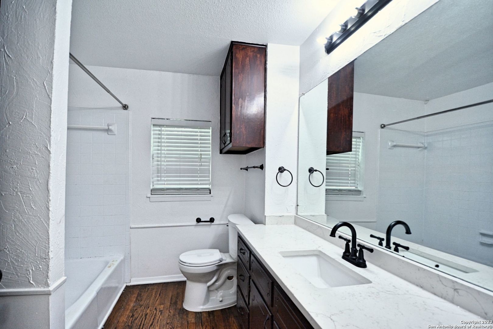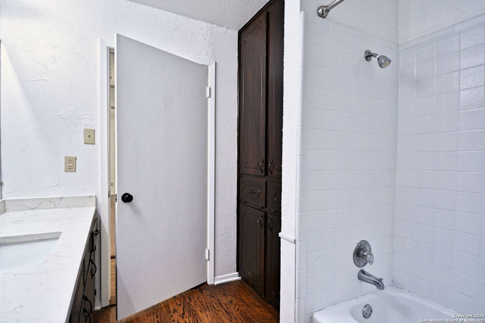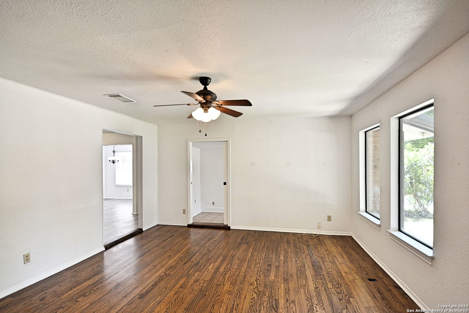 Experience the convenience of being near the happening Downtown New Braunfels area by making this your home away from home! Gorgeous wood flooring stylizes the front living room, each of the 3 bedrooms, and 2nd full bath. This rental home features a flex room with built-in shelving that can be additional living space, library, or private office. Through the dining room is the spacious laundry room with French doors that leads to the well shaded backyard.