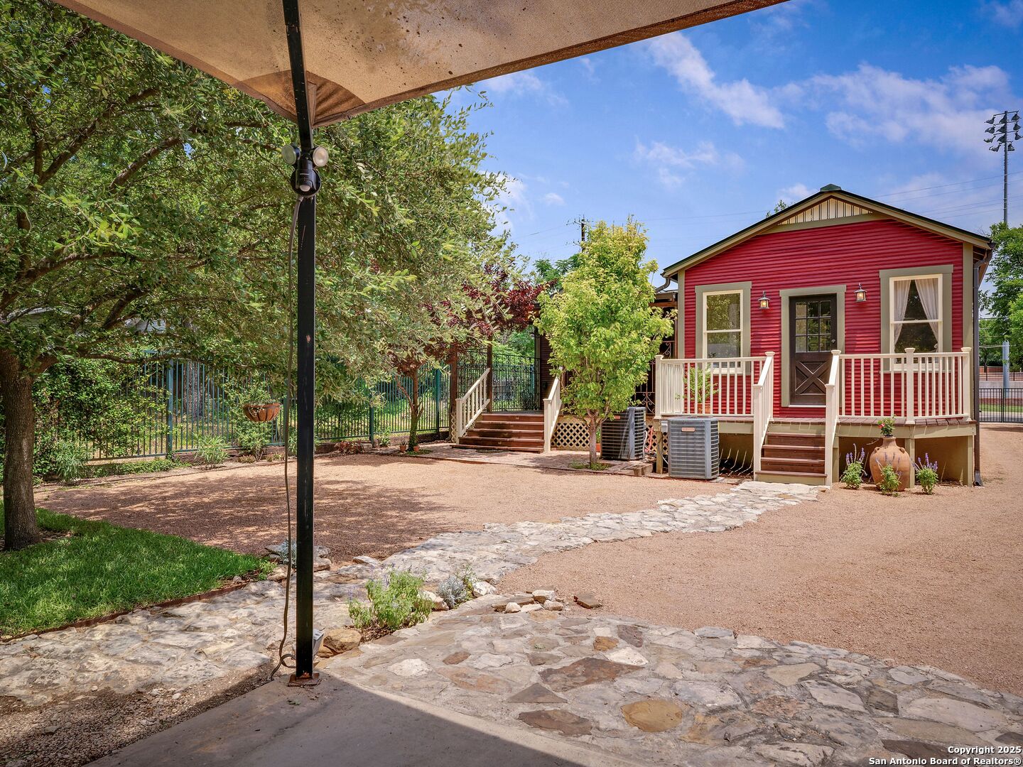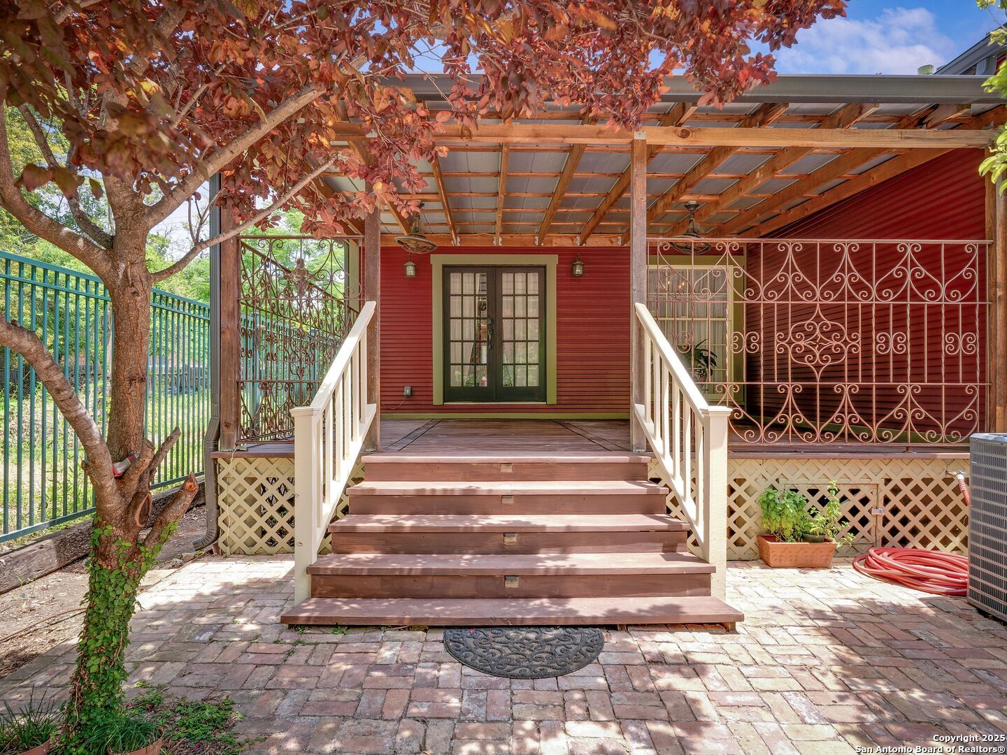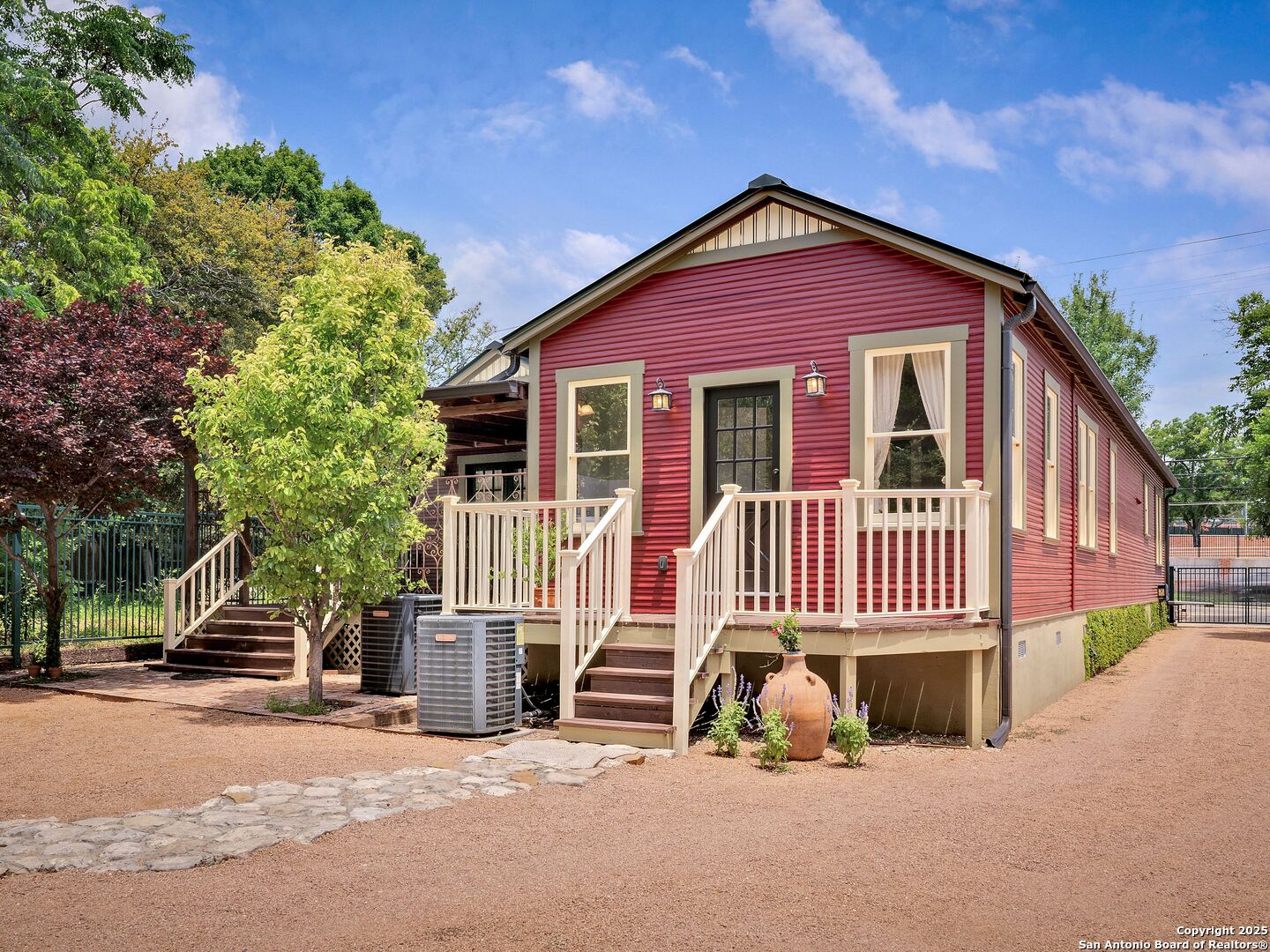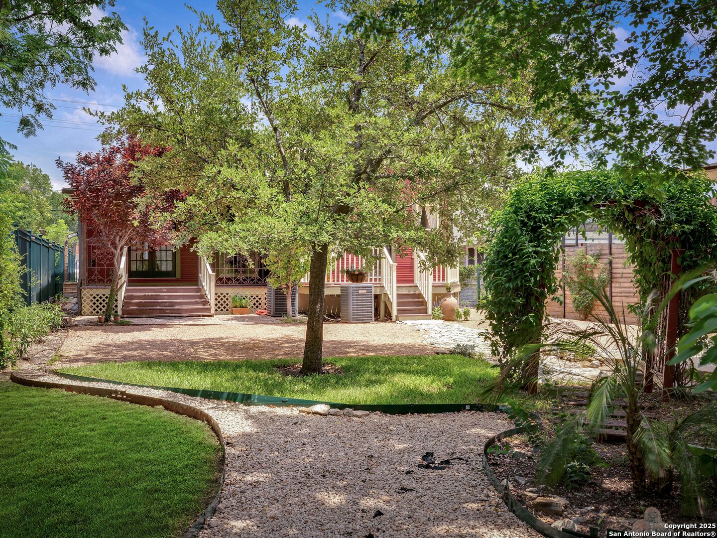 UrbanLiving Inside 410 - Old World Charm Meets Curated Elegance in Monte Vista. Welcome to this historic Monte Vista home, which blends classic curb appeal with richly layered interiors - crystal chandeliers, antique columns, dramatic dark wood flooring, and a chef's worthy kitchen wrapped in period detail. The main residence features a one-bedroom, one-and-a-half-bath layout on the main floor, complemented by a loft-style second bedroom with its own full bath upstairs, ideal for guests, a home office, or creative space. The chef-inspired kitchen honors the home's character, showcasing limestone countertops, custom cabinetry with glass-front doors, a built-in refrigerator, and gas cooking all wrapped in period detail. A spacious and romantic primary bedroom exudes elegance and tranquility. Soft linen window coverings gently filter natural light, creating a serene and airy atmosphere. The room offers generous space for lounging or reading, making it a true sanctuary within the home. The adjoining bath is an exquisite space featuring intricate, artisan-tiled floors and a freestanding claw-foot tub adorned with gleaming brass hardware. An incredible armoire-style vanity adds charm and character, blending vintage sophistication with modern functionality. A walk-in closet completes the suite, offering both style and storage in equal measure. Adding even more versatility, a spacious attached guest house offers two bedrooms and two full baths, making it perfect for extended family, guests, or rental income potential. This property also features convenient alley access and an electric gate for added privacy and ease of entry, perfectly suited for urban living in one of San Antonio's most historic and charming neighborhoods. Come see this one-of-a-kind home and make it yours.
