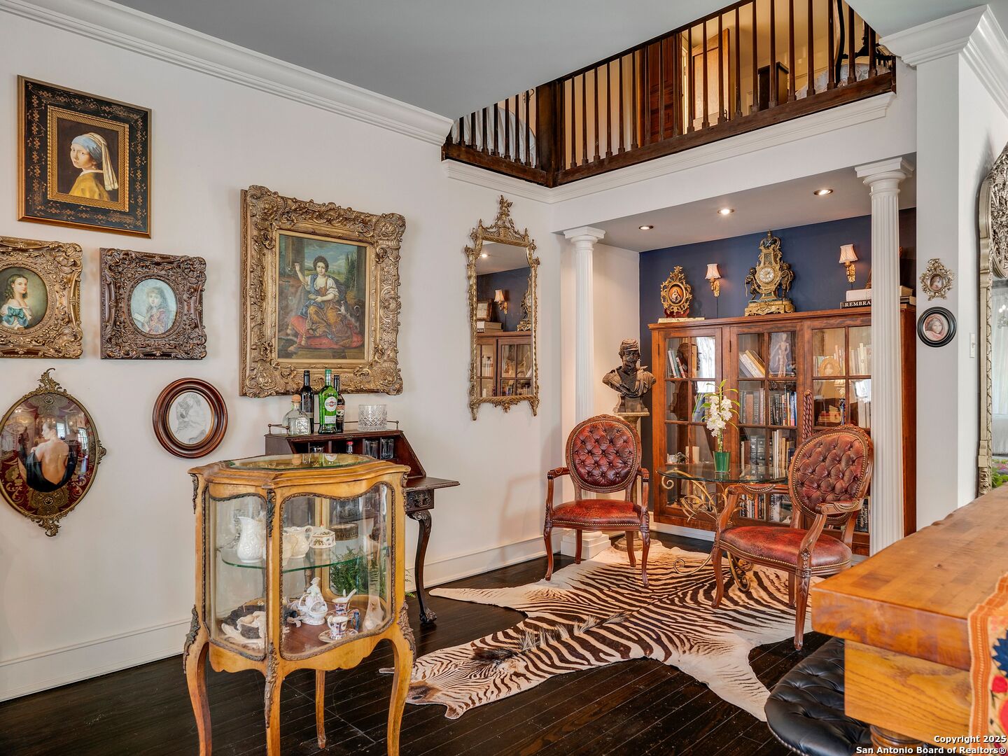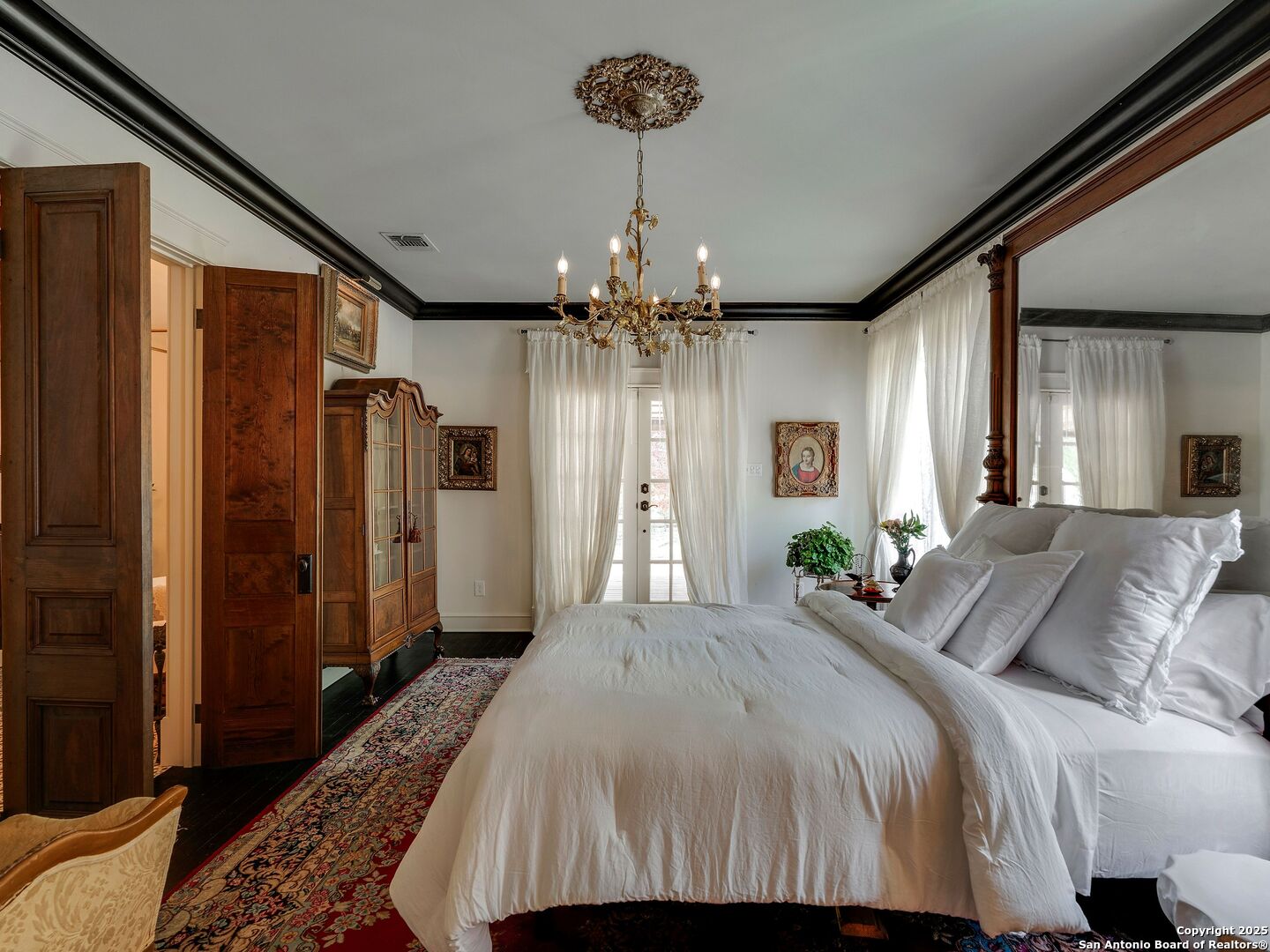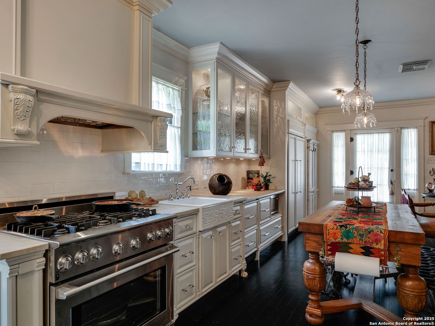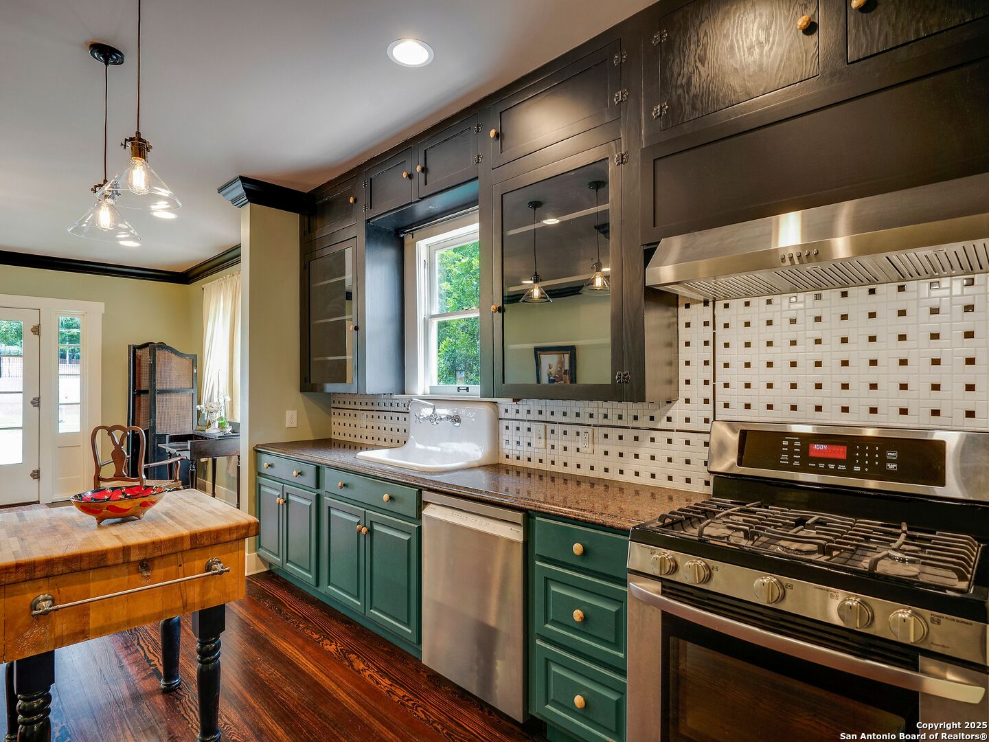 UrbanLiving Inside 410 - Old World Charm Meets Curated Elegance in Monte Vista. Welcome to this historic Monte Vista home, which blends classic curb appeal with richly layered interiors - crystal chandeliers, antique columns, dramatic dark wood flooring, and a chef's worthy kitchen wrapped in period detail. The main residence features a one-bedroom, one-and-a-half-bath layout on the main floor, complemented by a loft-style second bedroom with its own full bath upstairs, ideal for guests, a home office, or creative space. The chef-inspired kitchen honors the home's character, showcasing limestone countertops, custom cabinetry with glass-front doors, a built-in refrigerator, and gas cooking all wrapped in period detail. A spacious and romantic primary bedroom exudes elegance and tranquility. Soft linen window coverings gently filter natural light, creating a serene and airy atmosphere. The room offers generous space for lounging or reading, making it a true sanctuary within the home. The adjoining bath is an exquisite space featuring intricate, artisan-tiled floors and a freestanding claw-foot tub adorned with gleaming brass hardware. An incredible armoire-style vanity adds charm and character, blending vintage sophistication with modern functionality. A walk-in closet completes the suite, offering both style and storage in equal measure. Adding even more versatility, a spacious attached guest house offers two bedrooms and two full baths, making it perfect for extended family, guests, or rental income potential. This property also features convenient alley access and an electric gate for added privacy and ease of entry, perfectly suited for urban living in one of San Antonio's most historic and charming neighborhoods. Come see this one-of-a-kind home and make it yours.