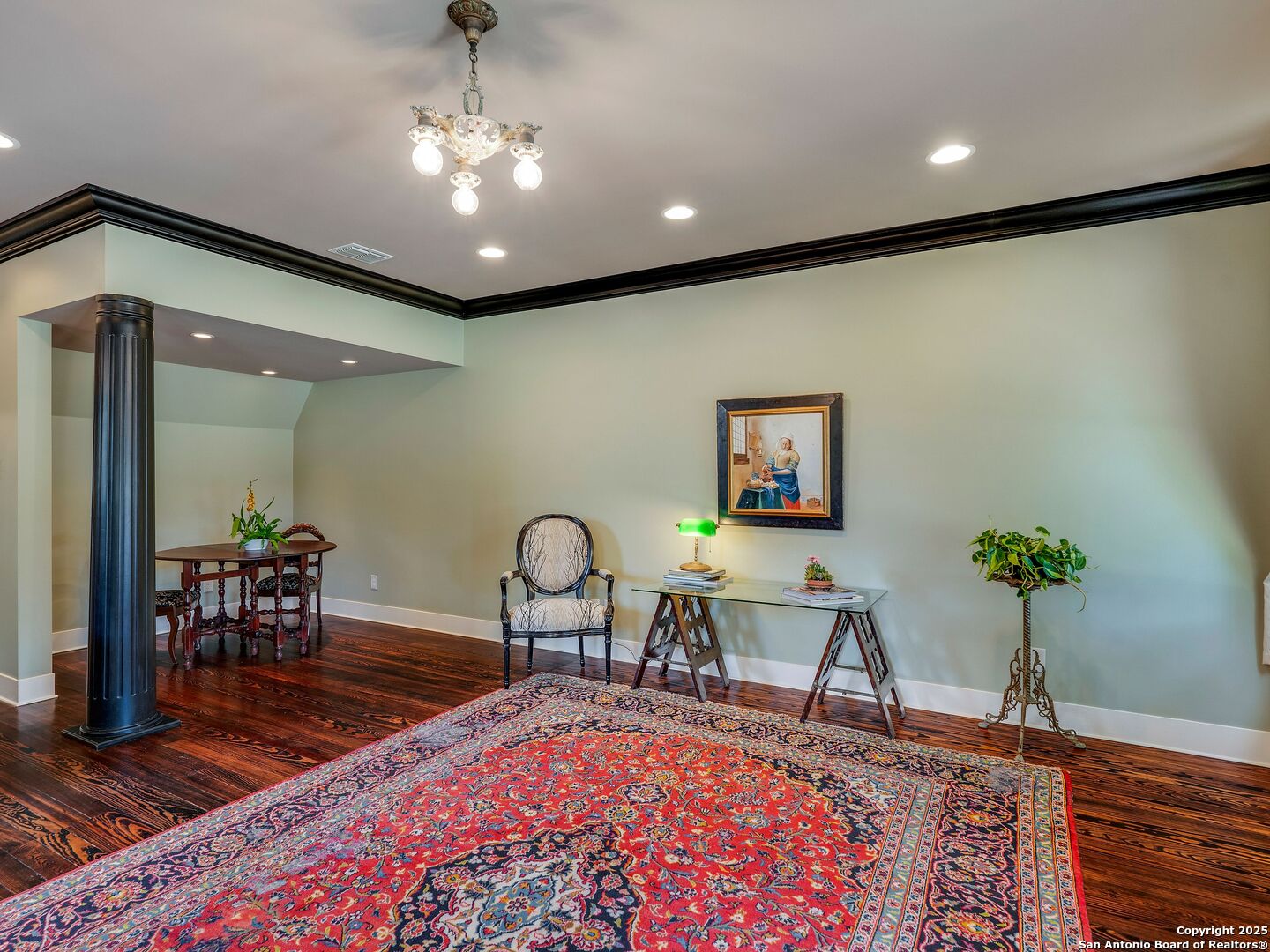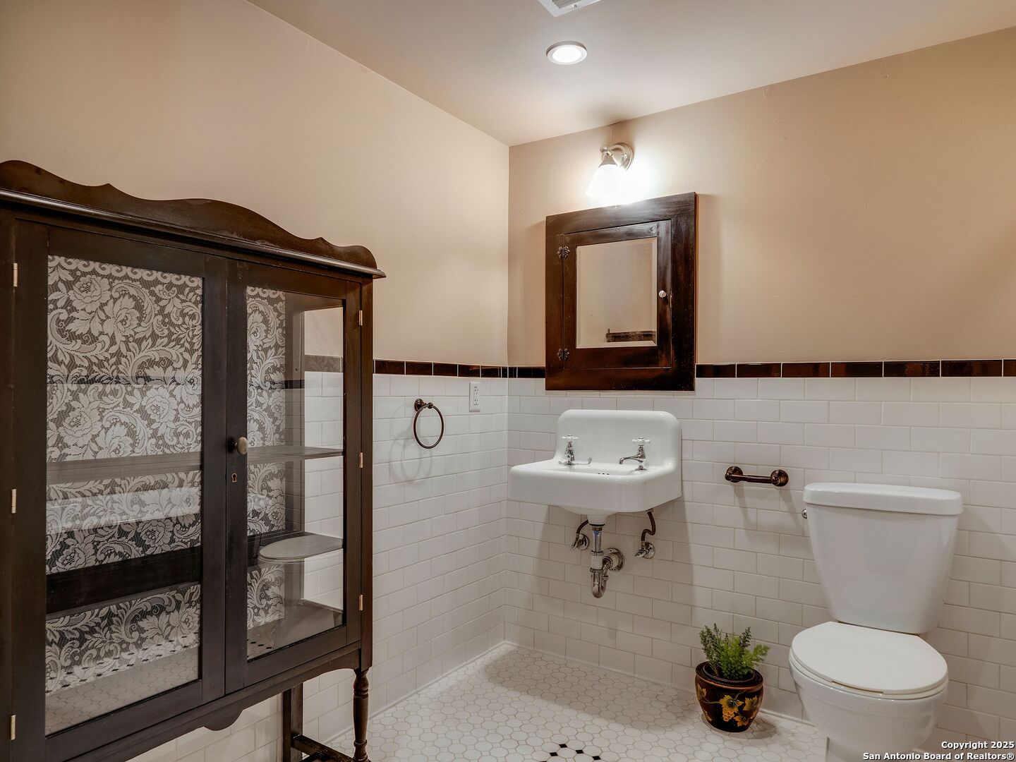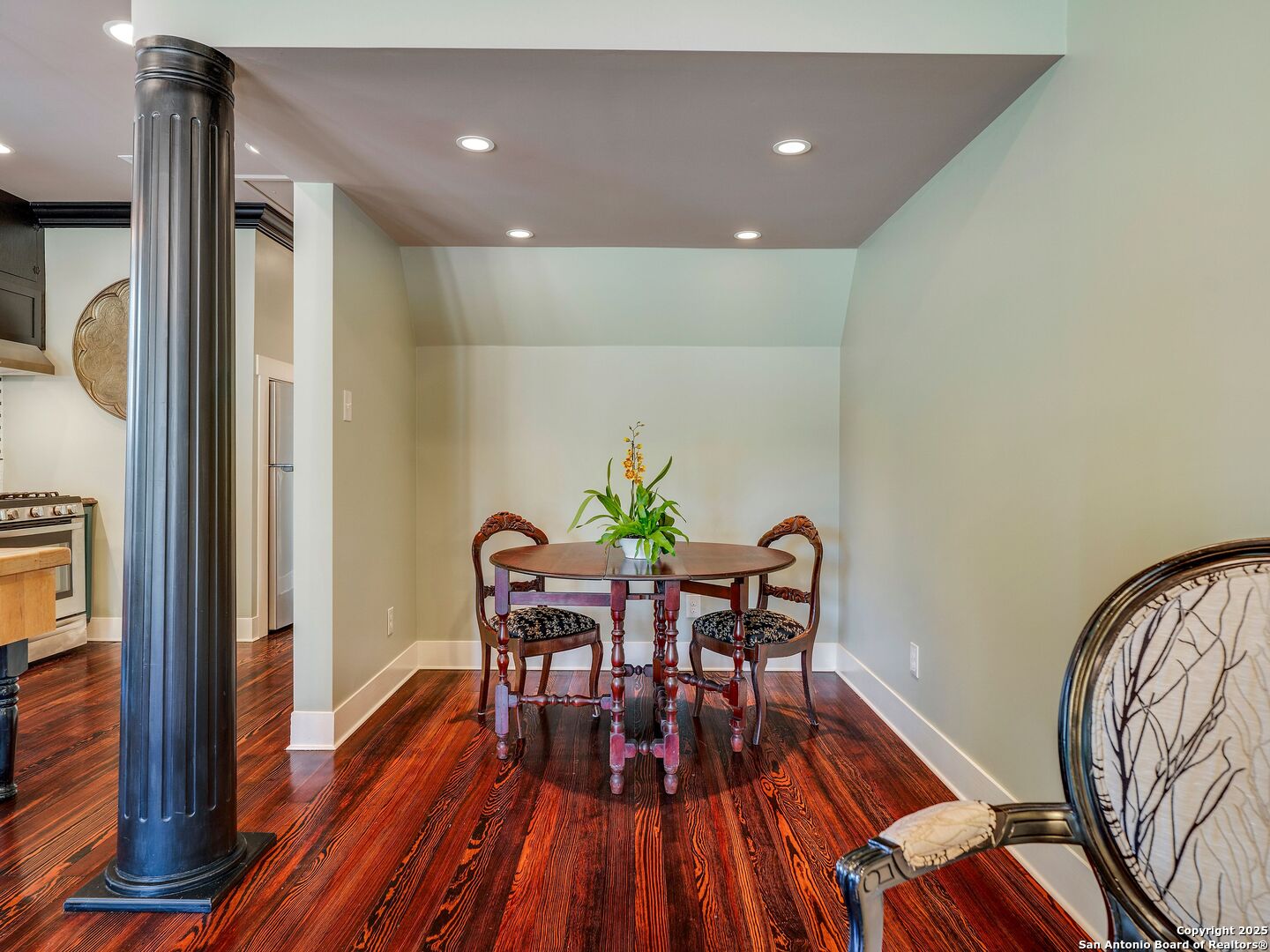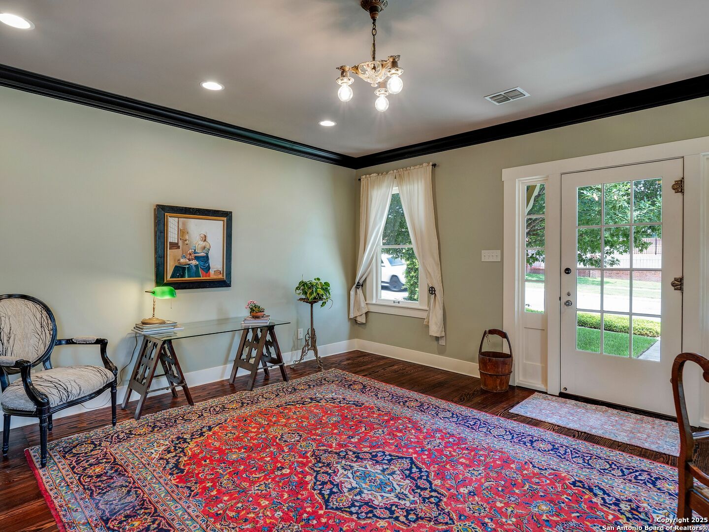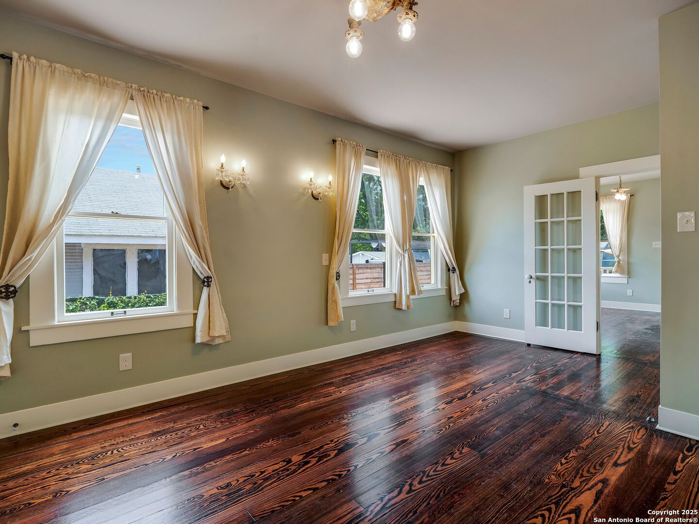 UrbanLiving Inside 410 - Old World Charm Meets Curated Elegance in Monte Vista. Welcome to this historic Monte Vista home, which blends classic curb appeal with richly layered interiors - crystal chandeliers, antique columns, dramatic dark wood flooring, and a chef's worthy kitchen wrapped in period detail. The main residence features a one-bedroom, one-and-a-half-bath layout on the main floor, complemented by a loft-style second bedroom with its own full bath upstairs, ideal for guests, a home office, or creative space. The chef-inspired kitchen honors the home's character, showcasing limestone countertops, custom cabinetry with glass-front doors, a built-in refrigerator, and gas cooking all wrapped in period detail. A spacious and romantic primary bedroom exudes elegance and tranquility. Soft linen window coverings gently filter natural light, creating a serene and airy atmosphere. The room offers generous space for lounging or reading, making it a true sanctuary within the home. The adjoining bath is an exquisite space featuring intricate, artisan-tiled floors and a freestanding claw-foot tub adorned with gleaming brass hardware. An incredible armoire-style vanity adds charm and character, blending vintage sophistication with modern functionality. A walk-in closet completes the suite, offering both style and storage in equal measure. Adding even more versatility, a spacious attached guest house offers two bedrooms and two full baths, making it perfect for extended family, guests, or rental income potential. This property also features convenient alley access and an electric gate for added privacy and ease of entry, perfectly suited for urban living in one of San Antonio's most historic and charming neighborhoods. Come see this one-of-a-kind home and make it yours.
