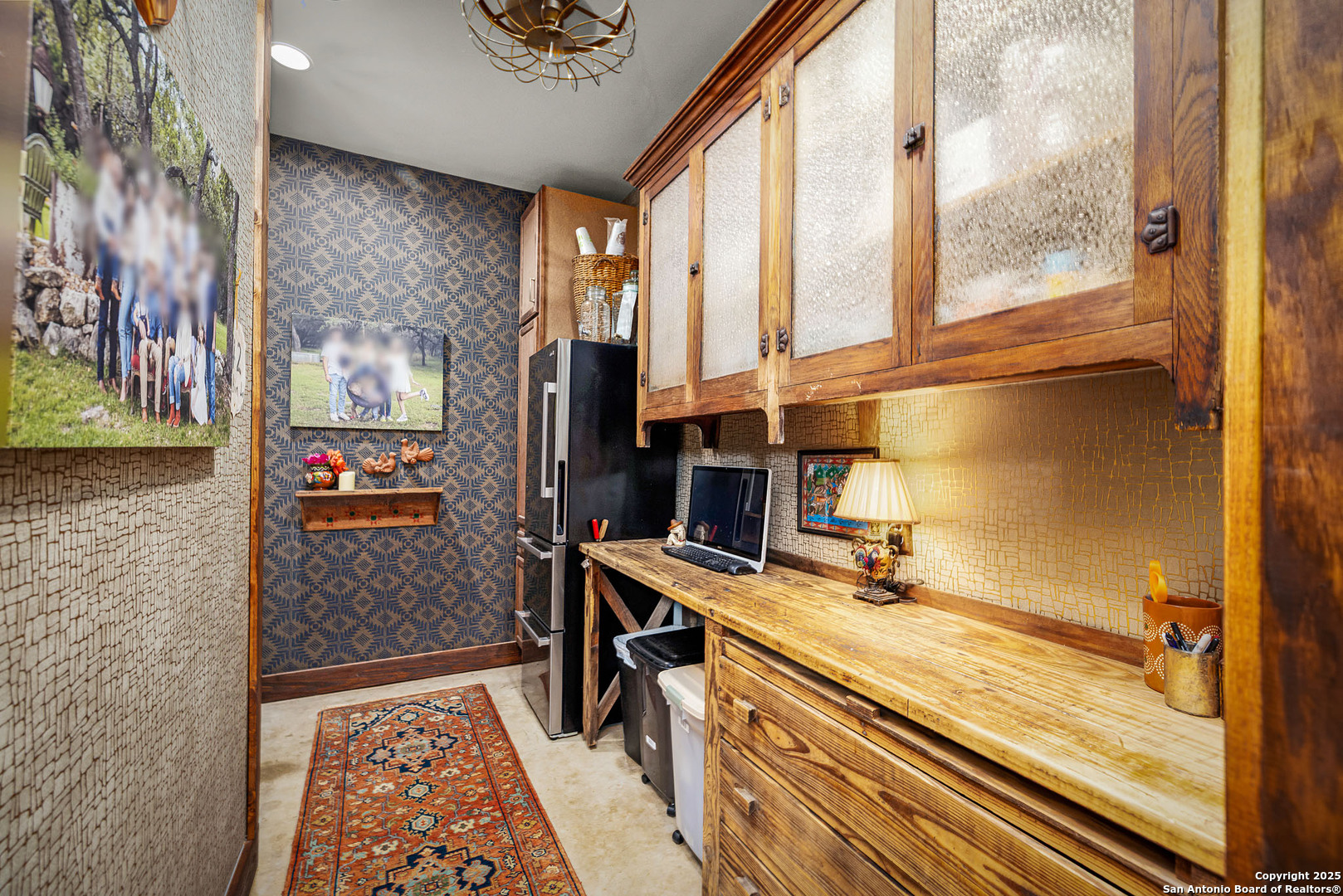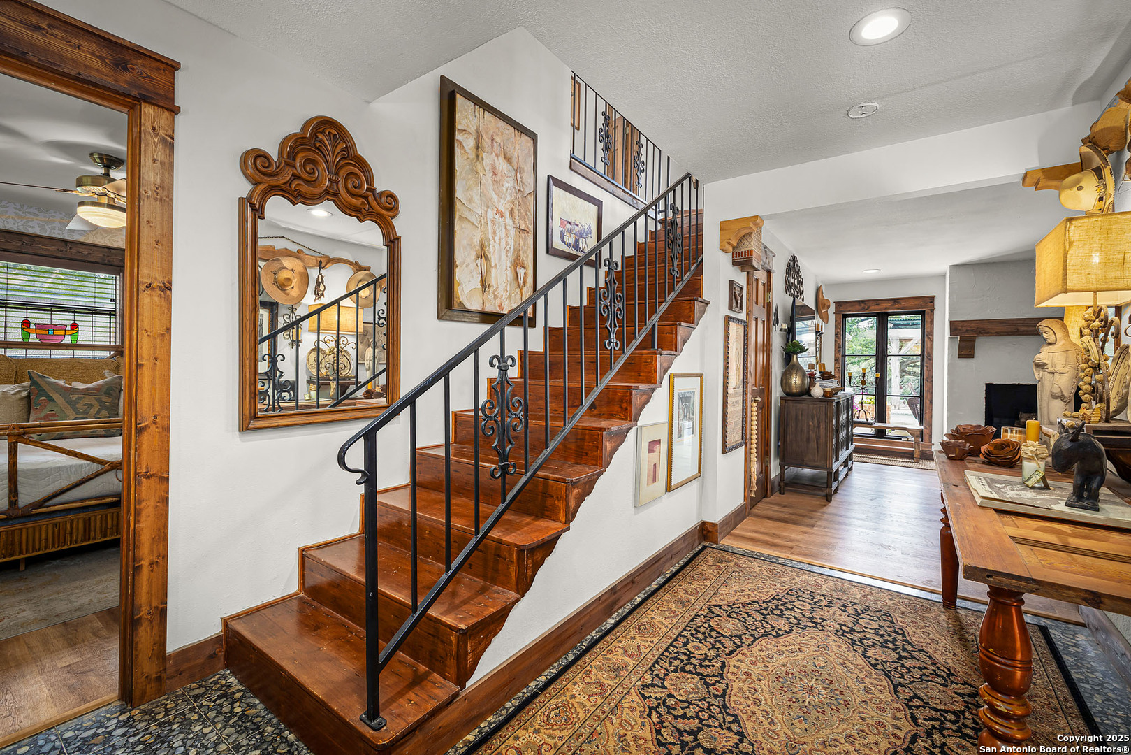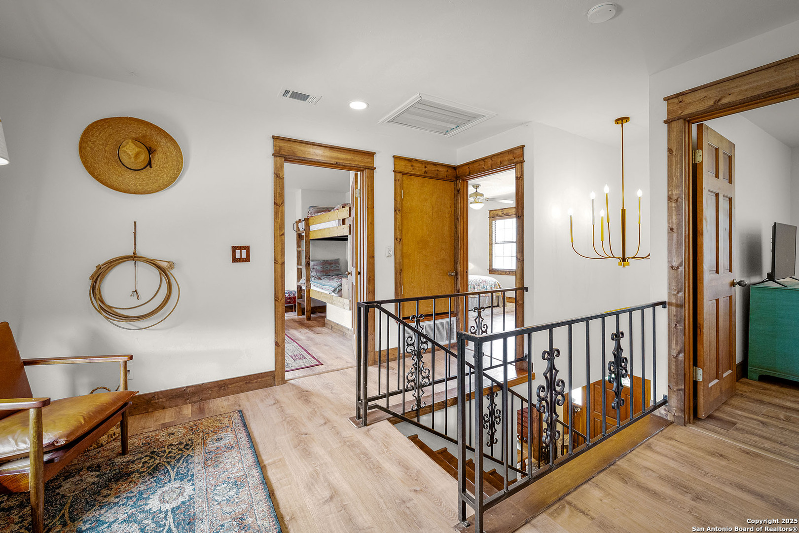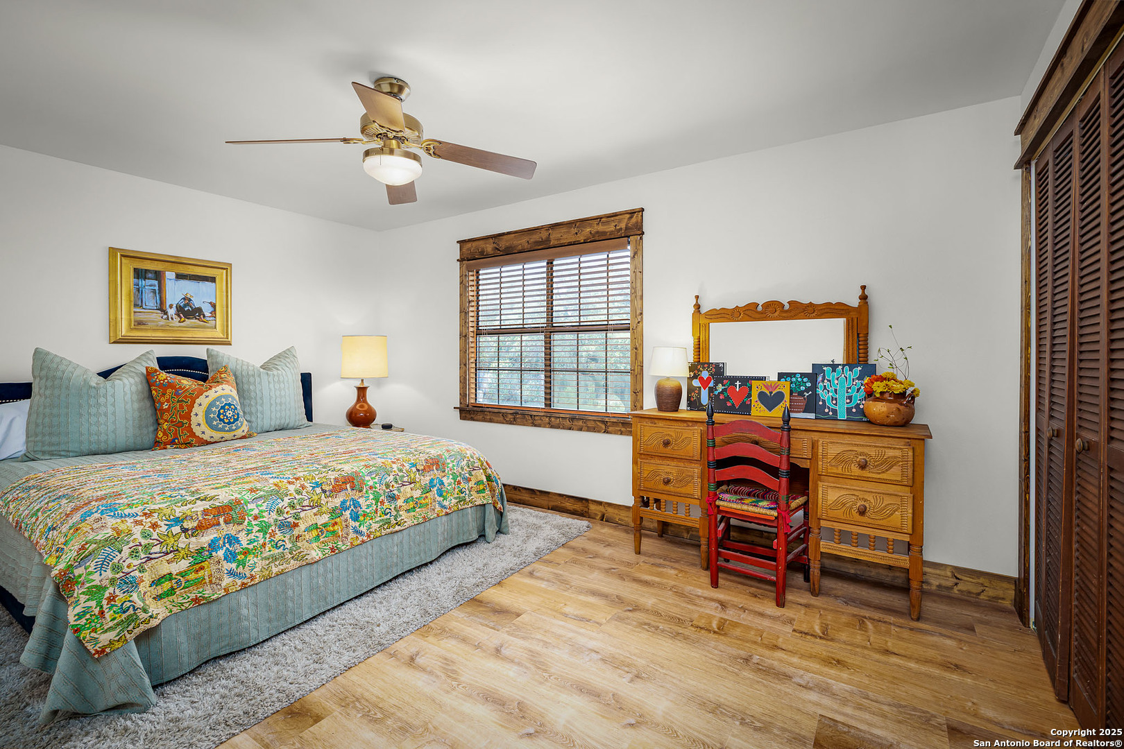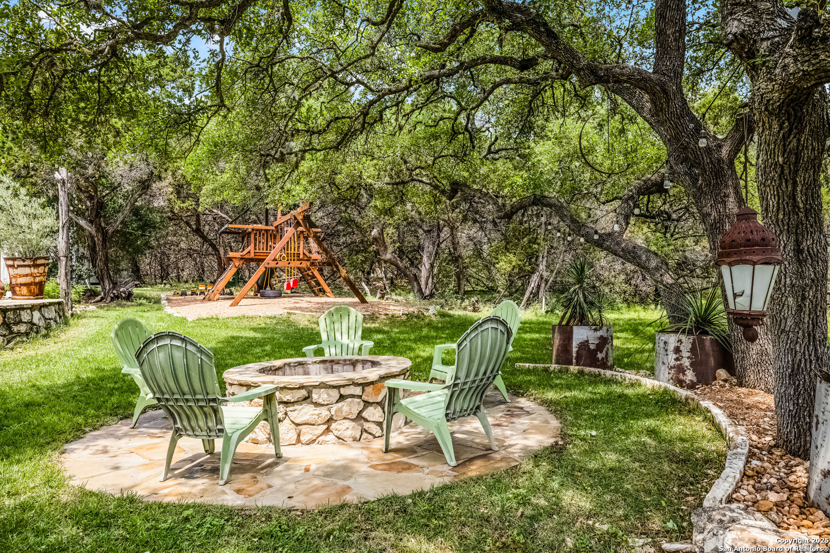Experience Living at its best on 2.5 acres with a perfect blend of luxury, privacy, and convenience in the heart of Texas Hill Country. This recently remolded thoughtfully designed home blends rustic charm with refined luxury, featuring natural materials, top-tier finishes, and extensive outdoor living spaces ideal for entertaining. Entering the home is the terrazzo tile original to the house with exposed wooden beams that add warmth and architectural character to the house with Stucco interior walls which adds to the timeless elegance. The living room, kitchen and dining room have been opened up to create a very comfortable living space with a wood burning fireplace. The home has 4 bedrooms with the master being on the main floor with an on suite, upstairs are three bedrooms with a newly remolded bathroom. The gourmet kitchen has custom cabinetry, natural limestone pebble backsplash with natural limestone countertops. Professional-grade Z-line gas stove with pot filler and custom vent hood with Z-Line microwave drawer. The custom island allows room for seating while still plenty of room for cooking with an statement chandelier and European sconces for ambient lighting. The family room, formally the garage, was renovated in December of 2020. Which includes custom woodwork with beams and concreate floors. Off of the family room is a half bath with custom sink, custom wallpaper and European sconces. Outside provides a picturesque backdrop for entertainment and outdoor activities. The outdoor living spaces includes a pool with an outdoor kitchen with a built in BBQ grill with a mini-fridge, a firepit and plenty of room for relaxing. The property has no HOA so you can raise your AG/FFA projects at home with you. This is a house you don't want to slip by it is truly one of a kind.